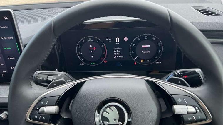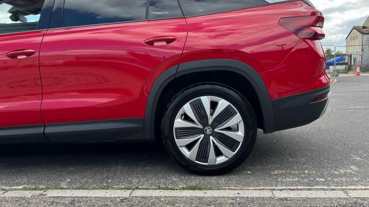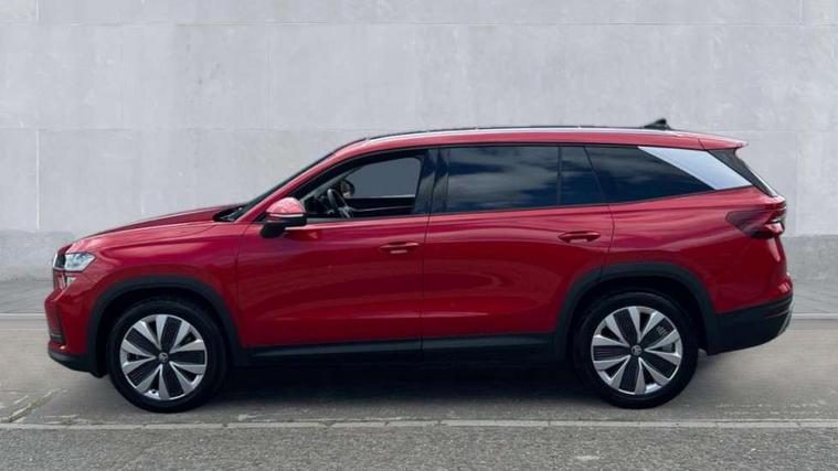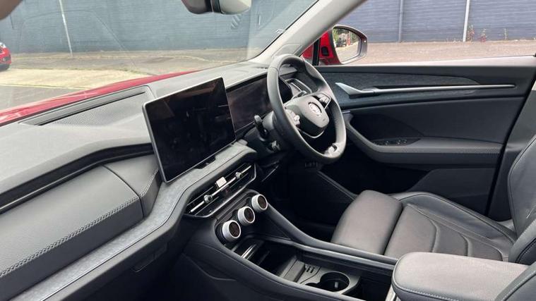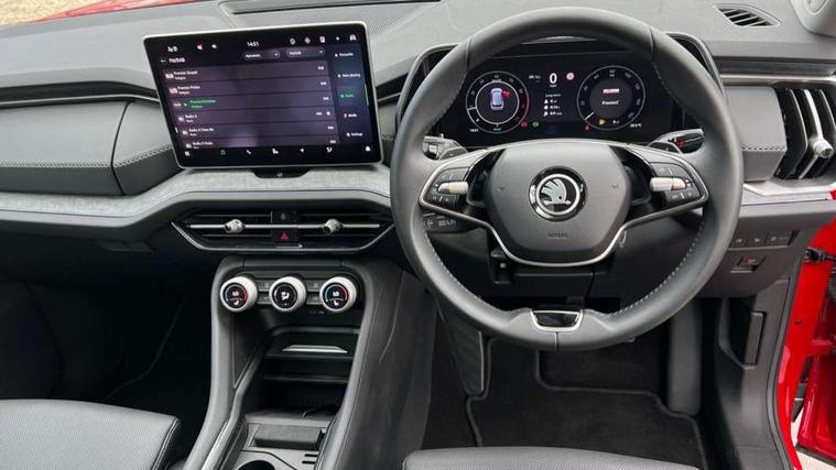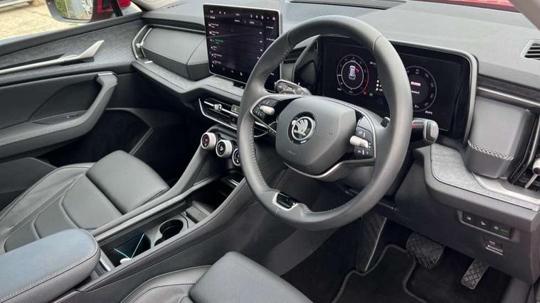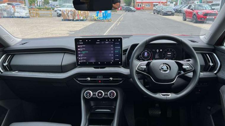 13" satellite navigation touchscreen display, Blind spot detection with door exit warning, Bluetooth system, ChatGPT functionality, Drive mode selector, Driver alert with fatigue sensor, Driver drowsiness alert system, Dry display cleaner, e call+, Front cross traffic assist, Lane assist, PAS, Rear traffic assist, Tailgate unlocking from outside, Traffic sign recognition, USB C Port x 2 in front centre console, Virtual Cockpit - 10.25" digital display, Voice control system, Wireless charging for two smartphones (15W) with cooling function, Wireless SmartLink for Apple CarPlay and Android Auto, Stop/start function, 2x USB-C in the rear, DAB Digital radio, Aero front windscreen wipers with intermittent function, Auto dimming rear view mirror, AWL (all weather lighting) and all weather light with cornering function, Black wheel arch surrounds, Body colour bumpers, Body colour door mirrors and handles, Cornering light and poor weather light, Electric folding /adjustable/separted heated/folding door mirrors, auto dimming with boarding sports and memory function, Electric front and rear windows, Exterior black decorative trims, Heat insulating glass in windshield, Heated rear window, Ice scraper in fuel tank cap, Invisible tailpipe, LED daytime running lights, LED third brake light in rear spoiler, Light assistant with automatic headlight control and coming home feature, Logo projection in door mirrors, Privacy glass, Rear side wing doors, Rear spoiler, Rear window wiper, Red decorative strip between rear LED lights, Safety reflectors on front and rear doors, Unique dark chrome design logo on alloy wheels, Window control switches with black trim, Windscreen wipers with rain sensor, Without engine designation, 1.5l bottle holder points in all door, 12V socket in boot, 1x centre rear reading light, 2 seat bench in 3rd row, 3 configurable smart dials with 32mm coloured display, 3 seat bench in 2nd row, 4 foldable roof handles with rear coat hooks, Ambient interior lighting - Dashboard, front-door stowage compartments, front and rear door panels and footwell lighting, Automatic gear selector on steering wheel, Chrome interior door handles, Driver/front passenger reading lights, Fabric headlining, Fixed bench 40:60:40 split folding backrests, Front and rear floor mats, Front centre armrest with jumbo box storage compartment, cup holder and 12V socket, Front courtesy lights, Height adjustable front headrests, Isofix child seat fittings in outer middle row rear seats and front passenger with top tether, Manually adjustable steering column, Pollen filter, Rear centre armrest with cupholders, Rear seat boot backrest release, Retractable luggage compartment cover, Single front passenger seat, Skoda lettering on steering wheel, Sliding trunk cover, Small Bags on the inner sides of the front backrests, Storage pocket including mobile phone pockets on the backs of the front seats, Sunvisors with illuminated vanity mirrors, Three rear height adjustable headrests, Ticket holder on A Pillar, Tri zone climate control, Umbrella in door panel x1 made from sustainable materials, Upper and lower glovebox with card holder and coin compartment, USB C port by rear view mirror for charging only (15W), Exterior styling pack - Kodiaq, Auto door release and activation of warning lights in the event of an accident, Driver and front passenger airbag with knee airbag and front passenger airbag deactivation, Electric child locks, Electronic parking brake, ESC (incl. ABS+EMD+MSR+ASR+EDL+HBA+DSR+RBS+ESBS+MCB+TSA+XDS), Front assist with braking reaction to vehicles, pedestrians and cyclists, Front disc brakes, Fuel cut off safety device, Height adjustable front 3 point seatbelts + pretensioners, Hill hold control, Junction assist with automatic emergency braking, Rear disc brakes, Safety vest holder in door, Seat belt reminder for all seats, Three point rear seat belts, Two tone horn, Tyre pressure monitor, Anti-theft wheel bolts, Immobiliser, Remote central locking with 2 keys, Breakdown kit,