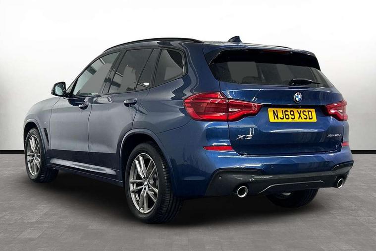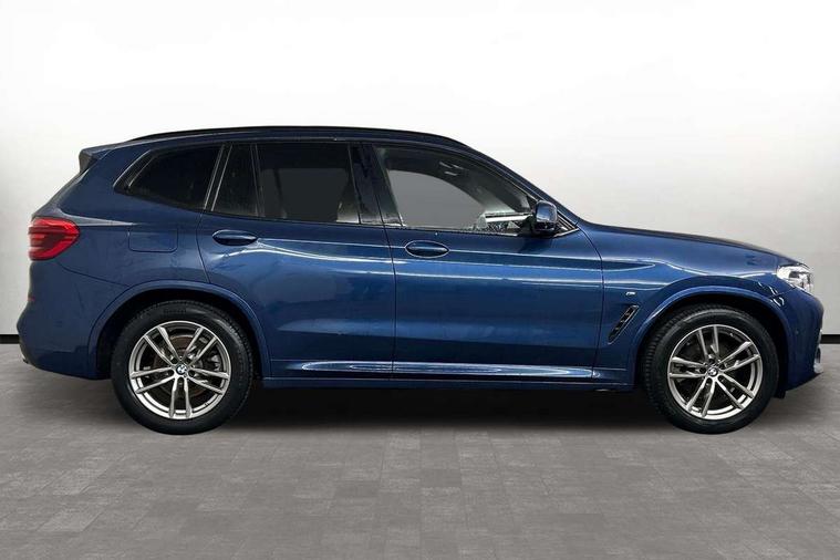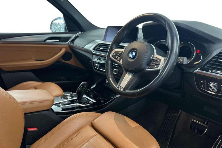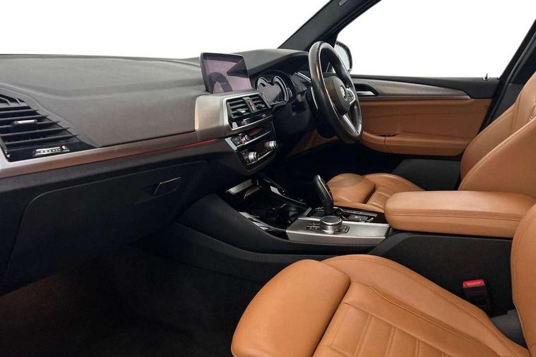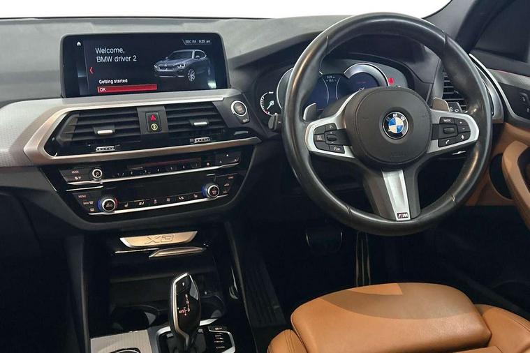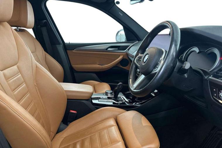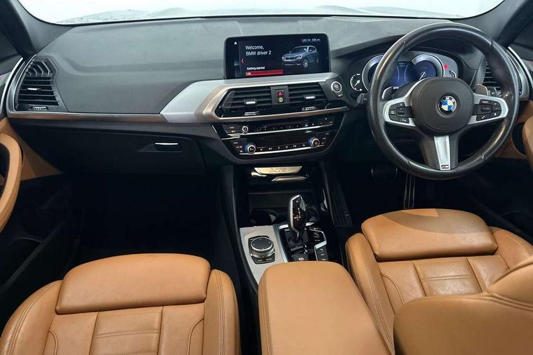 Active Guard incl speed limiting and lane departure functions with auto steering, and front collision warning with brake intervention, Attentiveness assist, Automatic tailgate operation, BMW Live Cockpit Professional sat nav system including 10.25" high resolution display and Intelligent Voice Assistant, BMW Online services, BMW Teleservices, Brake pad wear indicator in front and rear, Check Control warning system for monitoring of lights and door/luggage compartment open warning, Control display - 6.5" colour display screen, Electric Power Steering (EPS) with Servotronic, Front/rear Parking distance control, iDrive Controller with 8 favourite buttons, Lights on warning by audio warning signal when ignition is switched off, Navigation system - BMW Professional multimedia with Hard disc drive (HDD) and 10.25" touch display, Oil sensor for level and grade, warning by check control system, On board computer - average speed+fuel consumption, service interval, clock/date, odometer/trip meter, outside temperature display and ice warning, Optimum shift indicator, Personal Profile - automatic lock when driving away selectable, Real time traffic information, Semi digital instrument cluster, Stop/start system, Automatic transmission with gearshift paddles, Diesel particulate filter, Incorrect fuelling protection, Larger capacity fuel tank, Multi-link rear suspension, Performance Control, Auxiliary socket for external MP3 player, BMW professional radio/CD/MP3, DAB Digital radio, Acoustic glazing, Black finish on B pillars, Body colour door handles, Body colour electric adjust heated aspherical door mirrors, Body colour roof mouldings, Body coloured bumpers, Chrome kidney grille with high gloss black vertical slats, Direction indicator, side repeaters, integrated in exterior mirrors, Dual chrome exhaust, Dynamic brake lights, Exterior mirrors - electrically folding with anti-dazzle, Fingertip control / anti-trap function on electric window, Follow me home headlights, Front and rear bumper system with replaceable deformation elements, Front and rear electric windows, Green tinted heat insulating glass, Heated windscreen washer jets, Height adjustable headlamps, High gloss black door sill finishers, High gloss black shadow line roof rails, High gloss shadowline exterior trim in decorative moulding side frame/recess cover/guide rail/B, C pillars/mirror frame and triangle with mirror base, High level 3rd brake light incorporating LED Technology, Interior rear view electrochromatic mirror with automatic anti dazzle function, LED front fog lights, LED tail lights, Lightweight engineering, M aerodynamic bodystyling, Model designation, Rain sensor including auto headlights activation, Rear wiper, Shark fin antenna, Visible VIN plate, Welcome lighting, Windscreen wipers with adjustable interval, 12V socket in centre console and luggage area, 3 rear headrests, 3 zone automatic air conditioning, 4 lashing points to secure luggage, Ambient lighting, Anthracite headlining, Anthracite Velour floor mats, Driver/passenger sunvisors with ticket holders + illuminated vanity mirrors, Foldable boot floor with storage compartment, Four grab handles integrated in roof lining, Front and rear bottle holders integrated into door trim storage compartments, Front and rear side armrests integrated into door trim, Front centre armrest with storage compartment, Front footwell lights, Front sports seats, Front/rear courtesy lights with soft on/off dimming, Front/rear reading lights, Height adjustable front/rear head restraints, Isofix rear child seat preparation, Leather gear knob, Luggage area underfloor compartment, Luggage compartment lighting, M Sport multifunction leather steering wheel, Parcel shelf removeable and storable under boot floor, Reach and rake adjustable steering column, Rear centre armrest with 2 cupholders, Rear seat centre armrest with two cupholders, Removable / retractable luggage cover, Slope adjustable rear seats, Storage compartment in rear centre console and front/rear door trims, Through loading system with 40/20/40 split folding rear seat, Toolkit located in luggage compartment, Two front cupholders with removable oddments tray/lid, Vernasca leather upholstery, Connected pack professional - X3, ABS/EBD, ADB - Automatic Differential Brake, Automatic Stability Control (ASC), Battery safety cut-off, BMW emergency call, Brake assist, Brake assist function, Brake drying, Brake energy regeneration, Braking pre-tensioning, Child locks on rear doors, Cornering brake control (CBC), Crash Sensor - activation of central locking release, hazard warning light and interior lighting, Deactivation of fuel pump in the event of a crash, Driver and front passenger front and side airbags with passenger deactivation and ITS front and rear head airbags, DSC+, Dynamic brake control, Dynamic Traction Control - DTC, Electromechanical parking brake, Front seat belts warning, Hill descent control, Hill start assist, Seatbelt security check for front seats, Side impact protection, Three point seatbelts to all seats with front and outer rear pyrotechnic belt tensioners and seat belt force limiters, Two tone horn, Tyre pressure monitoring system, Ventilated front and rear disc brakes, Warning triangle and first aid kit, Central locking switch for all doors, fuel filler cap and luggage compartment, Electronic engine immobiliser, Locking wheel nuts, Remote control including two integrated key - one button for open/close all lockable content, windows and separate button for open luggage compartment, Remote control Thatcham category 1 alarm, Start/stop button with Comfort Go keyless engine start and auto Start/stop deactivation button, Low rolling resistance tyres,