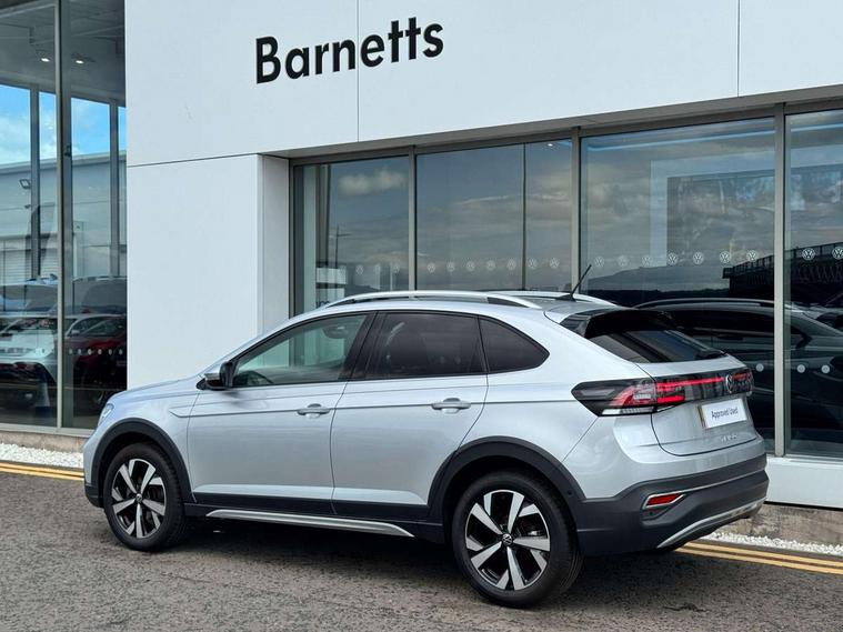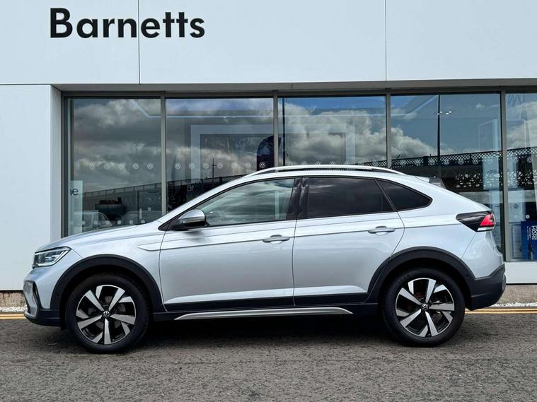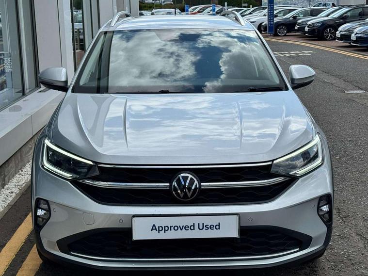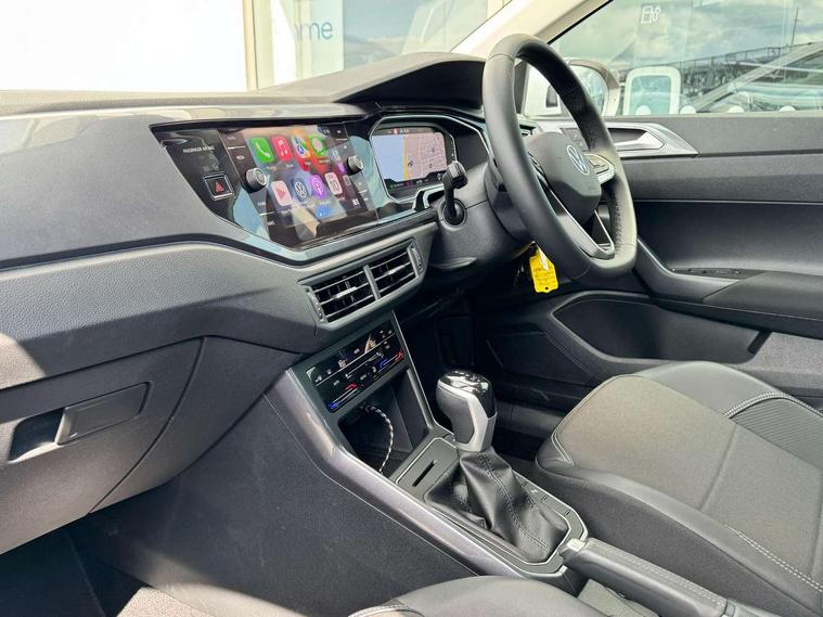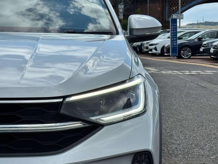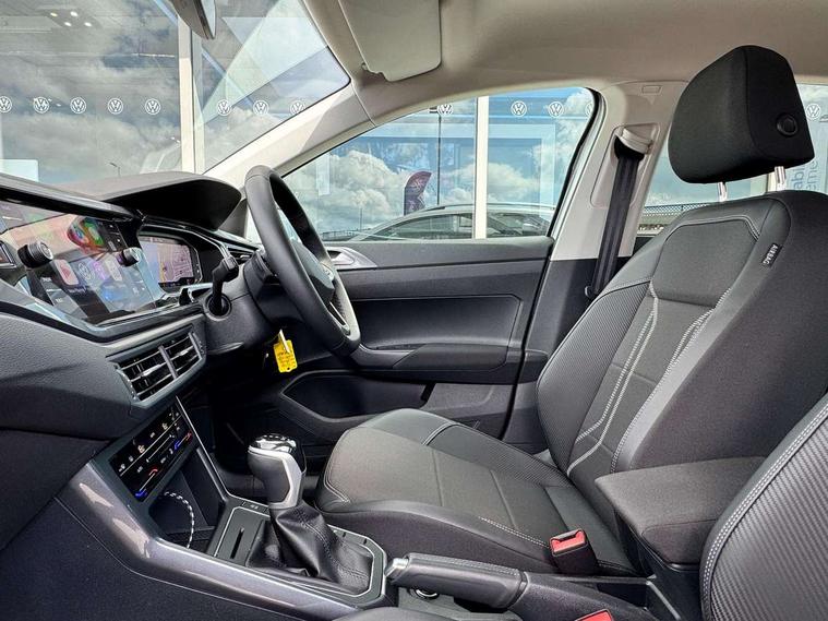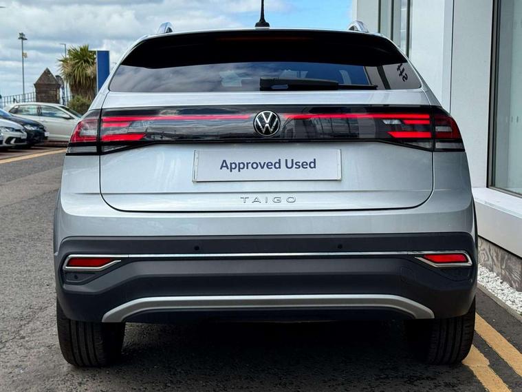 Adaptive cruise control, Advanced driver attention and drowsiness monitor, App-Connect including App-Connect Wireless, Digital cockpit pro - 10.25" high resolution TFT dash display screen with customizable menus and information, Dynamic road sign display, e-Call (emergency call), Power Steering, Travel assist including emergency assist, Washer fluid level indicator, Wireless Charging including Bluetooth, Rear shock absorption, Start-stop system with battery regeneration (recuperation - energy recovery during braking), Digital radio reception (DAB+), Diversity antenna for FM reception, WeConnect plus, Ambient lighting with logo projection, Aspherical driver's exterior mirror, Auto headlights, Body coloured bumpers and radiator grille with chrome trim and front fog lamps with chrome bezel, Dual chrome twin tailpipes on left and right, Electric windows, External USB type C socket and charging sockets, LED rear combination lamp, LED third brake light, Left convex exterior mirror, Power folding adjustable/heated exterior mirrors and front passenger exterior mirror lowering function, Rear fog light on one side, reversing light on both sides, Rear side wing doors, Rear wash/wipe with intermittent wipe setting, 12V socket in centre console, 2 front reading lights, 3 rear head restraints, 3 seat bench in 2nd row, Air care climatronic air conditoning system with active combination filter and 2-zone temperature control, Black carpets, Child seat anchor for child seat system i-Size, 2x top tether and child seat anchor in front on front passenger side, Chrome bezel for instrument cluster, vents, door handles + gear shift, Driver and front passenger seat height adjustment, Front + rear carpet mats, Front centre armrest, Front footwell illumination, Front sports comfort seats, Height and reach adjustable steering wheel, Interior ambient lighting and surround lighting, Leather trimmed gear knob, Leather wrapped multifunction steering wheel, Luggage compartment floor, Luggage compartment light, Lumbar support for driver's and front passengers seat, Single front passenger seat, Split folding backrest with centre armrest and unsplit rear seat bench, Storage compartment under front seats, Sun visors with illuminated vanity mirrors, Chrome Package - Taigo, Drivers assistance pack - Taigo, IQ.LIGHT - LED matrix headlights pack - Taigo, Light and sight pack - Taigo, 2 x 3-point seatbelts/outer rear seats with ECE label, 3-point seat belts in front with pretensioner and height adjustment, 3-point seatbelt for centre rear seat, Adaptive driver and front passenger airbags with passenger airbag deactivation function, Driver and front passenger safety-optimised head restraints, Electronic stability control, Extended and predictive pedestrian/ cyclist protection, Front and rear disc brakes, Front curtain and side airbags with center airbag, Hill start assist, Manual rear child locks, Single tone horn, Tyre pressure loss indicator, Anti-theft alarm system with interior monitoring, backup horn, and towing protection, Low rolling resistance tyres,