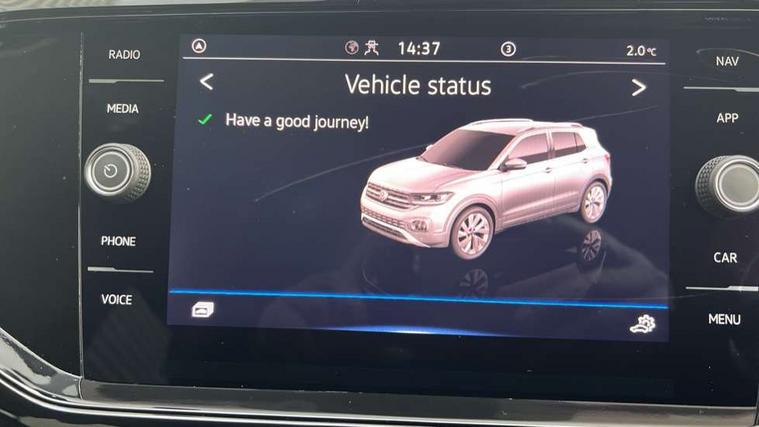 'Lights On' Reminder warning buzzer, Adaptive cruise control including front assist, forward collision warning, autonomous emergency braking, speed limiter, Blind spot monitoring, Bluetooth telephone and audio connection for compatible devices, Car information display, Digital cockpit, Driver alert system, eCall emergency call system, Lane assist, Low washer fluid warning light, Multifunction computer with visual gear change recommendation for fuel consumption, Operating permit alteration, Power assisted speed sensitive steering, Speedo, rev counter, electronic odometer, trip, service interval display, exterior temperature and fuel gauge, Stop/start system, Tailgate, Warning sound and light for doors and tailgate open, Warning sound and light for front seatbelts unfastened, We Connect Go Dongle, Wireless Car net app connect with Apple CarPlay, combined functionality of Apple CarPlay/Android Auto and MirrorLink, Battery regeneration during braking, Misfuel prevention device, 2x USB connection with USB charging sockets and in rear centre console, DAB Digital radio receiver, Diversity antenna for FM reception, Multi device interface (MDI) with USB connection, Music playback - MP3, WMA and AAC files, Premium USB cable for Apple or Android smartphone compatibility, Simultaneous pairing of 2 compatible mobile devices, Title and cover art display, Automatic hazard lights activation under emergency braking, Black door mirrors, Black roof rails, Body colour door handles, Body coloured bumpers, Dusk sensor + automatic driving lights, Electrically foldable, adjustable and heated door mirrors with reverse activated kerb view adjustment on passenger's side, Front and rear electric windows, Front fog lights with static cornering function, Galvanised body, Heated rear window, LED third brake light, Lower door sills and door pillars in black, Radiator grille with high gloss surface and chrome strip, Rear fog light on one side, reversing light on both sides, Rear lights incorporating LED technology, Rear side wing doors, Rear tinted glass 65% approx light absorbing from B pillar backwards, Rear window aerial, Rear windscreen washer and wiper with interval delay, Reflectors in all doors, Tailgate with integrated roof spoiler, Windscreen wipers/ intermittent wipe + 4 position delay, 12V Accessory socket in centre console, 3 rear head restraints and 3 rear three point seat belts with ECE label, 3 seat bench in 2nd row, 60/40 split folding rear seat backrest, Comfort front sport seats, Diag cloth upholstery, Drawer under drivers seat, Driver and front passenger sunvisor with vanity mirror, Driver's sunvisor with ticket holder, Dust and pollen filter, Front + rear carpet mats, Front and rear reading lights X 2, Front centre armrest with storage compartment, Front seat back storage pockets, Front seats with adjustable lumbar support, Glovebox, Heating and fresh air system with 4 stage blower, Height/reach adjust steering wheel, Instrument lighting white adjustable panel illumination, Interior light with delay, Isofix child seat preparation for 2 rear child seats, Luggage compartment cover, Luggage compartment lighting, Manual air conditioning, Moveable and foldable Rear bench seat, Single front passenger seat, Storage compartment in drivers and front passengers door, Three spoke multi-function leather trimmed steering wheel and gearknob, 3-point seat belts in front with electric tensioner + height adjustment, Anti-lock Braking System (ABS) with Hydraulic Brake Assist (HBA), Automatic post collision braking system, Driver and front passenger safety-optimised head restraints, Drivers and Front Passengers airbags with front passengers airbag deactivation switch, ESC with EDL, ASR, EDTC and trailer stabilisation function, Front and rear curtain airbags, Front seat side impact airbags, Hill start assist, Pre crash preventive occupant protection, Proactive passenger protection system in combination with front assist, Rear door child safety locks, Rigid safety cell with front and rear crumple zones, Single torn horn, Tyre pressure loss indicator, Volkswagen roadside assistance, Alarm with interior protection and deactivation via infotainment system, Child security locks in rear doors, Electronic engine immobiliser, Remote tailgate unlocking using key fob, Decorative inserts transition high gloss black/platnium grey, 17" Manila black diamond turned surface alloy wheels + anti theft wheel bolts, Breakdown kit,