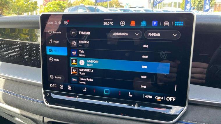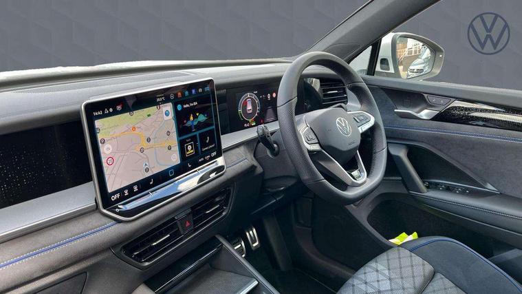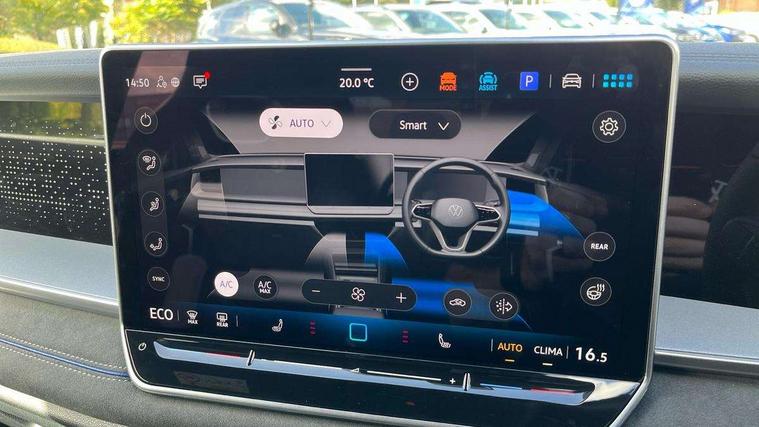 Adaptive cruise control (ACC), Digital Cockpit Pro - 10.25" high resolution dash display screen with customisable menus and information, Driver alert system, Driver attention monitoring system, Dynamic road sign display, E-Sim card for online connectivity, eCall emergency call system, Lane change system, Side assist, Rear traffic alert and Exit warning system, Multifunction front facing camera, Oncoming vehicle braking when turning including swerve support, Progressive steering, Start/stop system with regenerative braking, Voice activation spoken voice commands for telephone and navigation system, Warning signal and warning light for front and rear seatbelts not fastened, Wireless App-Connect, Adaptive chassis control DCC pro includes driving mode selection, Charging cable Mode 2 Type 2 / G (10A), Charging cable Mode 3 Type 2 / 3 (16A), Front shock absorption G08, Front wheel drive, Rear shock absorption, Digital radio reception (DAB), Diversity antenna for FM reception, Air intake with Chrome trim, Auto dimming interior rear view mirror, Automatic headlight control system, Body colour door handles, Chrome moldings on the side windows, Coming/leaving home lighting function, Dynamic headlight range control with dynamic cornering light, Exterior mirrors convex on the left and aspherical on the right, Heat insulating glass in side and rear windows, Illuminated Volkswagen logo rear with animation, Laminated safety glass from B-pillar backwards 90% tinted, Laminated safety glass winshield, heat insulating, LED 3rd brake light, LED separate signature day time running light, Puddle lights, Rain sensor windscreen wipers, Rear fog light on one side, reversing light on both sides, Rear side wing doors, Rear wiper, Reverse activated passenger's door mirror, Surround lighting with welcome light, Volkswagen logo in front, illuminated lighting animation with wake up/goodbye scenario, 12V socket in centre console, 3 rear headrests, 3 rear seat bench in 2nd row, split folding, longitudinally movable and folding with load-through hatch, Black roof lining, Brushed stainless steel pedals, Carpet mats, front and rear, Centre console with illuminated storage compartment with sliding cover and two drinks holders, Chrome elements on the mirror switch and power window switches and door pulls, Door and side trim panel insert in Art velour, Flat luggage compartment floor, Front centre armrest, Front scuff plates in alumium, Interior ambient lighting with 30 colour options, ISOFIX anchors for child seats on outer rear seats and front passenger seat. Compatible with i-Size, Mechanical rear seat release, Power adjustable lumbar support in front, Single front passenger seat, Sports comfort seats in front, Sun visors with illuminated vanity mirrors, 3 Point seat belts in front with pretensioners, 3 point seatbelts in outer rear with ECE label, Autonomous emergency braking front assist with pedestrian and cyclist monitoring, Driver and front passenger airbag with front passenger airbag deactivation, Electronic parking brake with auto hold, First aid kit with warning triangle and safety vest, Front and rear curtain airbags, Front and rear side airbags, Front centre airbag, Front disc brakes, Hill start assist, Rear disc brakes, Two tone horn, Decorative material set R-Line, Interior door handle in matte chrome, Tool kit for tyre mobility set, Tyre mobility kit including compressor and sealing foam. In lieu of spare wheel,