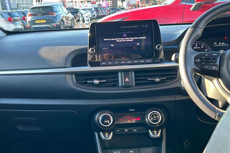12.3" Display with navigation, 4.2" supervision colour cluster display, Apple car play/Android Auto with voice control, Drive mode selector, E-call, Forward collision avoidance assist (FCA) - city/pedestrian/cyclist/junction covering, Front and rear parking sensors, Highway Driving Assist (HDA), Intelligent speed limit assist, Kia Connect (UVO), Lane Following Assist (LFA), Lane keep assist, Low washer fluid warning, Rear view monitor, Reversing camera system integrated into centre fascia screen, Smart cruise control with stop and go functionality, Speed sensitive power steering, Trip computer, Windscreen washer level indicator, Intelligent Stop and Go, 6 speaker audio system, Bluetooth audio streaming, DAB Radio with MP3, Rear USB port, Steering wheel mounted audio controls, USB port for connection of a media device, All round electric windows with drivers and front passenger auto up/down function, Automatic headlight control system, Automatic window defogger, Backlite glass heated with timer, Body colour and black bumper with silver accents, Body colour door mirrors, Body colour exterior door handles, Body colour radiator upper garnish and door garnish, Electrically adjustable/heated/folding door mirrors with LED indicators, Front and rear chrome skid plates, Gloss black radiator grille, Gloss black side sill and wheel arch body mouldings, High beam assist, Interior electrochromic mirror, LED daytime running lights, LED front fog lamps, LED headlamps (low and high beam - MFR type), LED High mounted stop light, LED rear combination lamp, Rain sensing wipers with aero blades, Rear fog lamp, Rear privacy glass, Rear side wing doors, Rear spoiler, Rear wiper, Satin finished beltline, Silver roof rack, Trailer stability assist, 12V power socket in front centre fascia and luggage compartment, 2nd row personal lamps, 3 seat bench in 2nd row, 3 x passenger assist grips, 40/20/40 split folding rear seat, All-round height adjustable headrests, Black headlining, Centre console storage box, Cupholders in rear armrest, D-Shaped sports leather steering wheel and perforated inserts with GT-Line logo, Door courtesy lamps, Drink holder at centre armrest, Driver and front passenger side sunvisors with illuminated vanity mirrors, Driver's seat manual height adjust, Drivers seat power lumbar support, Front and rear door storage, Front seat and rear pockets, Front/rear centre armrests, Gear shift indicator, Glovebox illumination, Interior door lock/unlock function, ISOFIX Child seat top tethers and anchor fixings outer rear seats, Luggage area light, Luggage area load cover, Luggage net with hooks, Metal paint interior door handles, Overhead console lamp, Paddle shift controls, Rear coat hooks, Single front passenger seat, Sports pedals, Suede leather upholstery, Three zone climate control, Tilt/telescopic adjustable steering wheel, Ventilation ducts to rear compartment, Active front headrests, All round 3-point seatbelts, Anti-lock braking system (ABS), Dual front side airbags, Dual horn, Electronic parking brake, Electronic stability control with downhill brake control, Front passenger airbag cut-off switch, Front seatbelt pretensioners + load limiters, Height adjustable front seatbelts, Hill start assist control (HAC), Impact sensing auto door unlocking, Multi collision brake assist, Rear door child safety locks, Rear seat alert system, Traction control, Twin curtain airbags, Twin front airbags, Tyre pressure monitoring system, Advanced anti-theft system including immobiliser and alarm, Door deadlocks, Engine Start/Stop Button with Smart Entry System, Locking wheel nuts, Speed sensitive auto door locking, Visible vehicle identification number, Aluminium pattern finish centre fascia and door garnish, 18" Alloy wheels, Tyre mobility kit,