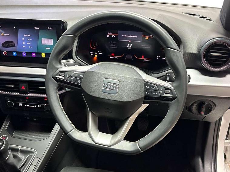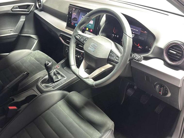 'Lights On' Reminder warning buzzer, 8" Digital cockpit, 9.2" touchscreen navigation system with type C USB socket, Voice control and DAB/AM/FM radio, Auto start and stop system, Bluetooth audio streaming with handsfree system, Digital clock, E-call, Full link smartphone integration with mirror link, wireless apple carplay, Google android auto + USB Type C cable for apple and android devices, Lane assist, Low fuel warning light, Outside temperature gauge, Power Steering, Rear parking sensor, Seat connect plus with safety, service, remote and online, SEAT logo boot release, Speed limiter, Traffic sign recognition, Trip computer, Comfort suspension, Auxiliary input socket, Radio/MP3 player, SD card slot, Steering wheel mounted controls, Anti theft roof antenna, Atom grey door mirrors, Auto dimming rear view mirror, Automatic rain sensing wipers, Body colour bumpers, Body colour door handles, Chrome window surround and upper grille surround, Dark tinted rear windows, Electric adjustable/heated/folding door mirrors, Electric front windows, Electric headlight adjustment, Electric rear windows, Front/rear fog lights, FULL LED automatic headlights with dynamic headlight range control, coming and leaving home, LED daytime running lights, LED tail lights, Rear side wing doors, Rear wiper, Third brake light, 3 seat bench in 2nd row, 60/40 split folding rear seat, Ambient interior lighting, Chrome detailing and black headlining, Comfort seats, Dual zone climate control with combination filter, Front centre armrest, Front courtesy lights, Front cupholders x 2, Front reading lights, Gear shift indicator, Glovebox, Height adjustable front and rear headrests (five), Height adjustable front seats, Height/reach adjust steering wheel, Illuminated air vent surrounds, Illuminated boot, Instrument lighting with brightness control, Isofix, Leather multifunction flat bottomed sports steering wheel, Microsuede cloth upholstery, Passenger sunvisor, Single front passenger seat, Storage pockets on back of front seats, Sunvisors with mirror and driver side card holder, Safety and driving pack (S) - Ibiza, 3 point seatbelts on all 3 rear seats, ABS, Active front headrests, Child locks on rear doors, Electronic stability control, Energy recovery system, Front driver and passenger side airbags with curtain airbag and front passenger airbag deactivation, Hill hold control, Multi-Collision braking, Seat belt reminder for front and rear seats, Tiredness recognition system, Tyre pressure monitoring system, Electronic engine immobiliser, KESSY Keyless entry and go, Locking wheel bolts, Perimeter alarm and interior monitoring inc.backup horn, tow away protection and electronic engine immobiliser, Remote central locking + deadlocks, 17" Dynamic machined alloy wheels in Nuclear grey,