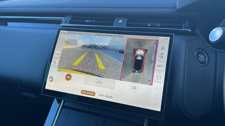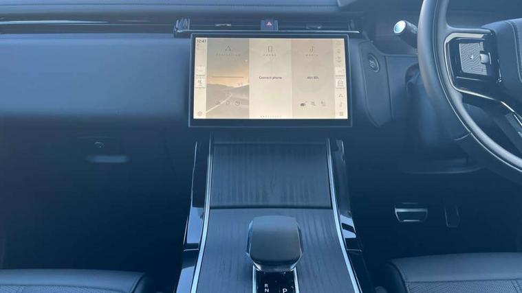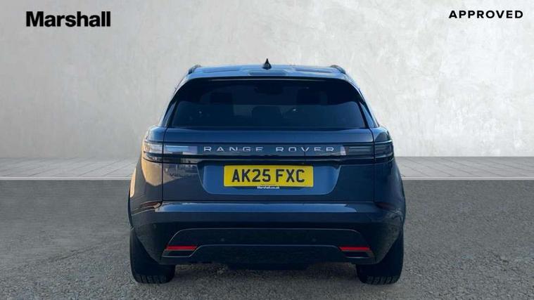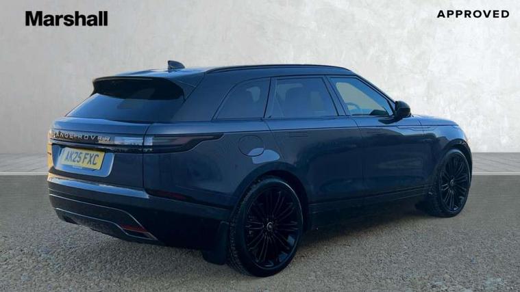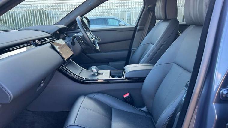 3D surround camera includes forward traffic detection and vehicle guidance, Adaptive cruise control with steering assist, Android Auto, Apple CarPlay, Blind spot assist, Bluetooth connectivity, Brake pad wear indicator warning light, Driver condition monitor, eCall emergency call system, Front and rear parking aid, InControl remote, Land Rover InControl apps, Lane keep assist, Pivi pro with connected navigation, Rear collision monitor, Rear traffic monitor, Service indicator, Speed proportional electronic power assisted steering (EPAS), Traffic sign recognition with adaptive speed limiter, Trip computer, Voice control system, Wade Sensing, Wireless device charging, 8 speed automatic transmission, Adaptive dynamics, All terrain progress control, Electronic air suspension, Open differential with torque vectoring by braking, Single speed transfer box, Terrain Response 2 with dynamic program, DAB radio, Steering wheel mounted controls, 3rd brake light, Acoustic laminated windscreen, Auto dimming interior rear view mirror, Autobiography badge, Automatic headlamp levelling, Automatic headlights, Body coloured bumpers, Boot protection plate, Contrast bonnet in burnished copper & rear lettering, Electric windows with one touch open/close and anti trap, Flush deployable exterior door handles, Follow me home headlights, Heated rear window with timer, Heated washer jets, Heated windscreen, Metal load space scuff plates, Pixel LED headlights with signature DRL, Power fold, auto-dimming, heated door mirrors with memory and approach lights, Rain sensor windscreen wipers, Rear animated directional indicators, Rear fog lights, Rear side wing doors, Rear wash/wipe, Tailgate/boot lid spoiler, Trailer stability assist, Velar badge, 3 seat bench in 2nd row, Ambient lighting, Bright metal pedals, Carpet mats, Driver/passenger sunvisors with illuminated vanity mirrors, Ebony suedecloth headlining, Electrically adjustable steering column, Full extended leather upgrade, Heated steering wheel, Isofix system on outer rear seats, Loadspace cover, Overhead lighting console, Overhead stowage for sunglasses, Passive front headrests, Rear air vents, Rear centre headrest, Single front passenger seat, Twin front cupholders, Twin sliding front centre armrest, Online pack with data plan - Velar, Power socket pack 2 - Velar, 380mm front brakes and 325mm rear brakes, 3x3 point rear seatbelts, Anti-lock braking system (ABS), Cornering brake control, Curtain airbags, Customer configurable autolock, Door side intrusion beams, Driver airbag, DSC - Dynamic Stability Control, Electronic brake force distribution, Electronic parking brake, Electronic traction control, Emergency braking, Front and rear seatbelt reminder, Hill descent control, Hill launch assist, Low traction launch, Passenger airbag, Power operated child locks, Rear airbags, Roll stability control, Side airbags, Tyre pressure monitoring system (TPMS), Global lock and unlock switch on driver door, Immobiliser, Intrusion sensor, Keyless entry, Lock only switch on front passenger door, Locking wheel nuts, Perimetric alarm, Remote central locking, All season tyres,