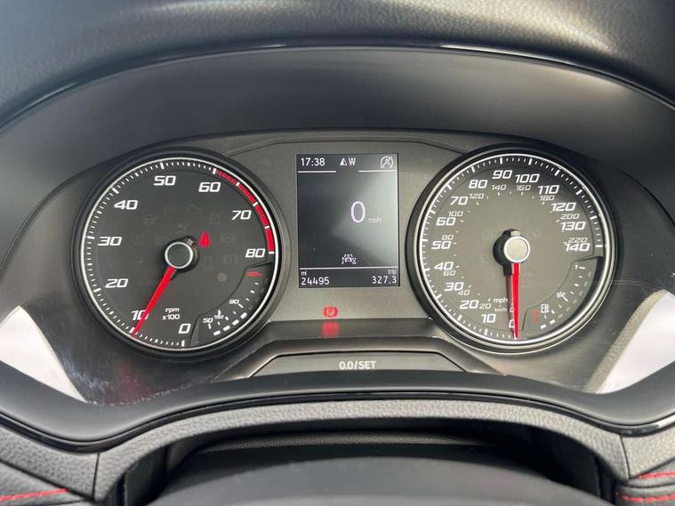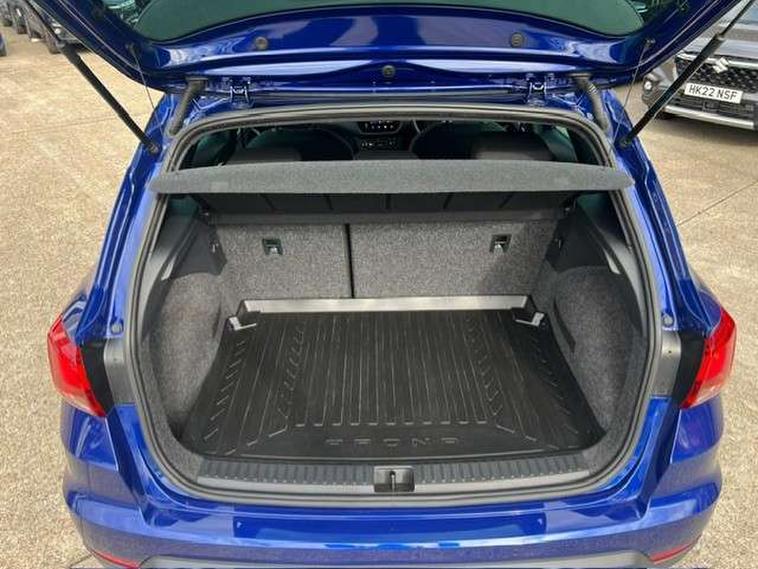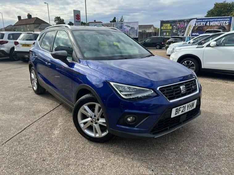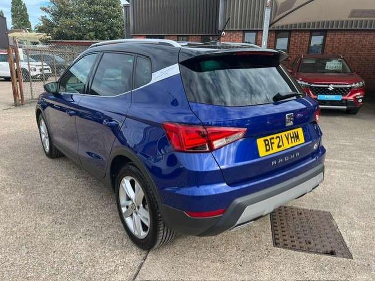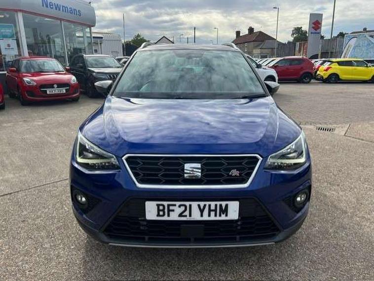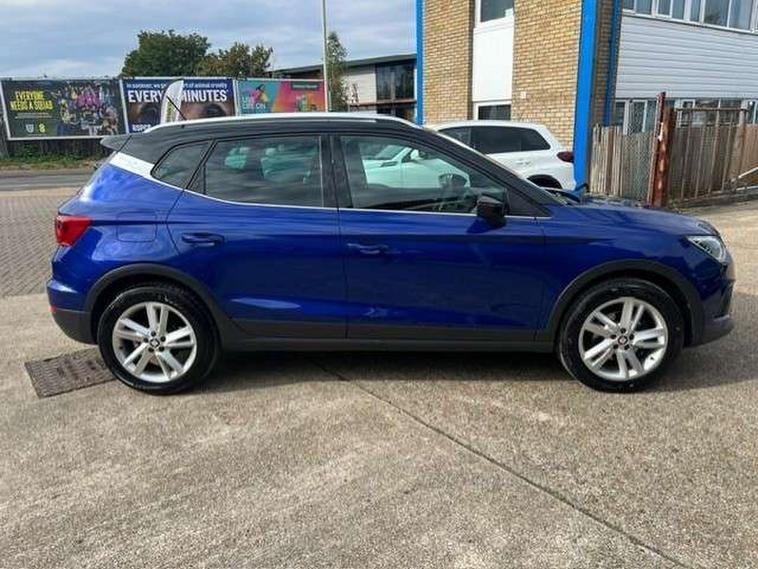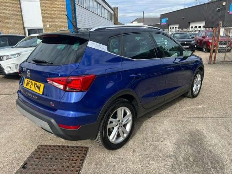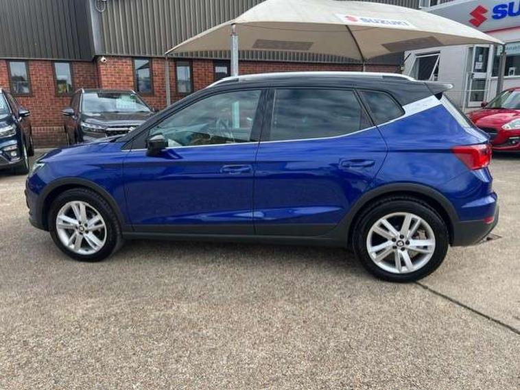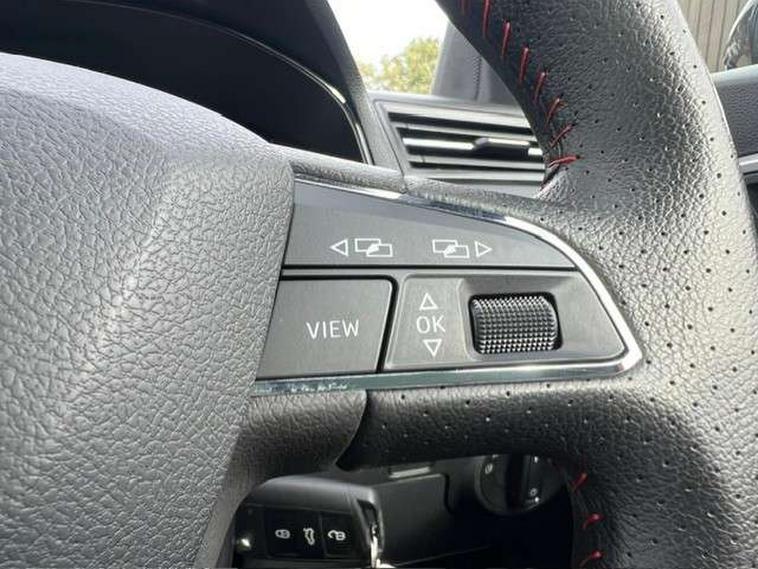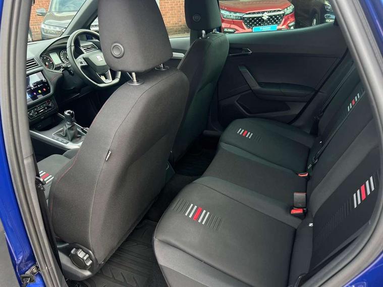 'Lights On' Reminder warning buzzer, Cruise control and speed limiter, Digital clock, Electric speed sensitive power steering, Full Link Smartphone Integration with Mirror Link, Apple Car Play, Google Android Auto with USB Type C cable for Apple and Android compatibility, Low fuel warning light, Outside temperature display, Rear parking sensor, RPM counter, Seat connect with safety, service, remote and online, SEAT Drive profile - Four different models normal-sport-eco-individual, steering response, throttle response, Trip computer, Sports suspension, 6 speakers, Bluetooth interface for hands free and audio streaming, DAB digital radio and AM/FM radio, Steering wheel mounted audio controls, Anti theft roof antenna, Auto dimming interior rear view mirror, Automatic activation of hazard warning lights, Automatic headlights, Body coloured bumpers, Body coloured door handle inserts, Chrome front grille frame, Chrome roof rails, Chrome window trim, Coming/leaving home lighting function, Dark tinted rear windows, Electric front/rear windows with one touch/auto up/down, Electrically adjustable, heated and folding door mirrors, Full LED headlights dipped and mainbeam + front and rear fog lights, LED daytime running lights, LED rear tail lights and licence plate lights, Protective side mouldings, Rain sensing wipers, Rear window wash/wipe, Roof colour door mirrors, Twin exhaust pipe styling hidden exhaust pipe, Visible VIN plate, Windshield wiper with intermittent control and potentiometer, 2 cupholders, 60/40 split folding rear seat, Aircare filter, Black interior roof, Double boot floor, Driver sunvisor with covered mirror + card holder, Dual zone climate control, Front courtesy light with front reading lights, Front sport seats, Gear shift indicator, Height adjustable front seats, Height/reach adjustable steering column, Illuminated boot, Instrument lighting with brightness control, Interior light in footwell, central console and door panel, ISOFIX points in outer rear seats with top tether anchorage points, Multi-colour ambient interior lighting, Nora cloth upholstery, Passenger sunvisor with vanity mirror, Perforated flat bottomed leather steering wheel/gear knob/handbrake with red stitching and FR logo, Two front and three rear height adjustable headrests, Connectivity pack plus - Arona, Interior chrome pack - Arona, 3 point seatbelts on all rear seats, ABS, Active front headrests, Child locks on rear doors, Driver and front passenger airbags with front passenger airbag de activation, front side and curtain airbags, Electronic stability control, Emergency Brake Assist (EBA) and front assist, Front and rear seatbelt reminder, Hill hold control, Multi-Collision braking, Tiredness recognition system, Traction control, Tyre pressure monitoring system, 2 folding remote keys with window open/close function, Alarm with back-up horn, Electronic engine immobiliser, Locking wheel bolts, Remote central locking + deadlocks, Tow away protection, Interior chrome line trim, Leatherette dashboard, 17" Dynamic alloy wheels,