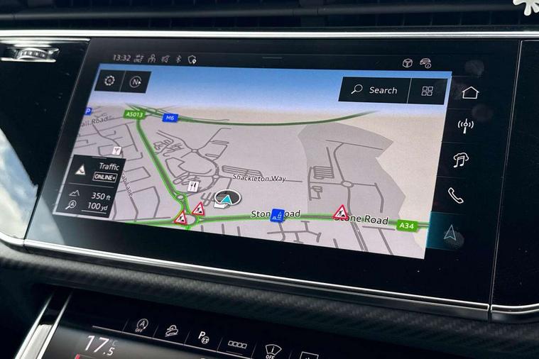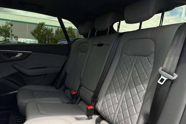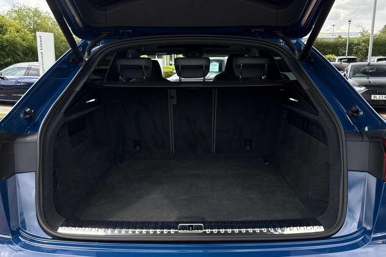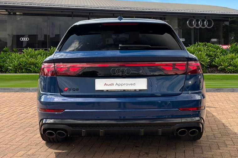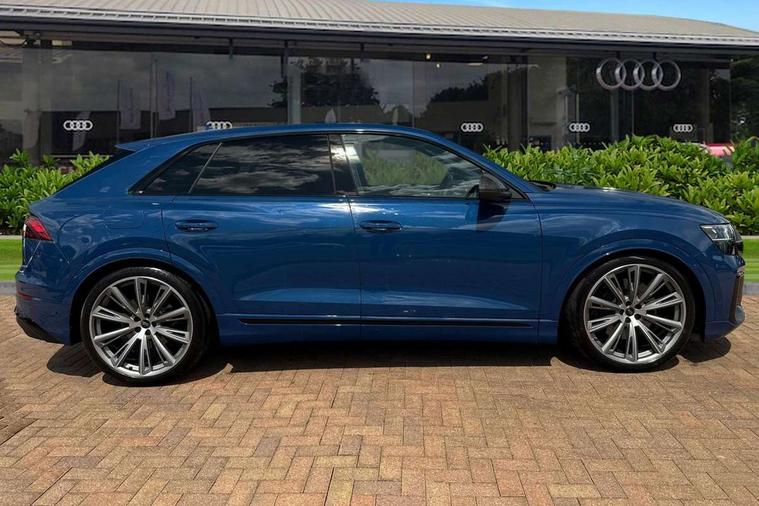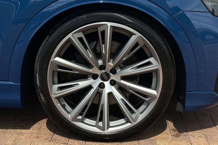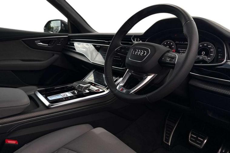 10.1" and 8.6" Dual colour touchscreens, 2 USB C ports with charging functionality in the rear, 360 degree camera with top view, All wheel steering, Audi application store, Audi connect safety and service (e-call), Audi connect with Amazon Alexa Integration, Audi drive select, Audi phone box light with wireless charging, Audi smartphone interface includes wireless Apple carplay/Android Auto, Audi virtual cockpit plus, Automatic start/stop system, Bluetooth, Electro-mechanical PAS, Head up Display, Low washer fluid indicator, MMI navigation plus with MMI touch, Natural voice recognition, On board computer, Operating buttons in black, glass look with haptic feedback, Power door closure, Power operated tailgate, Remote park assist plus, Service interval indicator, 48V Mild hybrid technology, 85 litre fuel tank, Electromechanical active roll stabilisation, Quattro sports differential, S specific Adaptive air suspension, Audi music interface with 2 USB ports with charge and data functions, Aux-in socket, Bang + Olufsen sound system, DAB Digital radio, 3rd brake light, Adaptive windscreen wipers with integrated washer jets, Audi beam, Auto dimming frameless rear view mirror, Coming/leaving home lighting function, Electric front+rear windows, Electric panoramic glass sunroof, Electrically folding auto dimming/adjustable/heated door mirrors with memory function, LED side indicators and kerb view function for passenger side, Headlight washers, Heat insulating glass in windshield, LED rear light plus, LED signature daytime running lights, Matrix LED headlights with dynamic front and rear indicators, Platinum grey front spoiler lip and diffuser insert with honeycomb grille in black, Privacy glass - dark tinted rear and rear side windows from B-pillar backwards, Rain and light sensors, Rear side wing doors, Rear wiper, S specific dual brach chrome tailpipes on both the left and right, S specific front and rear bumpers, Singleframe grille surround in matte platinum grey, 3 bench rear seats in 2nd row, 3 spoke heated leather multi-function sport steering including paddle shift, 4 zone deluxe automatic climate control, 4-way lumbar support for front seats, 40:20:40 split folding rear bench seat, Black dinamica headlining, Black leather instrument panel and centre console band with rock grey contrast stitching, artificial leather door armrest with contrast stitching, Comfort front centre armrest, Double sun visor with illuminated vanity mirror on driver and passenger side extendable, Driver and front passenger seat memory function for electrically adjustable front seats, Electric luggage compartment cover, Electric sunblind for the rear side windows and manual sunblind for the rear window, Front head restraints, Front/rear floor mats, Heated front and outer rear seats, ISOFIX child seat mounting for front passenger seat and 2 outer rear seats with top tether child seat mounting for all 3 rear seats, Luggage compartment sill protection in stainless steel, Massage and ventilation function for front seats, Power adjustable steering wheel, Rear centre armrest with 2 cupholders, Rear headrests, Seat cushion displaceable by 100mm in the ratio 60:40, Single front passenger seat, Stainless steel pedals, Valcona leather upholstery + front super sport seats with S embossed logo, Ambient lighting package plus - Q8, Black styling pack plus - SQ8, City assist pack - Q8, Extended leather pack - Q8, Tour pack when bought with City assist pack - Q8, 3 point seatbelts on all seats, Audi pre sense front, Driver and front passenger, front side and curtain airbags, Electromechanical parking brake, Electronic Stability Control (ESC) including ABS, ASR and EDL, Front passenger airbag deactivation, Hill descent control, Hill hold assist, Predictive pedestrian protection, Seatbelt monitoring, Traction control, Tyre pressure loss indicator, Warning triangle and first aid kit, Advanced key, Anti theft alarm with tow away protection, Anti-theft wheel bolts and wheel loosening detection, Electronically operated child lock, Immobiliser, Tool kit, Tyre repair kit,