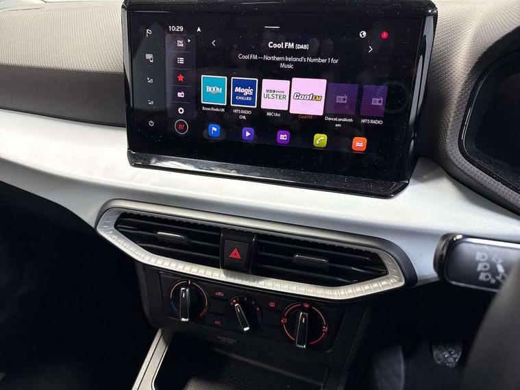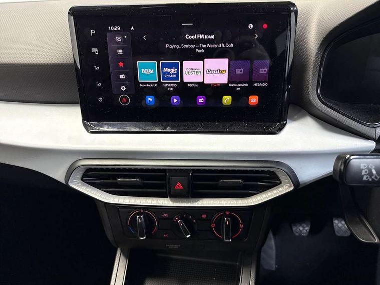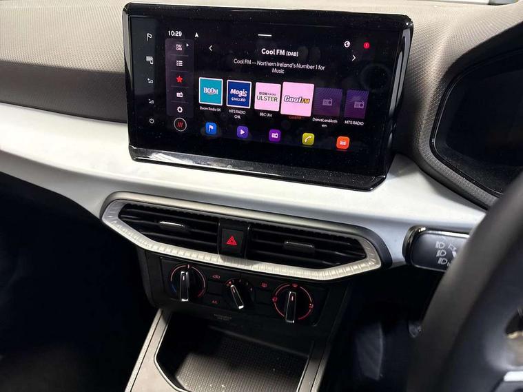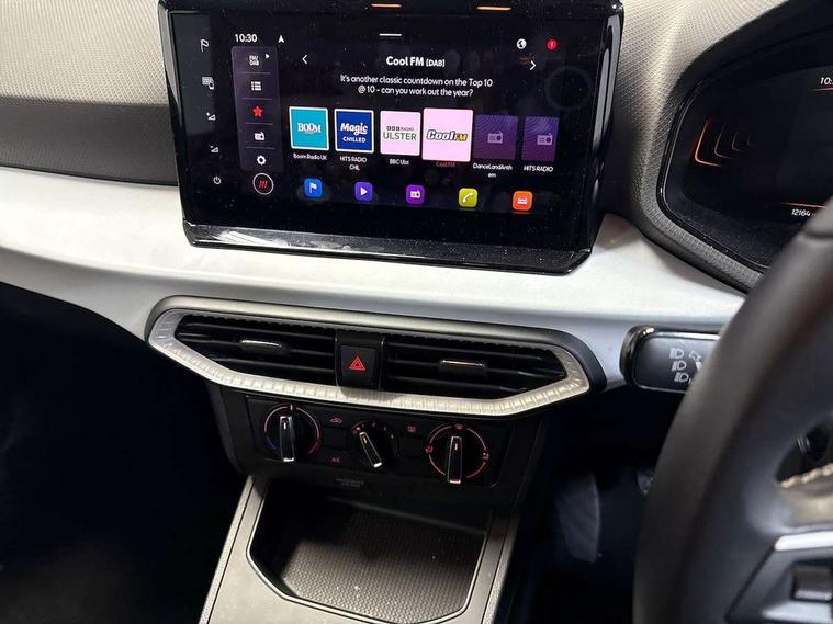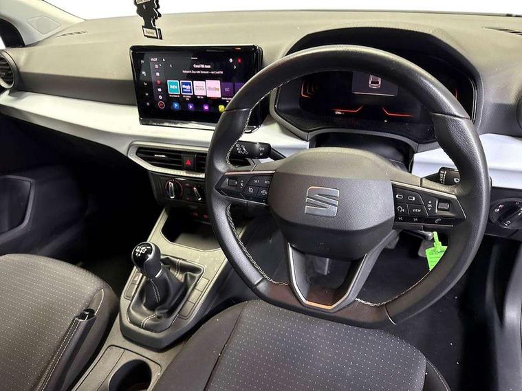 'Lights On' Reminder warning buzzer, 8" Digital cockpit, 9.2" touchscreen navigation system with type C USB socket, Voice control and DAB/AM/FM radio, Auto start and stop system, Bluetooth audio streaming with handsfree system, Cruise control, Digital clock, E-call, Full link smartphone integration with mirror link, wireless apple carplay, Google android auto + USB Type C cable for apple and android devices, Lane assist, Low fuel warning light, Outside temperature gauge, Power Steering, Rear parking sensor, Seat connect plus with safety, service, remote and online, SEAT logo boot release, Speed limiter, Traffic sign recognition, Trip computer, Comfort suspension, 6 speakers, Auxiliary input socket, Radio/MP3 player, SD card slot, Steering wheel mounted controls, Anti theft roof antenna, Body colour bumpers, Body colour door handles, Body colour door mirror caps, Dimming interior rear view mirror, ECO LED automatic headlights and LED daytime running lights, Electric front windows, Electric headlight adjustment, Electrically adjustable door mirrors, Front/rear fog lights, Halogen tailights, Rain sensor, Rear side wing doors, Rear wiper, Third brake light, 3 seat bench in 2nd row, 60/40 split folding rear seat, Air conditioning with dust and pollen filter, Chrome interior detailing and grey headlining, Cloth upholstery, Comfort seats, Front courtesy lights, Front cupholders x 2, Front reading lights, Gear shift indicator, Glovebox, Height adjustable front and rear headrests (five), Height adjustable front seats, Height/reach adjust steering wheel, Illuminated boot, Instrument lighting with brightness control, Isofix, Leather multifunction flat bottomed sports steering wheel, Passenger sunvisor, Single front passenger seat, Sunvisors with mirror and driver side card holder, Safety and driving pack (S) - Ibiza, 3 point seatbelts on all 3 rear seats, ABS, Active front headrests, Child locks on rear doors, Electronic stability control, Energy recovery system, Front assist forward collision warning and autonomous emergency braking, Front driver and passenger side airbags with curtain airbag and front passenger airbag deactivation, Hill hold control, Multi-Collision braking, Seat belt reminder for front and rear seats, Tiredness recognition system, Tyre pressure monitoring system, Electronic engine immobiliser, Locking wheel bolts, Remote central locking + deadlocks, 16" Design machined alloy wheels in Nuclear grey,