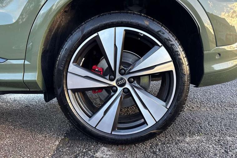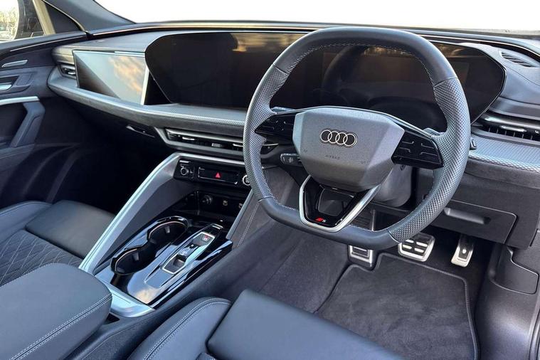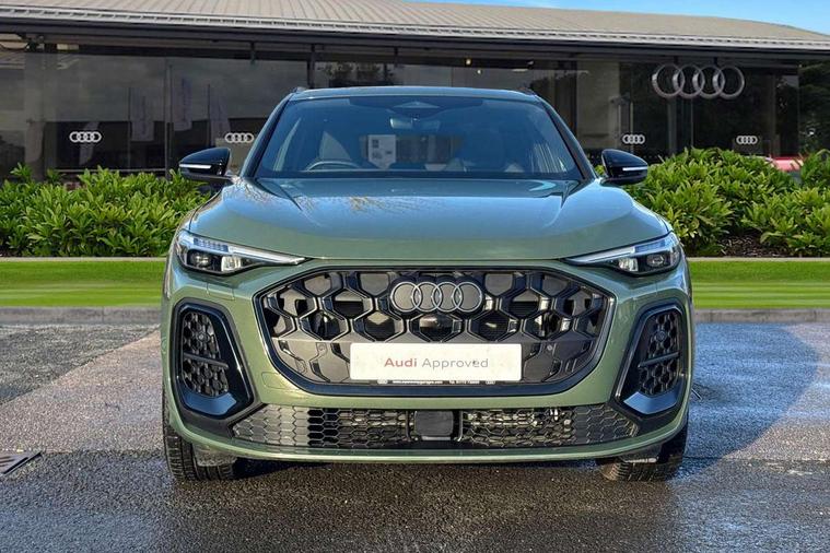 Adaptive cruise control, Advanced driver attention alert, Audi application store, Audi connect emergency call and service, Audi drive select, Audi smartphone interface, Audi virtual cockpit plus with 11.9" OLED colour display, Camera based traffic sign recognition, Fatigue monitor, Front cross traffic intersection assist, Lane change assistant with exit warning system, rear cross traffic alert and rear turn assist, Lane departure warning with emergency assist, MMI 10.9" front passenger touch display, MMI navigation plus with high resolution 14.5" OLED touchscreen colour display, Park assist plus, Parking system plus with 360 display, PAS, Reversing camera, Swerve assist and turn assist, Top view camera, Traffic sign based speed limiter, 2 USB-C ports in both the front and rear, Audi sound system impressive sound with 10 loudspeakers including centre speaker and subwoofer, 6-channel amplifier with a total output of 180 watts, DAB Digital radio, Smartphone compartment with wireless charging, Active digital light signatures - Six additional combinations of active daytime running light signature, Auto dimming rear view mirror, Black roof rails, Coming/leaving home lighting function, Electrically adjustable heated and folding + automatically dimming exterior mirrors, Exhaust tailpipes in dark chrome, Front and rear electric windows, Front door sill trims with aluminium inlays, illuminated with 'S' logo, Full body paint finish, Headlight cleaning system, Heated rear window, High beam assist, High gloss window surrounds, Inlay and front air inlets in matt anthracite chrome, LED rear lights pro incl. dynamic rear indicators and illuminated light strip with animated coming and leaving home function, Logo projection light in exterior mirrors, Matrix LED headlights, Memory function for door mirrors, Privacy glass, Projection light for rear window, Radiator grille in phantom black, Rear and side windows with heat insulating glass, Rear honeycombe grille in matt black with inlay in matt anthracite chrome, Rear side wing doors, Rear wash/wipe, S Line badge on the front wings, Towbar preparation, Windscreen with acoustic glazing, 3 rear head restraints, 3 seat bench in 2nd row, 3 spoke leather steering wheel with multi-function buttons with touch control, flattened on top and bottom, with S badging and contrast stitching, 4 way electric lumbar support for driver and front passenger, 40:20:40 split folding rear seat bench with centre armrest and cup holders, Comfort centre armrest, Deluxe 3 zone electronic climate control, Dinamica microfiber/leather upholstery, Electrically adjustable front seats with memory function for driver's side, Front and rear floor mats, Front sport seats with integrated head reastrains, Headlining in black cloth, Heated front seats, i-Size child seat mounting on the front passenger side and outer rear seats, i-Size and top tether on the outer rear seats, Interior trim in aluminium look, Luggage compartment lid, electrically opening and closing, Manual steering column adjustment, Single front passenger seat, Softwrap in Dinamica, Stainless steel pedals and footrest, Steering wheel grips in perforated leather and shift paddles, Ambient lighting package plus - Q5, Black styling package plus - Q5, Storage and luggage compartment pack - Q5, 3x3 point rear seatbelts, ABS, Acoustic vehicle alerting system, Convenience key with safelock, Driver and front passenger airbag with passenger airbag deactivation, Electric child safety locks, First aid kit with warning triangle and high visibility vests, Front emergency brake assist, Front side airbags with head airbag system and front interaction airbag, Hill hold assist, Occupant detection in rear seat area, Proactive passenger protection system for front, sides and rear, Red brake calipers, Side airbags in front and rear with head airbag system and front interaction airbag, Tyre pressure loss indicator, Anti theft alarm, Anti-theft wheel bolts, Remote control key with SAFELOCK and keyless go, Accent surfaces and control buttons in gloss black, Black dashboard with contrast stitching, Steel grey seat stitching, Upper and lower interior elements in dinamica microfiber, Tyre repair kit,