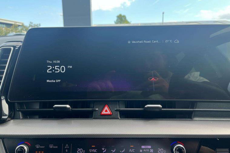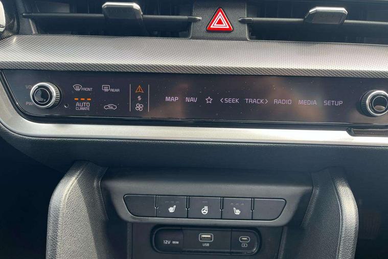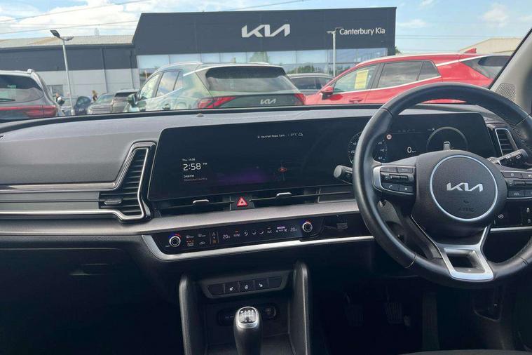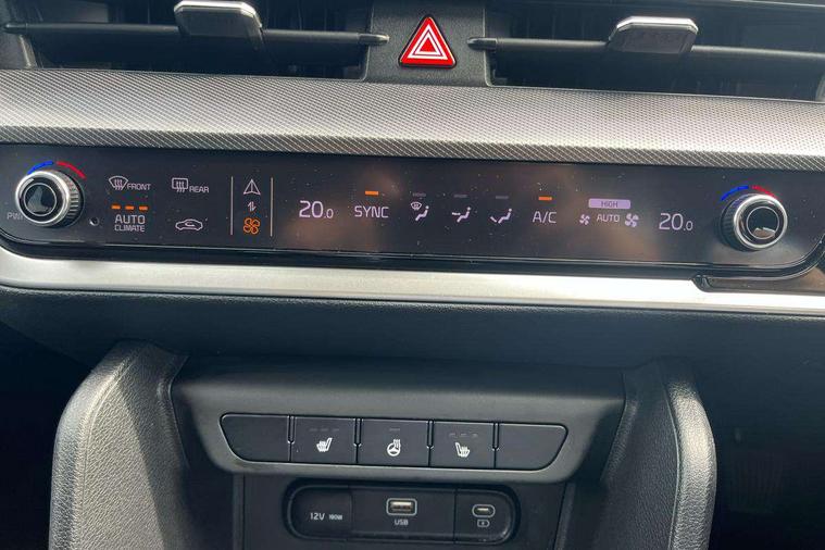 12.3" Display with navigation, 12.3" supervision colour cluster display, Apple car play/Android Auto with voice control, Cruise control + speed limiter, Drive mode selector, E-call, Forward collision avoidance assist (FCA) - city/pedestrian/cyclist/junction covering, Front and rear parking sensors, Intelligent speed limit assist, Kia Connect (UVO), Lane Following Assist (LFA), Lane keep assist, Low washer fluid warning, Rear view monitor, Reversing camera system integrated into centre fascia screen, Speed sensitive power steering, Trip computer, Windscreen washer level indicator, Intelligent Stop and Go, 6 speaker audio system, Bluetooth audio streaming, DAB Radio with MP3, Rear USB port, Steering wheel mounted audio controls, USB port for connection of a media device, All round electric windows with drivers and front passenger auto up/down function, Automatic headlight control system, Automatic window defogger, Backlite glass heated with timer, Black side sill and wheel arch body mouldings, Body colour and black bumper with silver accents, Body colour door mirrors, Body colour exterior door handles, Electrically adjustable/heated/folding door mirrors with LED indicators, High beam assist, Interior electrochromic mirror, LED daytime running lights, LED front fog lamps, LED headlamps (low and high beam - MFR type), LED High mounted stop light, Rain sensing wipers with aero blades, Rear fog lamp, Rear privacy glass, Rear side wing doors, Rear skid plate - silver, Rear spoiler, Rear wiper, Satin finished beltline, Silver radiator upper garnish and door garnish, Silver roof rack, Trailer stability assist, 12V power socket in front centre fascia and luggage compartment, 2nd row personal lamps, 3 seat bench in 2nd row, 3 x passenger assist grips, 40/20/40 split folding rear seat, All-round height adjustable headrests, Centre console storage box, Cloth/faux leather upholstery, Cupholders in rear armrest, Door courtesy lamps, Drink holder at centre armrest, Driver and front passenger side sunvisors with illuminated vanity mirrors, Drivers seat power lumbar support, Electric height adjustable front seats, Front and rear door storage, Front seat and rear pockets, Front/rear centre armrests, Gear shift indicator, Glovebox illumination, Heated front and outer rear seats, Heated steering wheel, Interior door lock/unlock function, ISOFIX Child seat top tethers and anchor fixings outer rear seats, Leather steering wheel, Luggage area light, Luggage area load cover, Luggage net with hooks, Metal paint interior door handles, Overhead console lamp, Rear coat hooks, Single front passenger seat, Three zone climate control, Tilt/telescopic adjustable steering wheel, Ventilation ducts to rear compartment, Active front headrests, All round 3-point seatbelts, Anti-lock braking system (ABS), Dual front side airbags, Dual horn, Electronic parking brake, Electronic stability control with downhill brake control, Front passenger airbag cut-off switch, Front seatbelt pretensioners + load limiters, Height adjustable front seatbelts, Hill start assist control (HAC), Impact sensing auto door unlocking, Multi collision brake assist, Rear door child safety locks, Rear seat alert system, Traction control, Twin curtain airbags, Twin front airbags, Tyre pressure monitoring system, Advanced anti-theft system including immobiliser and alarm, Door deadlocks, Engine Start/Stop Button with Smart Entry System, Locking wheel nuts, Speed sensitive auto door locking, Visible vehicle identification number, Aluminium pattern finish centre fascia and door garnish, 18" Alloy wheels, Tyre mobility kit,