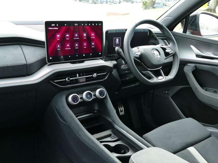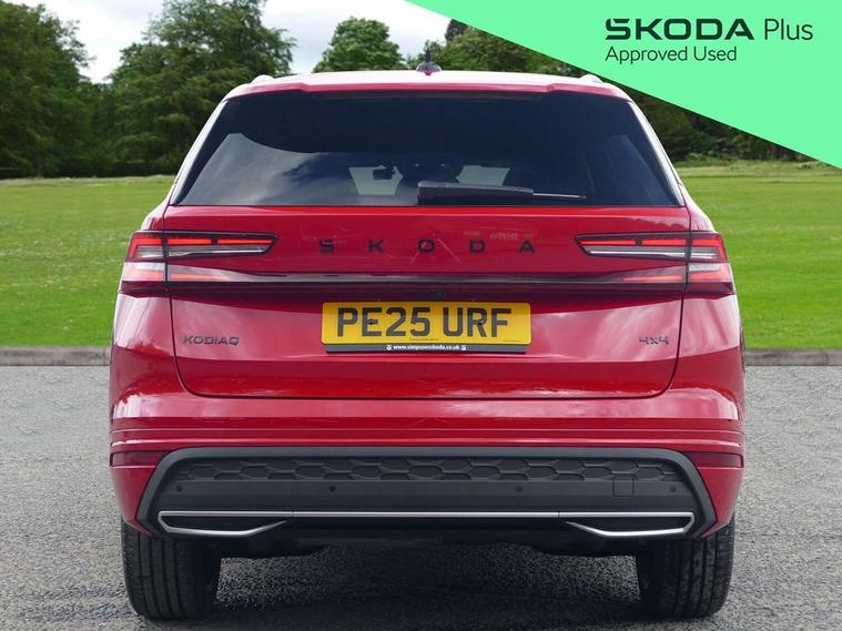 13" satellite navigation touchscreen display, Blind spot detection with door exit warning, Bluetooth system, ChatGPT functionality, Driver alert - Fatigue and drowsiness monitor, Dry display cleaner, Emergency call, Front and rear parking sensors, Front cross traffic assist, Lane assist, Off road modes, PAS, Rear traffic assist, Tailgate unlocking from outside, Traffic sign recognition, USB C Port x 2 in front centre console, Virtual Cockpit - 10.25" digital display, Voice control system, Wireless charging for two smartphones (15W) with cooling function, Wireless SmartLink for Apple CarPlay and Android Auto, Stop/start function, 2x USB-C in the rear, DAB Digital radio, Aero front windscreen wipers with intermittent function, Auto dimming rear view mirror, AWL (all weather lighting) and all weather light with cornering function, Black diffuser and decorative tailpipe with a unique dark chrome finish, Black roof rails, Black sports styling including front grille and window surrounds, Black wheel arch surrounds, Body colour door handles, Cornering light and poor weather light, Electric folding /adjustable/separted heated/folding door mirrors, auto dimming with boarding sports and memory function, Electric front and rear windows, Exterior black decorative trims, Front and rear sports bumpers including lower rear chrome strip, Gloss black door mirrors, Gloss black window frame and D pillar, Heat insulating glass in windshield, Heated rear window, Ice scraper in fuel tank cap, LED daytime running lights, LED third brake light in rear spoiler, Light assistant with automatic headlight control and coming home feature, Logo projection in door mirrors, Privacy glass, Rear roof spoiler, Rear side wing doors, Rear window wiper, Red decorative strip between rear LED lights, Safety reflectors on front and rear doors, Sportline badge on front fenders, Tailgate lettering in Black, Unique dark chrome design logo on alloy wheels, Window control switches with black trim, Windscreen wipers with rain sensor, Without engine designation, 1.5l bottle holder points in all door, 1x centre rear reading light, 2 seat bench in 3rd row, 3 configurable smart dials with 32mm coloured display, 3 seat bench in 2nd row, 4 foldable roof handles with rear coat hooks, Aluminium pedals, Ambient interior lighting - Dashboard, front-door stowage compartments, front and rear door panels and footwell lighting, Automatic gear selector on steering column, Chrome interior door handles, Driver/front passenger reading lights, Fabric headlining, Fixed bench 40:60:40 split folding backrests, Front and rear floor mats, Front centre armrest with jumbo box storage compartment, cup holder and 12V socket, Front sport seats, Height adjustable front headrests, Interior black decorative trims, Isofix child seat fittings in outer middle row rear seats and front passenger with top tether, Manually adjustable steering column, Pollen filter, Rear centre armrest with cupholders, Rear seat boot backrest release, Single front passenger seat, Skoda lettering on steering wheel, Storage pocket including mobile phone pockets on the backs of the front seats, Sunvisors with illuminated vanity mirrors, Three rear height adjustable headrests, Ticket holder on A Pillar, Tri zone climate control, Umbrella in door panel x1 made from sustainable materials, Upper and lower glovebox with card holder and coin compartment, USB C port by rear view mirror for charging only (15W), Acoustic package - Kodiaq, Performance package - Kodiaq, Sportline design selection pack - Kodiaq, Auto door release and activation of warning lights in the event of an accident, Driver and front passenger airbag with knee airbag and front passenger airbag deactivation, Electric child locks, Electronic parking brake, ESC (incl. ABS+EMD+MSR+ASR+EDL+HBA+DSR+RBS+ESBS+MCB+TSA+XDS), Front assist with braking reaction to vehicles, pedestrians and cyclists, Front disc brakes, Fuel cut off safety device, Height adjustable front 3 point seatbelts + pretensioners, Hill hold assist, Junction assist with automatic emergency braking, Rear disc brakes, Safety vest holder in door, Seat belt reminder for all seats, Three point rear seat belts, Two tone horn, Tyre pressure monitor, Alarm with interior monitoring and tilt sensor with safe function, Anti-theft wheel bolts, Immobiliser, Remote central locking with 2 keys, 20" Rila anthacite polished alloy wheel with black matte aero covers,
