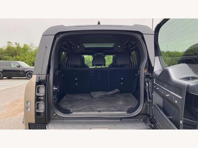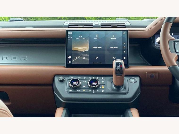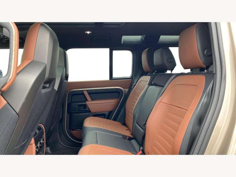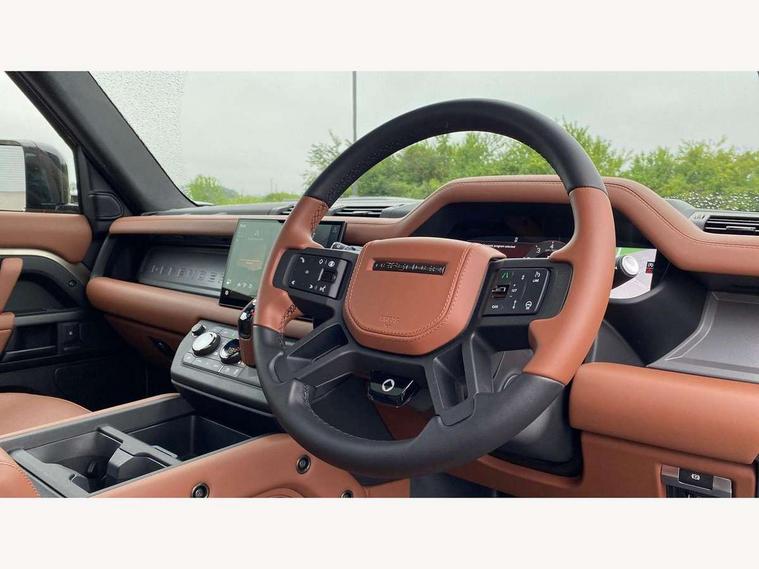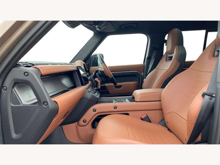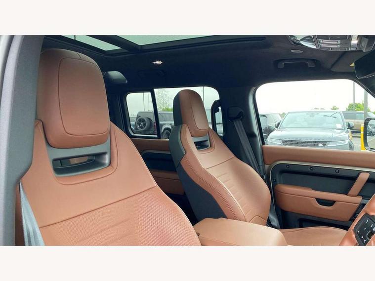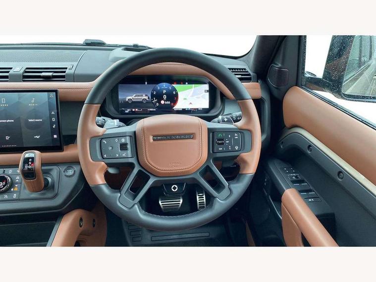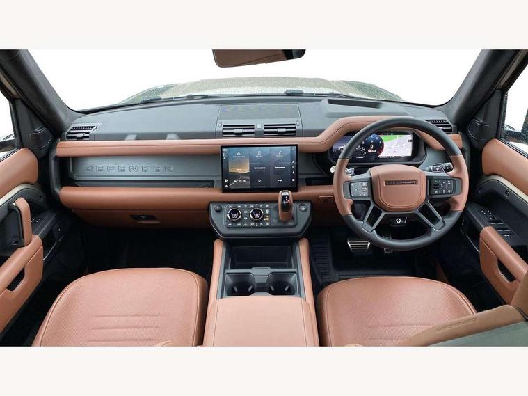 1 x USB-C (power only) & 1 x USB-C (power & data) in Row 1, 2 x USB-C in Row 2, 11.4" touchscreen, 360 degree parking aid, 3D Surround Camera with 360 View, 180 Rear View, Front Traffic Detection, Forward Vehicle Guidance, Tow Hitch Assist and clear sight Ground View, Adaptive cruise control, Android Auto, Apple CarPlay, Blind spot assist, Bluetooth system, Brake pad wear indicator, Clear exit monitor, Configurable programs, Connected navigation pro, Driver condition monitor, Electric power assisted steering (EPAS), Garage door opener (Homelink), Head up Display, Interactive driver display, Lane keep assist, Push button start, Rear collision monitor, Rear traffic monitor, Traffic sign recognition with adaptive speed limiter, Trip computer, Wade Sensing, Wireless device charging, 6D Dynamics, 8 speed automatic transmission, All terrain progress control, All wheel drive system, Electronic active differential with brake torque vectoring, Terrain Response 2 with dynamic program, Twin speed transfer box, DAB Radio (Digital Audio Broadcasting), Meridian 700w surround sound audio system with 15 speakers, Pivi pro connected, Advanced tow assist, Automatic headlight levelling, Automatic headlights, Black contrast roof, Black contrast tail door, ClearSight interior rear view mirror, Darkened LED tail lights, Electric heated/power fold door mirrors with approach lights and auto dimming driver side, Electric windows with one touch open/close and anti-trap, Follow me home lighting, Front fog lights, Graphite front undershield, Headlamp power wash, Heated rear window with timer, Heated washer jets, Heated windscreen, Illuminated metal treadplates with brand name script, LED 3rd brake light, Matrix LED headlights with signature DRL, Octa badge, Phosphor bronze exposed rear recovery eyes, Privacy glass, Puddle lights, Rain sensing windscreen wipers, Rear fog lights, Rear side wing doors, Rear wiper, Satin black exhaust finisher, Side hinged tailgate, Signature graphic (with interior storage), Sliding panoramic roof, Solar attenuating windscreen, Trailer stability assist, 12V power socket in loadspace, 14 way heated and cooled electric memory performance front seats, 3 seat bench in 2nd row, 40:20:40 folding, heated rear seats with centre armrest, Air quality sensor, Alpine lights, Body and soul seat, Bright metal pedals, Cabin Air Purification plus, Configurable cabin lighting, Domestic plug socket, Durable rubber cabin flooring, Durable rubber loadspace flooring, Edge illuminated paddle shifters, Electric cabin pre conditioning, Electric reach + rake adjustable steering column, Electrically adjustable steering column, Footwell lights, Front centre console refrigerator compartment, Front head restraints, Front passenger isofix child seat attachment, Heated steering wheel, Loadspace cover, Loadspace Hook, Multifunction steering wheel, No flat load floor storage, Overhead stowage for sunglasses, Rear headrests, Rear ISOFIX, Rear reading lights, Signature carpet mats, Signature interior upgrade, Single front passenger seat, Soft close tail door, Standard seat configuration, Storage glovebox, Sunvisors with illuminated vanity mirrors, Three-zone Climate Control with Rear Cooling Assist, Twin front cupholders, Non-smoker package, Online pack with data plan - Defender, Satin moonlight exterior pack - Defender, 5 x 3 point seatbelts, ABS, Black brake calipers, Brake hold function, Cornering brake control (CBC), Cross car beam in metallic grey powder coat brushed finish, Customer configurable autolock, Driver and passenger airbags, DSC - Dynamic Stability Control, EBD - Electronic brakeforce distribution, Electric parking brake (EPB), Emergency brake assist, Emergency braking, ESP + traction control, Front airbags with passenger seat occupant detector, HDC - Hill descent control, Hill launch assist, Low traction launch, Power operated child locks, Remote for (e-Call, Optimised assistance call, InControl app, Climate, beep and flash and door), RSC - Roll stability control, Seat belt reminder, TPMS (Tyre pressure monitoring system), Alarm, Immobiliser, Intrusion sensor, Keyless entry, Locking wheel nuts, Secure tracker pro,