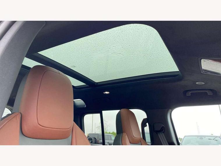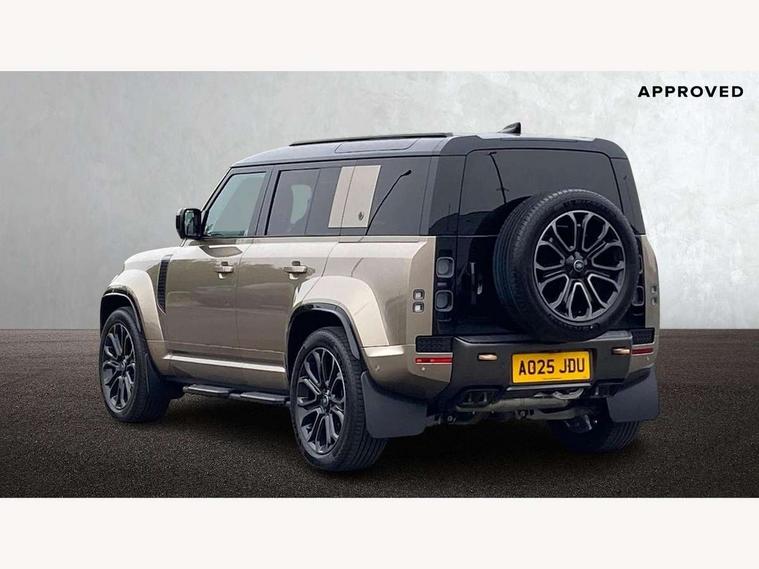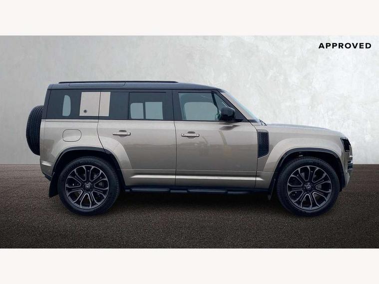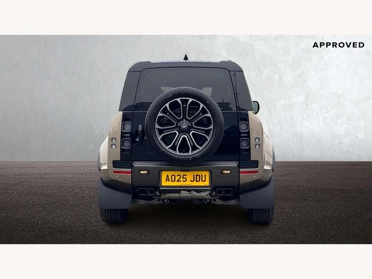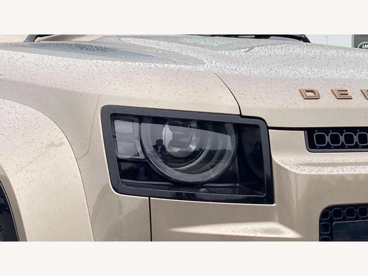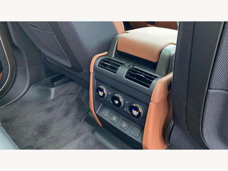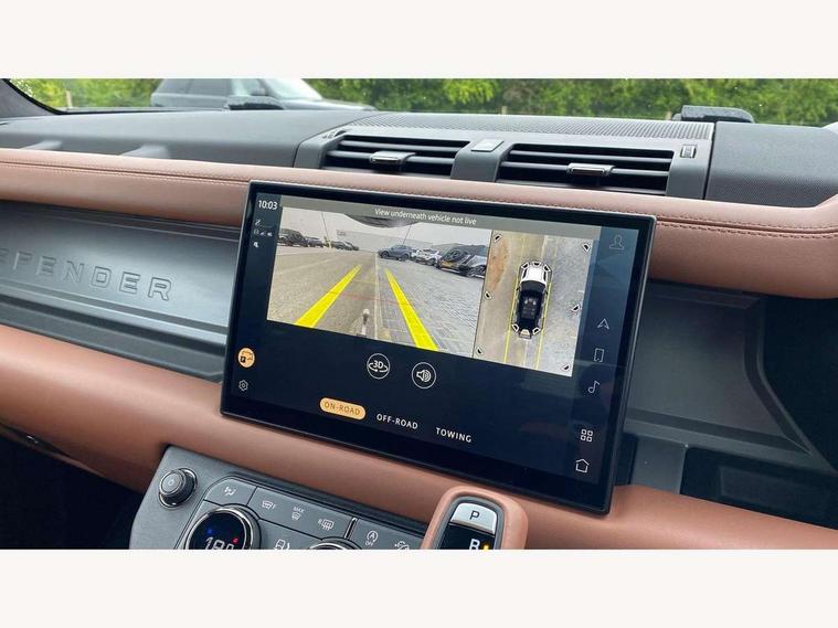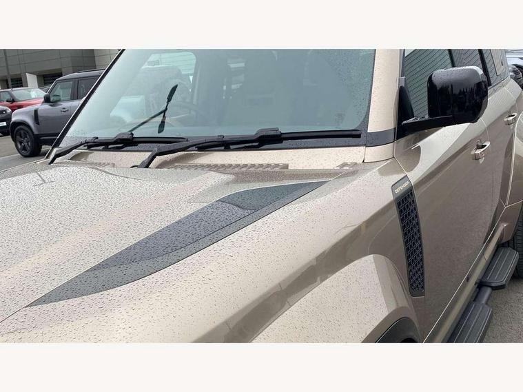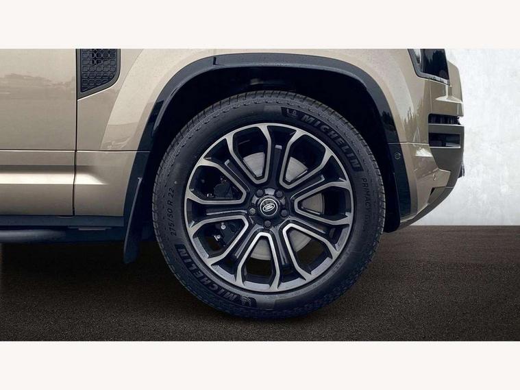 1 x USB-C (power only) & 1 x USB-C (power & data) in Row 1, 2 x USB-C in Row 2, 11.4" touchscreen, 360 degree parking aid, 3D Surround Camera with 360 View, 180 Rear View, Front Traffic Detection, Forward Vehicle Guidance, Tow Hitch Assist and clear sight Ground View, Adaptive cruise control, Android Auto, Apple CarPlay, Blind spot assist, Bluetooth system, Brake pad wear indicator, Clear exit monitor, Configurable programs, Connected navigation pro, Driver condition monitor, Electric power assisted steering (EPAS), Garage door opener (Homelink), Head up Display, Interactive driver display, Lane keep assist, Push button start, Rear collision monitor, Rear traffic monitor, Traffic sign recognition with adaptive speed limiter, Trip computer, Wade Sensing, Wireless device charging, 6D Dynamics, 8 speed automatic transmission, All terrain progress control, All wheel drive system, Electronic active differential with brake torque vectoring, Terrain Response 2 with dynamic program, Twin speed transfer box, DAB Radio (Digital Audio Broadcasting), Meridian 700w surround sound audio system with 15 speakers, Pivi pro connected, Advanced tow assist, Automatic headlight levelling, Automatic headlights, Black contrast roof, Black contrast tail door, ClearSight interior rear view mirror, Darkened LED tail lights, Electric heated/power fold door mirrors with approach lights and auto dimming driver side, Electric windows with one touch open/close and anti-trap, Follow me home lighting, Front fog lights, Graphite front undershield, Headlamp power wash, Heated rear window with timer, Heated washer jets, Heated windscreen, Illuminated metal treadplates with brand name script, LED 3rd brake light, Matrix LED headlights with signature DRL, Octa badge, Phosphor bronze exposed rear recovery eyes, Privacy glass, Puddle lights, Rain sensing windscreen wipers, Rear fog lights, Rear side wing doors, Rear wiper, Satin black exhaust finisher, Side hinged tailgate, Signature graphic (with interior storage), Sliding panoramic roof, Solar attenuating windscreen, Trailer stability assist, 12V power socket in loadspace, 14 way heated and cooled electric memory performance front seats, 3 seat bench in 2nd row, 40:20:40 folding, heated rear seats with centre armrest, Air quality sensor, Alpine lights, Body and soul seat, Bright metal pedals, Cabin Air Purification plus, Configurable cabin lighting, Domestic plug socket, Durable rubber cabin flooring, Durable rubber loadspace flooring, Edge illuminated paddle shifters, Electric cabin pre conditioning, Electric reach + rake adjustable steering column, Electrically adjustable steering column, Footwell lights, Front centre console refrigerator compartment, Front head restraints, Front passenger isofix child seat attachment, Heated steering wheel, Loadspace cover, Loadspace Hook, Multifunction steering wheel, No flat load floor storage, Overhead stowage for sunglasses, Rear headrests, Rear ISOFIX, Rear reading lights, Signature carpet mats, Signature interior upgrade, Single front passenger seat, Soft close tail door, Standard seat configuration, Storage glovebox, Sunvisors with illuminated vanity mirrors, Three-zone Climate Control with Rear Cooling Assist, Twin front cupholders, Non-smoker package, Online pack with data plan - Defender, Satin moonlight exterior pack - Defender, 5 x 3 point seatbelts, ABS, Black brake calipers, Brake hold function, Cornering brake control (CBC), Cross car beam in metallic grey powder coat brushed finish, Customer configurable autolock, Driver and passenger airbags, DSC - Dynamic Stability Control, EBD - Electronic brakeforce distribution, Electric parking brake (EPB), Emergency brake assist, Emergency braking, ESP + traction control, Front airbags with passenger seat occupant detector, HDC - Hill descent control, Hill launch assist, Low traction launch, Power operated child locks, Remote for (e-Call, Optimised assistance call, InControl app, Climate, beep and flash and door), RSC - Roll stability control, Seat belt reminder, TPMS (Tyre pressure monitoring system), Alarm, Immobiliser, Intrusion sensor, Keyless entry, Locking wheel nuts, Secure tracker pro,
