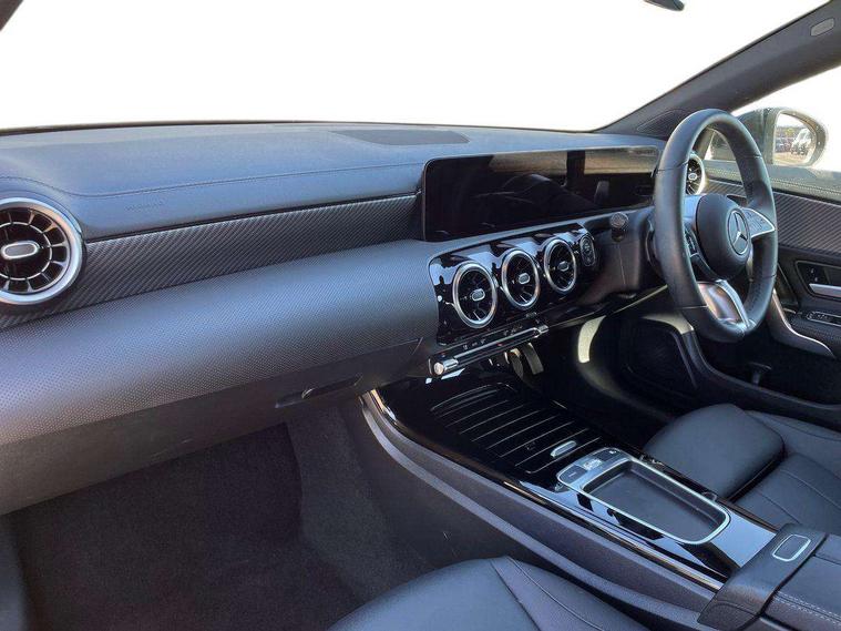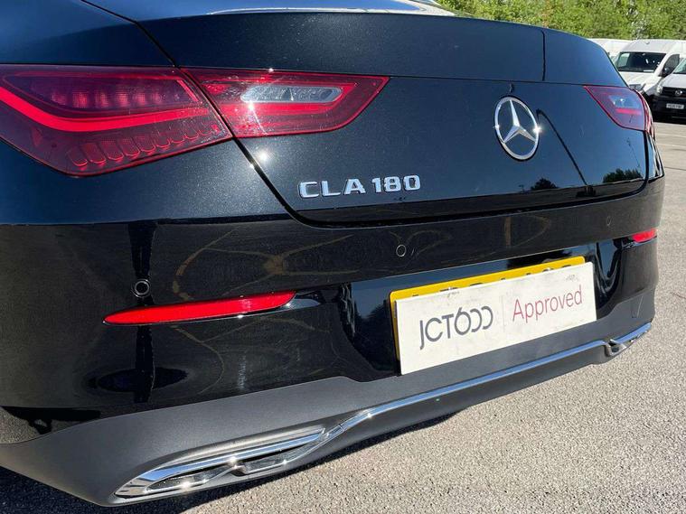 10.25 inch Instrument display with digital cockpit, 10.25 inch touchscreen central media display, Active lane keeping assist, Attention assist - Monitors steering behaviour and long journey fatigue, Bluetooth connection, Car wash mode, Cruise control with limiter, Direct steer system, DYNAMIC SELECT with a choice of driving modes (ECO, Comfort, Sport and Individual), ECO start/stop function, Fluid level warning indicator for fuel, oil, coolant and washer fluid, Hard-disk navigation, Hey Mercedes Voice activation, Lamp failure indicator, Mercedes me connect including emergency call system, accident recovery, breakdown and maintenance management, Mercedes me remote services, Outside temperature gauge, Owners manual in English, Pre-installation of private car share, Radio aerial integrated into front and rear windshields, Service indicator (ASSYST), Smartphone integration with Apple CarPlay and Android auto, Speed limit assist, Trip computer in multifunction display with current consumption indicator, Comfort suspension, Rear axle multi-link, DAB digital radio tuner, MBUX multimedia system, Mercedes Benz sound system (100 W) with 6 speakers, Pre installation for Mercedes Benz Link, Adaptive brake lights, Body colour door handles (Chrome insert with Keyless entry), Chrome beltline strips, Electric windows, Electrically adjustable and heated door mirrors with integrated LED indicators, Exhaust system with 2 Visible tailpipe trim elements and rear apron with trim in chrome, Headlamp assist automatic headlamp activation, Heated glass rear windscreen + timer control, High level LED third brake light, Interior mirror with black reading lamps and frameless, LED high performance headlamps with integrated LED daytime running lights and adaptive highbeam assist, LED tail lamp, Privacy glass with dark tinting on rear side windows and rear window, Progressive body-styling - Front apron with trim strip in chrome, visible tailpipe trim elements and rear apron with trim strip in chrome, Radiator grille with Mercedes-Benz pattern in high-gloss black and central Mercedes star, single louvre in matt grey with chrome inserts, Rain sensing windscreen wipers with two sensitivity settings, Rear boot, Rear fog lamp, Rear side wing doors, Variable front intermittent wipers, Window line trim strip in chrome, 3 seat bench in 2nd row, 3 spoke ARTICO man made leather multi function sports steering wheel with black grained gearshift paddles, oeration via touch control panels, 4 way lumbar support, 40:20:40 split folding rear seat backrests, Air conditioning - One zone thermatic automatic climate control with automatically controlled air distribution, Air vents with surround in silver chrome, Artico man-made leather upholstery, Automatic child seat recognition sensor, Black roof lining, Brushed stainless steel sports pedals with rubber studs, Comfort seats, Fluorescent jacket, Front centre armrest with stowage, Front head restraints, Heated front seats, Luggage net on driver/front passenger seat backrest, Manually height and reach adjustable steering column, Rear head restraints, Single front passenger seat, Stowage compartment in centre console with retractable cover, Sunvisors with illuminated vanity mirrors, Twin front cupholders, Two outer rear seat isofix and top tether child seat fixing points, Velour floor mats, Light and sight pack - CLA, Mirror pack - CLA, Parking pack with reversing camera - CLA, Seat comfort pack - CLA, USB package plus - CLA, Active bonnet pedestrain safety measure which detects an impact and raises bonnet by 65mm, Active brake assist includes forward collision warning system with autonomous braking, Adaptive brake assist with hold function and hill start assist, Anti lock braking system (ABS) with brake assist, Black seat belts, Bonnet with power domes, Brake pad wear warning indicator, Childproof locks manually operated for rear doors and electrically operated for rear power windows, Crash responsive emergency lighting, Driver and front passenger head and sidebags, Driver and front passenger windowbags, Drivers knee airbag, Dual stage driver and front passenger airbags, Electric parking brake, Electronic stability programme with acceleration skid control, ESP curve dynamic assist, Front and rear seatbelt reminder, Front passenger seat occupancy sensor, Three point rear seat belts, Tyre pressure monitoring system, Warning triangle and first aid kit, Alarm system with immobiliser and interior protection -Thatcham category 1, Guard 360 deg vehicle protection - tow away protection with visual, acoustic warning, interior monitoring, preinstallation for parking damage, Remote central locking and crash sensor with emergency opening function, Dark carbon fibre look trim, 18" multi-spoke himalayas grey painted light alloy wheels with high sheen rim finish, Summer tyres, Tirefit tyre sealant kit,