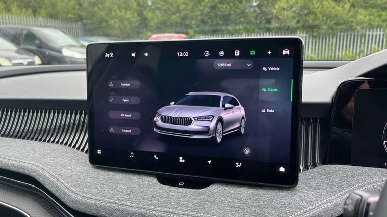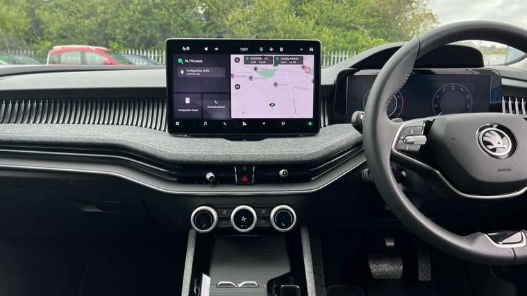 13" touchscreen display with satellite navigation, 4x USB-C ports (2x in front centre console and 2x in rear) (45W), Adaptive cruise control with speed assist, lane assist plus and traffic tram assist, Blind spot detection with door exit warning, Bluetooth system, CareConnect and Emergency Call, ChatGPT functionality, Driver fatigue sensor, Front assist with extended predictive pedestrian protection, Front cross traffic assist, PAS, Quick start all heating software functionality, Rear view camera with washer, Stop/start engine system, Traffic sign recognition, Turn assist with evasive assistance, Virtual Cockpit - 10.25" digital display, Voice control system, Wireless charging for one smartphone (15W) with cooling function, Wireless smartlink apple carplay, SmartLink+ android auto, 8 Speakers, DAB Digital radio, Display cleaner, FM radio connection, Web radio connection, Acoustic side windows and interior noise suppression, Backdrop lighting, Body colour door handles, Body coloured door mirrors, Chrome roof rails, Chrome window surround, Electrically adjustable, heated, folding and driver side auto-dimming door mirrors with integrated indicators and logo projection, Frameless auto-dimming rear view mirror with USB-C, Front windscreen with heat-insulating glass, Ice scraper in fuel tank cap, LED 3rd brake light, Light assist with High beam control, Light assistant (coming/leaving home/tunnel light), Privacy glass, Rear fog light (x1), Rear roof spoiler, Rear side wing doors, Rear windscreen wiper, Tow bar preparation, Unique dark chrome design logo on alloy wheels, Unique dark chrome grille surround with dark chrome rib elements, Windscreen wipers with rain sensor, 12V socket 1x centre console 1x boot, 12V socket and 2x cargo elements in boot, 2 spoke multifunction steering wheel with DSG paddles, 3 seat bench in 2nd row, 4x foldable bag hooks in boot, 60:40 Split folding rear seats, Bottle holders in the front doors 1.5 litre bottle and rear 1.5 litre bottle, Cup holder in front with easy open mat, Front and rear footwell illumination, Front armrest with storage box, Front comfort seats, Heated front seats, Height adjustable driver and front passenger seats with 2-way electric tilt, 4-way pneumatic lumbar support, and extendable thigh support, Height adjustable front and rear head restraints, Height adjustable front passenger seat, Illuminated glovebox, Interior lights with control switches, Isofix child seat fittings in outer rear and front passenger seats, LED front and rear reading lights, Massage function for front seats, Single front passenger seat, Skoda lettering on steering wheel, Storage pockets on back of front seats, Sun visors with illuminated vanity mirrors, Ticket holder on A Pillar, Tri zone climate control, Umbrella in driver's door, 3 rear seatbelts, 8 Airbags - Front driver and passenger, front side driver and passenger, centre, curtain front and rear, drivers knee, Crew protect assist, Driver and passenger seatbelts with warning light, Electronic parking brake, ESC including ABS, EBV, MSR, ASR, EDS, HBA, DSR, RBS, CBC, multi-collision brake (MKB) and Auto hold, Hill hold assist, Power operated child lock in rear doors, Alarm with interior monitoring tilt sensor and back up horn, Backrest remote release from trunk, Electronic engine immobiliser, Keyless start/stop, Remote central locking with SAFE system, Third key, Decorative front door sills,