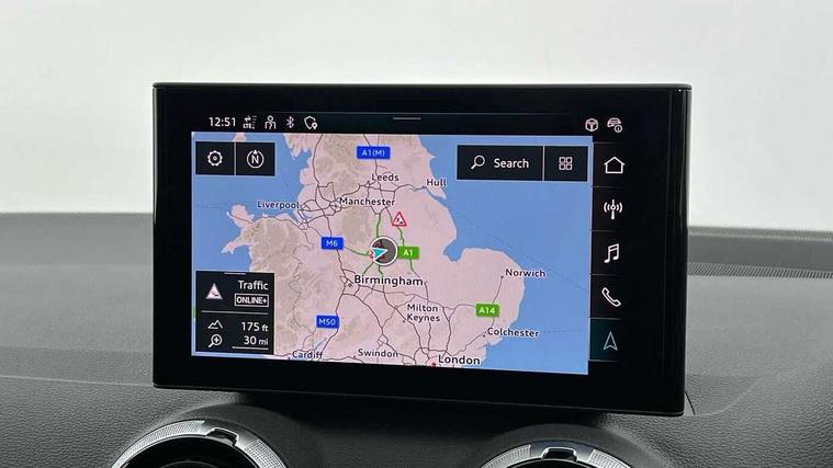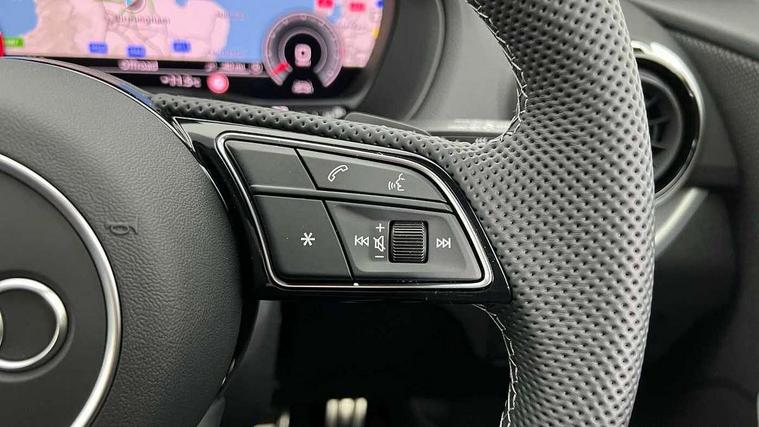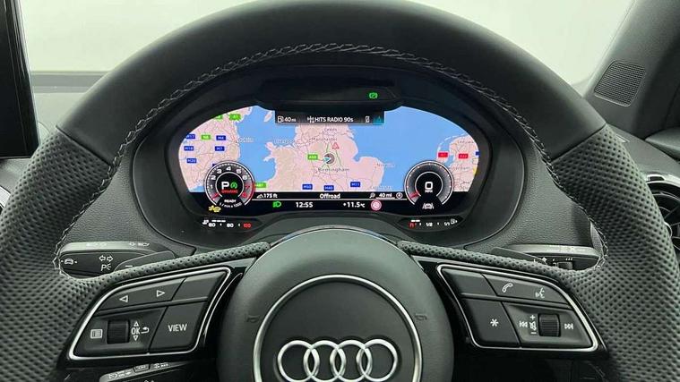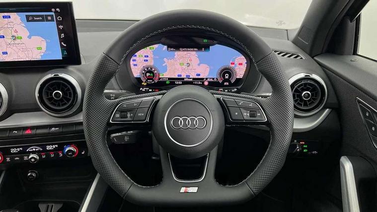 3D map display, Audi connect navigation and infotainment includes innovative services, Audi connect remote and control connects your vehicle to your smartphone, Audi drive select: S tronic - power steering assistance + engine + gearshift (modes: comfort, auto, dynamic, efficiency, individual), Audi smartphone interface - Apple carplay/Android Auto, USB connect, 2xSDXC card readers, voice control for navi, telephone, music and 3rd party apps, Audi virtual cockpit, Automatic start/stop system with recuperation, Bluetooth interface includes bluetooth audio streaming, Camera based traffic sign recognition, Cruise control, Distraction and Fatigue warning, E-call, Jukebox hard drive memory for music (10GB), Lane departure warning, MMI navigation plus with 8.8" touchscreen, Natural voice recognition, Power operated tailgate, Progressive steering, Rear parking sensors, Sport suspension, 6 passive loudspeakers, DAB Digital radio, USB type C port, Audi beam, Auto dimming rear view mirror, Black window trims, Bumper in full body colour paint finish, Electrically adjustable, folding, auto dimming and heated door mirrors with integrated LED side indicators, Front windscreen with grey tinted sunband, LED daytime running lights, LED headlights with dipped beam, high beam, position lights, indicators, LED rear lights, LED third brake light, Privacy glass - dark tinted rear and rear side windows from B-pillar backwards, Rear side wing doors, Rear wiper, Variable front intermittent wipers, Wheel arch trims in manhattan grey, 12v socket in front, 3 seat bench in 2nd row, 3 spoke flat bottomed multi-function leather sport steering wheel with gear shift paddles, 4-way electric lumbar support for front seats including manual seat height adjustment for both front seats, 60/40 split folding rear seat bench, Black carpets, Black cloth headlining, Front and rear head restraints, Front centre armrest, Front sport seats, Front/rear floor mats, Height/reach adjust steering wheel, Illuminated door sill trims with S logo, ISOFIX child seat mounting in front passenger and rear outer seats, Manual air conditioning, Single front passenger seat, Stainless steel pedals, Black styling pack - Q2, 3x3 point rear seatbelts, 6 airbags - Front, curtain and front side airbags, Electromechanical parking brake, Electronic stabilisation control including ABS, ASR and EDL, Front passenger airbag deactivation, Hill hold assist, Pre-sense front with pedestrian recognition, Seatbelt monitoring, Tyre pressure warning light with visual and acoustic warning, Warning triangle and first aid kit, Anti theft alarm, Anti theft wheel bolts, Electronically operated child locks, Remote central door locking, Aluminium interior element, Black dashboard, Gloss black centre console, Matt brushed aluminium trim inlays, Tool kit,