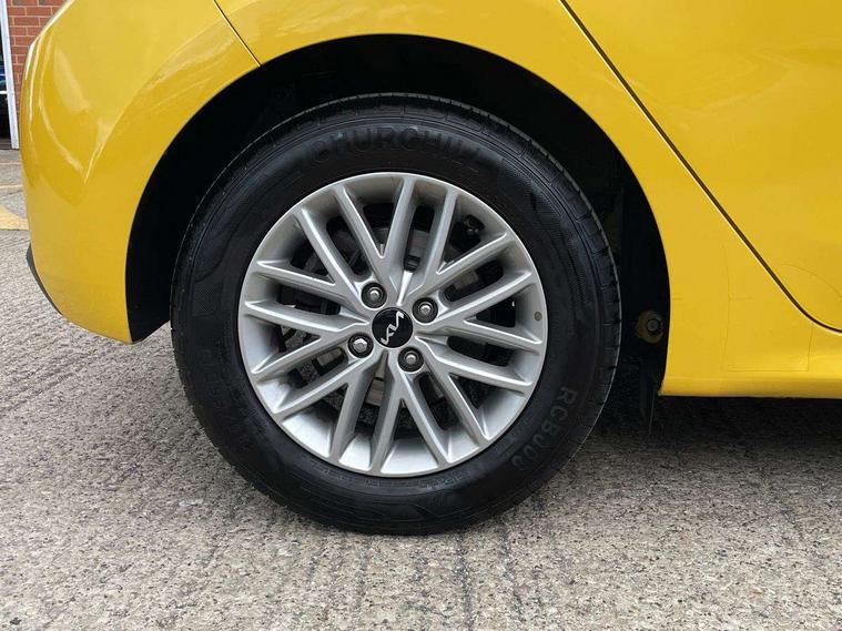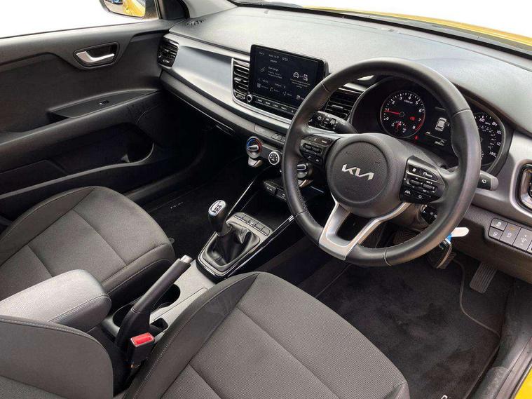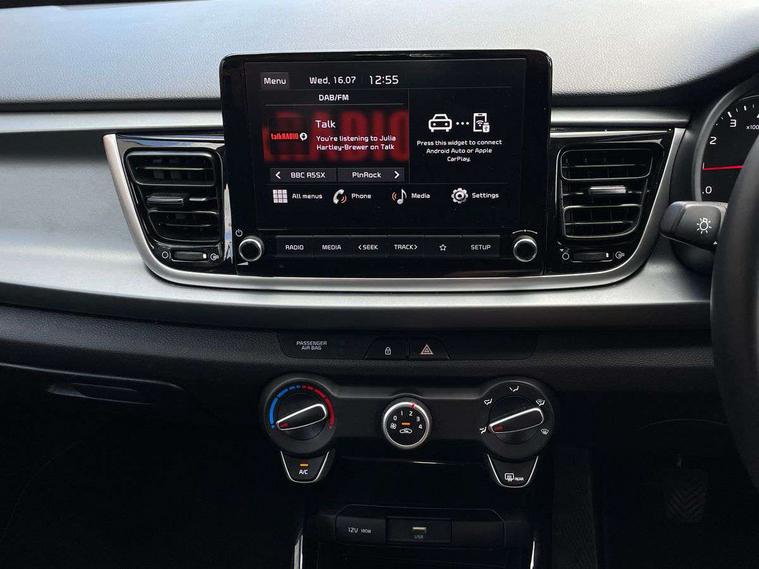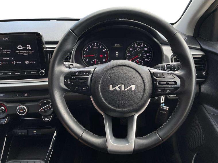 8" touch screen, Apple car play/Android Auto, Cruise control + speed limiter, Digital clock, Electric power steering, Emergency call service, Emergency stop signalling system, Gear selection indicator, Manual speed limit assist (MLSA), Outside temperature display, Rear parking sensor, Reversing camera system with dynamic guidelines (Integrated into centre fascia screen), Tachometer, Tailgate, Trip computer, Voice control system, Windscreen washer level indicator, Intelligent Stop and Go, 6 speakers, Bluetooth connectivity including audio streaming, DAB Digital radio, Front USB port for media connection, Rear USB port, Steering wheel mounted audio controls, 3rd brake light, Aeroblade-type front wipers, Automatic lighting control, Bi-function projection headlights, Black grille with chrome surround, Body colour bumpers, Body colour door handles, Body coloured door mirrors, Cornering light, Electric adjustable/heated/folding door mirrors, Front electric windows with driver's auto up/down function, Headlamp levelling, Heated rear window, LED daytime running lights, LED indicators in door mirrors, Projection front fog lights, Rain sensor, Rear electric windows, Rear fog lamp, Rear side wing doors, Rear wash/wipe, Speed variable front wipers, Tinted glass, Welcome home function, 3 passenger assist grips, 3 seat bench in 2nd row, 60/40 split/folding 2nd row of seats, Air conditioning, All round height adjustable headrests, Centre Console with Storage Box and Sliding Armrest, Dash illumination dimmer switch, Driver's seat height adjuster, Driver/passenger sunvisors and illuminated vanity mirrors, Front and rear door map pockets with bottle holder, Front passenger seatback pockets, Front USB charger port and 12V socket, ISOFIX top tethers and lower anchor points, Leather trimmed gearshift, Leather trimmed steering wheel, Load area light, Luggage area parcel shelf, Luggage hooks, Overhead console with sunglasses holder, Premium cloth upholstery, Silver interior door handles, Single front passenger seat, Tilt/telescopic adjustable steering wheel, Advanced driving assistance pack - Rio, 3-point front seatbelts, 3x3 point rear seatbelts, ABS with Electronic Brakeforce Distribution (EBD) and Brake Assist System (BAS), Automatic unlocking of doors in case of impact, Cornering brake control (CBC) and Straight line stability (SLS), Electronic stability control (ESC) and vehicle stability management (VSM), Front seatbelt pretensioners + load limiters, Height adjustable front seatbelt anchors, Hill start assist control (HAC), Passenger airbag deactivate switch, Rear child proof door locks, Seatbelt warning, Traction control, Twin curtain airbags, Twin front airbags, Twin front side airbags, Tyre pressure monitoring system, Anti theft alarm, Deadlocking system, Engine immobiliser, Locking wheel nuts, Remote central door and tailgate locking with fold-away key, Speed sensitive auto door locking, Visible vehicle identification number, Silver fascia trim, 15" Alloy wheels, Tyre mobility system,