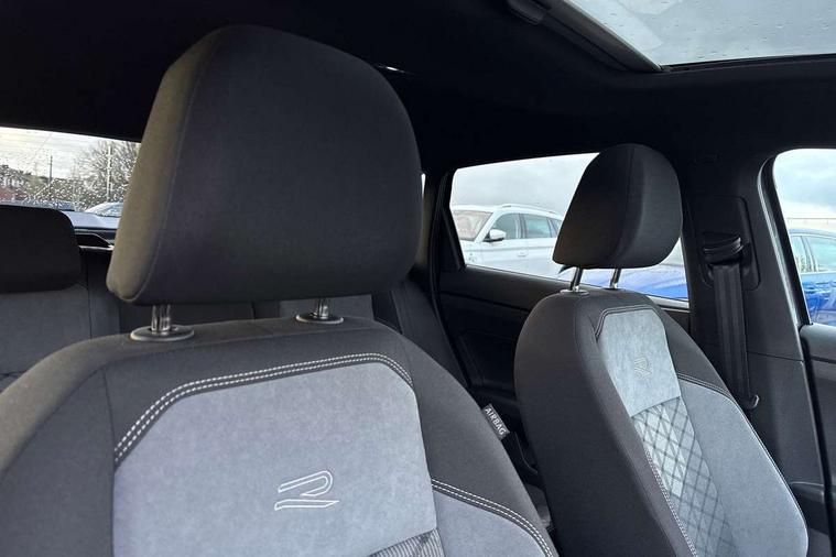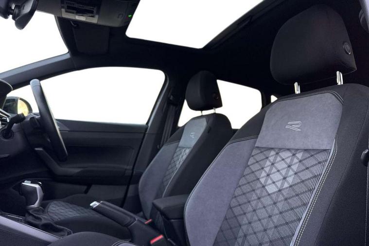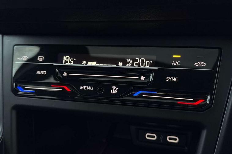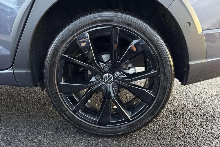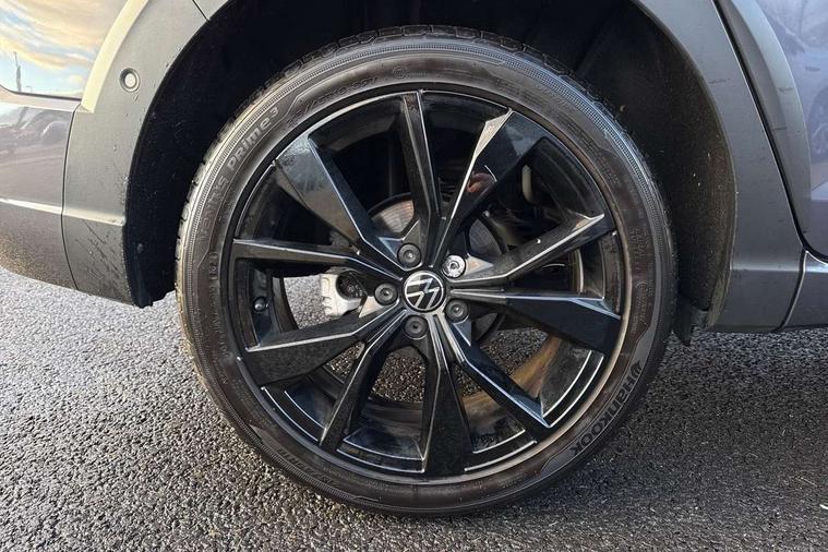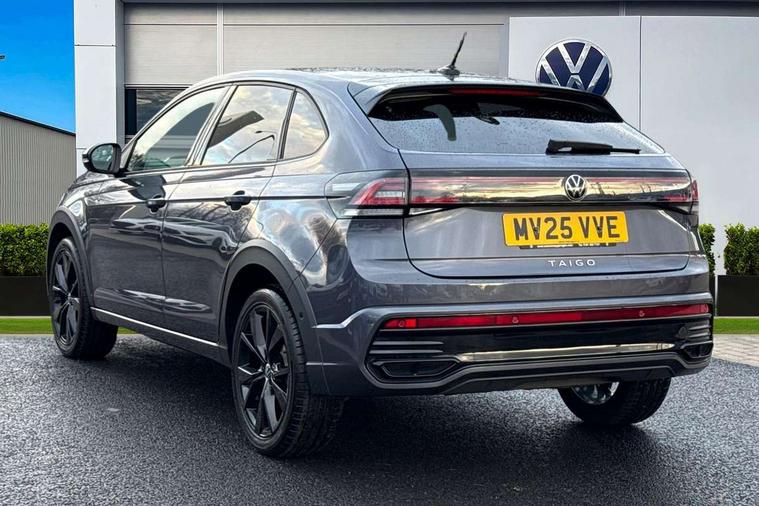 Adaptive cruise control, Advanced driver attention and drowsiness monitor, App-Connect including App-Connect Wireless, Digital cockpit pro - 10.25" high resolution TFT dash display screen with customizable menus and information, Driving profile selection, Dynamic road sign display, e-Call (emergency call), Power Steering, Travel assist including emergency assist, Washer fluid level indicator, Wireless Charging including Bluetooth, Start-stop system with battery regeneration (recuperation - energy recovery during braking), XDS electronic differential lock for improved traction and handling, Digital radio reception (DAB+), Diversity antenna for FM reception, WeConnect plus, Ambient lighting with logo projection, Aspherical driver's exterior mirror, Auto headlights, Body coloured bumpers, Bumpers in R-Line style, Electric windows, External USB type C socket and charging sockets, Front scuff plates with R-Line logo, LED rear combination lamp, LED third brake light, Left convex exterior mirror, Power folding adjustable/heated exterior mirrors and front passenger exterior mirror lowering function, Rear fog light on one side, reversing light on both sides, Rear side wing doors, Rear wash/wipe with intermittent wipe setting, 12V socket in centre console, 2 front reading lights, 3 rear head restraints, 3 seat bench in 2nd row, Air care climatronic air conditoning system with active combination filter and 2-zone temperature control, Black carpets, Black roof lining, Child seat anchor for child seat system i-Size, 2x top tether and child seat anchor in front on front passenger side, Chrome bezel for instrument cluster, vents, door handles + gear shift, Driver and front passenger seat height adjustment, Front + rear carpet mats, Front centre armrest, Front footwell illumination, Front sports comfort seats, Height and reach adjustable steering wheel, Interior ambient lighting and surround lighting, Karoso artvelours cloth upholstery, Leather trimmed gear knob, Leather wrapped multifunction steering wheel, Luggage compartment floor, Luggage compartment light, Lumbar support for driver's and front passengers seat, Seat covers in grey + titanium black, Single front passenger seat, Split folding backrest with centre armrest and unsplit rear seat bench, Stainless steel pedals, Storage compartment under front seats, Sun visors with illuminated vanity mirrors, Chrome Package - Taigo, Drivers assistance pack - Taigo, Light and Sight pack including High beam assist - Taigo, 2 x 3-point seatbelts/outer rear seats with ECE label, 3-point seat belts in front with pretensioner and height adjustment, 3-point seatbelt for centre rear seat, Adaptive driver and front passenger airbags with passenger airbag deactivation function, Driver and front passenger safety-optimised head restraints, Electronic stability control, Extended and predictive pedestrian/ cyclist protection, Front and rear disc brakes, Front curtain and side airbags with center airbag, Hill start assist, Manual rear child locks, Single tone horn, Tyre pressure loss indicator, Anti-theft alarm system with interior monitoring, backup horn, and towing protection, Grey anodised matte decorative inserts in dash and front door panels, Low rolling resistance tyres,