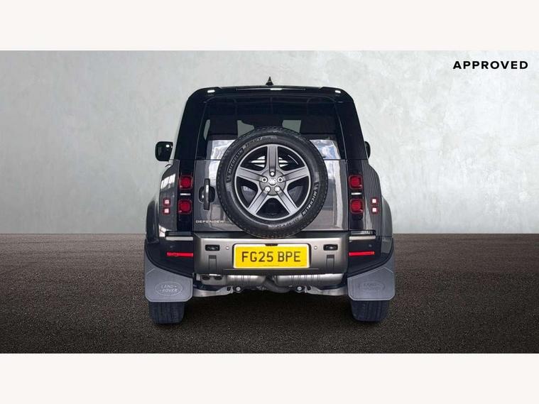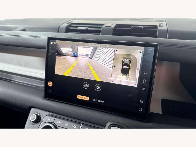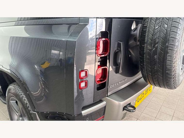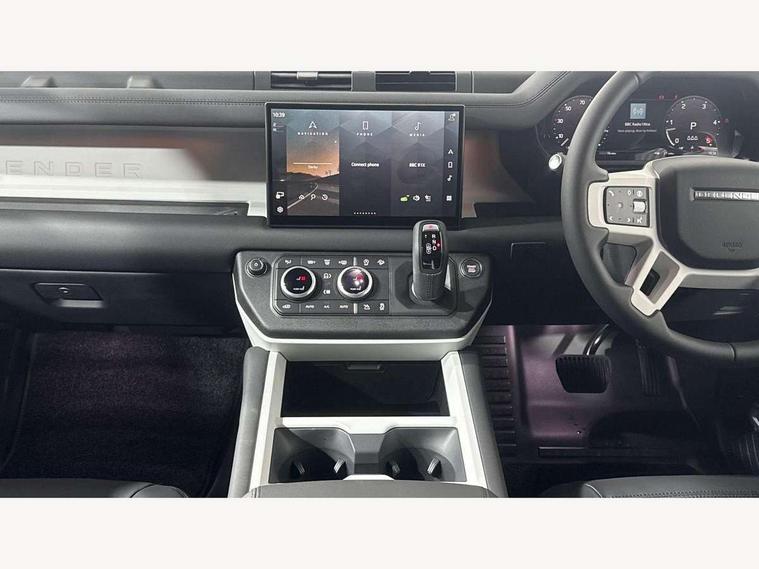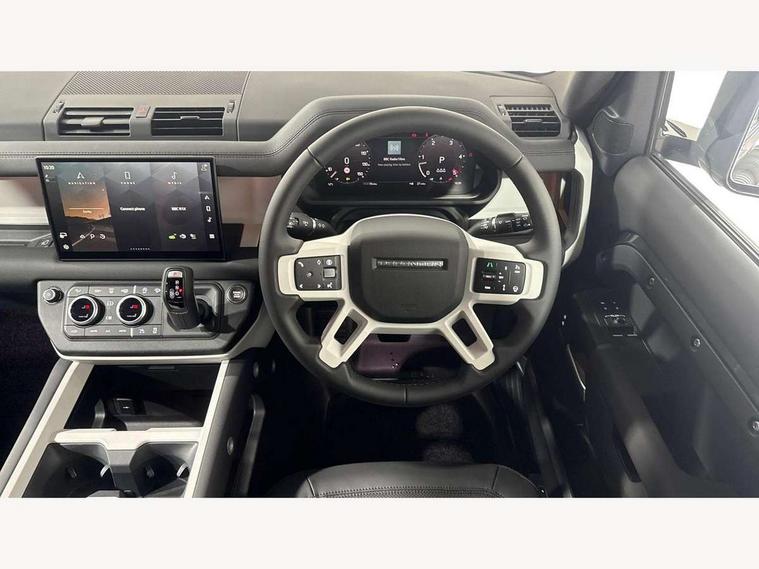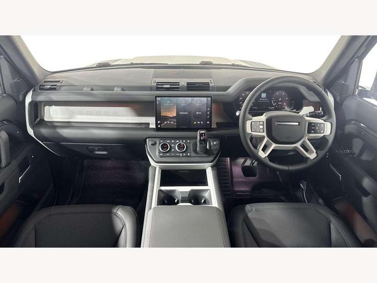 1 x USB-C (power only) & 1 x USB-C (power & data) in Row 1, 2 x USB-C in Row 2, 11.4" touchscreen, 360 degree parking aid, 3D Surround Camera with 360 View, 180 Rear View, Front Traffic Detection, Forward Vehicle Guidance, Tow Hitch Assist and clear sight Ground View, Adaptive cruise control, Android Auto, Apple CarPlay, Blind spot assist, Bluetooth system, Brake pad wear indicator, Clear exit monitor, Connected navigation pro, Driver condition monitor, Electric power assisted steering (EPAS), Interactive driver display, Lane keep assist, Push button start, Rear collision monitor, Rear traffic monitor, Traffic sign recognition with adaptive speed limiter, Trip computer, Wireless device charging, 8 speed automatic transmission, All wheel drive system, Twin speed transfer box, DAB Radio (Digital Audio Broadcasting), Meridian 400w sound audio system with 11 speakers and subwoofer, Pivi pro connected, Automatic headlight levelling, Automatic headlights, Black exposed rear recovery eyes, Body coloured bonnet, Centre high mounted stop light, Electric heated/power fold door mirrors with approach lights and auto dimming driver side, Electric windows with one touch open/close and anti-trap, Follow me home lighting, Heated rear window with timer, Heated windscreen, Illuminated metal treadplates with brand name script, LED tail lights, Panoramic rear side glass, Privacy glass, Puddle lights, Rain sensing windscreen wipers, Rear fog lights, Rear wiper, Side hinged tailgate, Standard tail door, Trailer stability assist, X-Dynamic badge, 12V power socket in loadspace, 3 seat bench in 2nd row, Alpine lights, Configurable cabin lighting, Durable rubber cabin flooring, Durable rubber loadspace flooring, Flat load space floor tray, Footwell lights, Front head restraints, Loadspace cover, Loadspace Hook, Multifunction steering wheel, Overhead stowage for sunglasses, Rear headrests, Rear ISOFIX, Rear reading lights, Single front passenger seat, Standard seat configuration, Storage glovebox, Sunvisors with illuminated vanity mirrors, Twin front cupholders, Non-smoker package, Online pack with data plan - Defender, 5 x 3 point seatbelts, ABS, Brake hold function, Cornering brake control (CBC), Customer configurable autolock, Driver and passenger airbags, DSC - Dynamic Stability Control, EBD - Electronic brakeforce distribution, Electric parking brake (EPB), Emergency brake assist, Emergency braking, ESP + traction control, Front airbags with passenger seat occupant detector, HDC - Hill descent control, Hill launch assist, Low traction launch, Remote for (e-Call, Optimised assistance call, InControl app, Climate, beep and flash and door), RSC - Roll stability control, Seat belt reminder, TPMS (Tyre pressure monitoring system), Alarm, Immobiliser, Intrusion sensor, Keyless entry, Locking wheel nuts, Secure tracker pro,