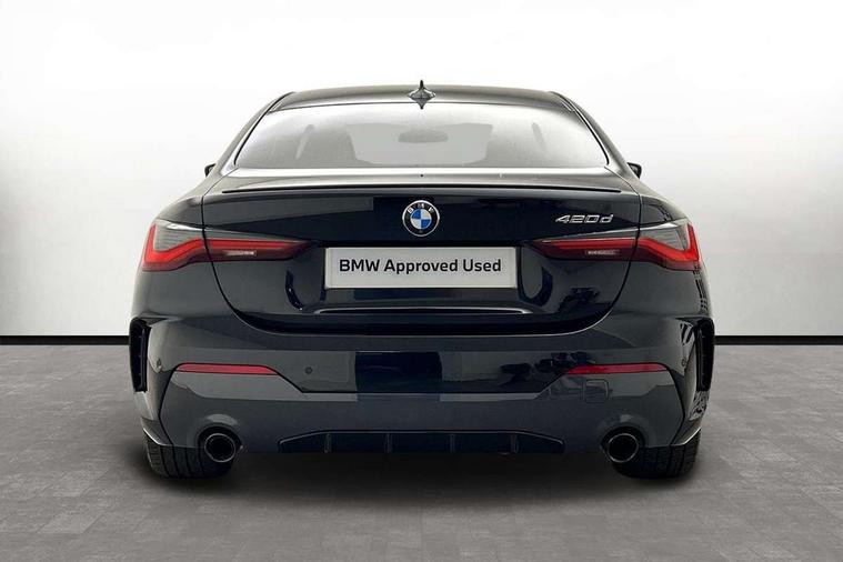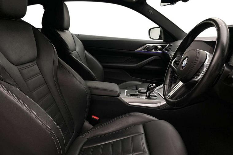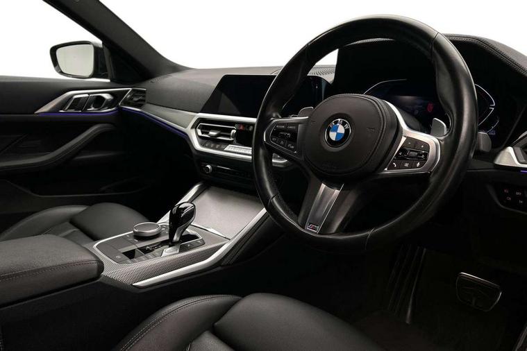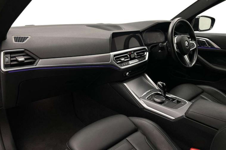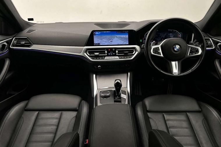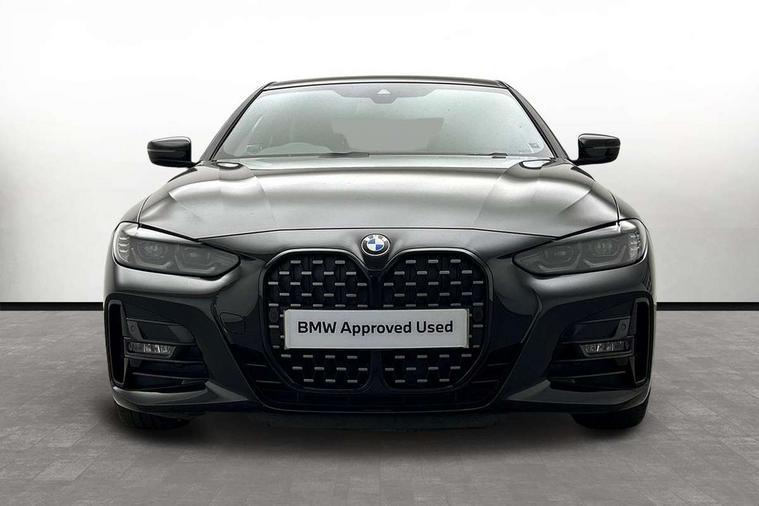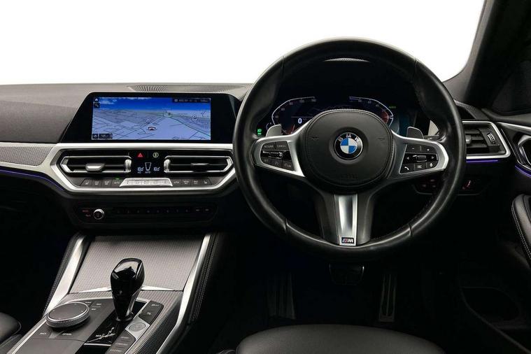 Active guard plus, Attentiveness assist, Auto start-stop, BMW ConnectedDrive online services, BMW iDrive controller on centre console, BMW Live Cockpit Professional Nav with 12.3" instrument display + 10.25" display, Intelligent Voice Assist, BMW OS 7, HDD, 2USB, 4G LTE connect, BMW service history, BMW Teleservices, Brake pad wear indicator in front and rear, Check Control warning system for monitoring of lights and door/luggage compartment open warning, Condition based service, Cruise control with brake assist, Electric power steering with Servotronic steering optimised at all speed ranges, Gearshift time display in manual mode, Instrument cluster with speedometer with mph readout, tachometer, fuel gauge and oil temperature gauge, Integrated owners handbook, Oil sensor for level and grade, warning by check control system, On board computer - average speed, fuel consumption, outside temp display with acoustic warning, clock/date, service interval, odometer/trip meter, Optimum shift indicator, Touch control functionality for BMW Live Cockpit Professional Nav, Variable sport steering, 48V Mild hybrid technology, 8 speed automatic steptronic transmission with gearshift paddles, Balanced 50/50 weight distribution, Diesel particulate filter, Drive performance control - ECO PRO, comfort and sport modes, Incorrect fuelling protection, Low centre of gravity, M sport suspension, Stroke dependent dampers, DAB tuner, Electronic service booklet, 3rd brake light, Acoustic glazing, Automatic headlight beam throw control with load dependent regulating reaction, dynamic compensation of braking dive and acceleration squat, Automatic windscreen wipers and automatic headlight, Automatically dimming electrochromatic rear view mirror, BMW emblem on engine compartment lid and tailgate, BMW kidney grille with mesh grille front side of the nuggets in matt aluminium and frame in chrome high gloss, Body colour fuel filler flap, Body colour M sport rear spoiler, Body colour roof fin, Brushed aluminium inserts in the front door sill finishers with BMW designation, Dynamic brake lights, Electric windows - front and rear, with open/close fingertip control, anti trap facility and comfort closing function all round, Exhaust tailpipe - split left and right, Exterior mirrors - electrically folding with anti-dazzle, Fading support, Follow me home headlights, Front and rear bumper system, Front apron plastic in body colour, Green tinted heat protection glazing, High gloss shadow line exterior trim, Illuminated bow type door handles in body colour drivers side with door lock, Interior rear view electrochromatic mirror with automatic anti dazzle function, LED daytime running lights, LED front fog lights, Licence plate panel integrated into front bumper and tailgate, Lightweight engineering, M designation on front side panels, left and right, Model designation on right side of tailgate, One piece front bumper cover including towing eye cover in body colour, Preparation for high beam assistant, Rear boot, Reversing light, Side frame decorative moulding black matt, Two part LED tailights in L-shape with components in smoked glass, brake light, LED turn indicator and rear fog light, Visible VIN plate, Welcome lights in interior and door handle area, Widened track and increased camber values for max transverse dynamics, agility and steering precision, Window recess cover black high gloss, Windscreen wipers with integrated heated washing jets, 12V power socket in front centre console, 2 front cupholder in centre console with clamping elements and matt black inlay, 2 Rear seat headrests, 2 seat bench in second row, 3 spoke M sport leather multifunction steering wheel, 3 zone automatic air conditioning, 4 pieces lashing eyelets in luggage compartment, 40:20:40 split folding rear seat and rear centre armrest with two cupholders, Ambient lighting with welcome carpet light, Anthracite headlining, Armrest integrated in front and rear door trim + front centre console armrest, Driver seat backrest width adjustment, Four grab handles integrated in roof lining, Front and rear door pockets, Front and rear footwell lights, Front and rear reading lights, Front headrests, Front passenger seat, Front sport seats, Heated driver and front passenger seats, Height adjustable mechanically and infinitely variable steering column, Illuminated armrest storage compartment, Illuminated glove compartment with separate small compartment, Luggage compartment light, Make-up mirror lights, Storage compartment in rear centre console, Sunvisors with vanity mirrors and ticket pocket, Toolkit located in luggage compartment, USB type - C cable charging function in the rear centre console, Velour front floor mats, Vernasca leather upholstery, Connected professional package - 4 Series, M sport exterior styling pack - 4 Series, Park assist pack - 4 Series, 2 x 3-point rear seatbelts, Battery safety cut-off, BMW emergency call, Brake energy regeneration, Braking pre-tensioning, Child seat ISOFIX attachment for the two outer rear seats, Coasting in idle in ECO PRO mode, Cornering brake control (CBC), Crash sensor activating of airbags, Unlocking doors, hazard warning lights, fuel cut off, interior lighting+activation of safety battery terminal clamp, Driver and front passenger side airbags, integrated in the door side seat backrest bolsters for all seat variants, Driver/Front Passenger airbags, Dry braking, Dynamic brake control, Dynamic stability control + (DSC+) - Anti-lock Braking System (ABS) with brake assist and cornering brake control + Automatic Stability Control (ASC), Dynamic Traction Control - DTC, Electric parking brake including automatic hold function and automatic release of the parking brake when driving off, Electronic differential lock control (EDLC), Front and rear ventilated brake disc, Front passenger manual airbag deactivation, Head airbags for all 4 outer seats, Hill start assistant, Seat belt security check for driver and front passenger, Seat b