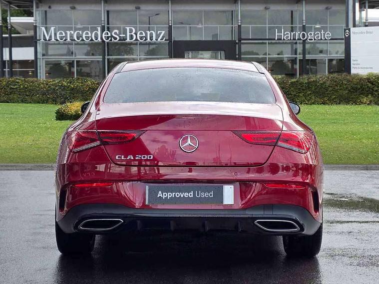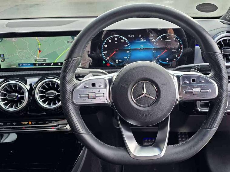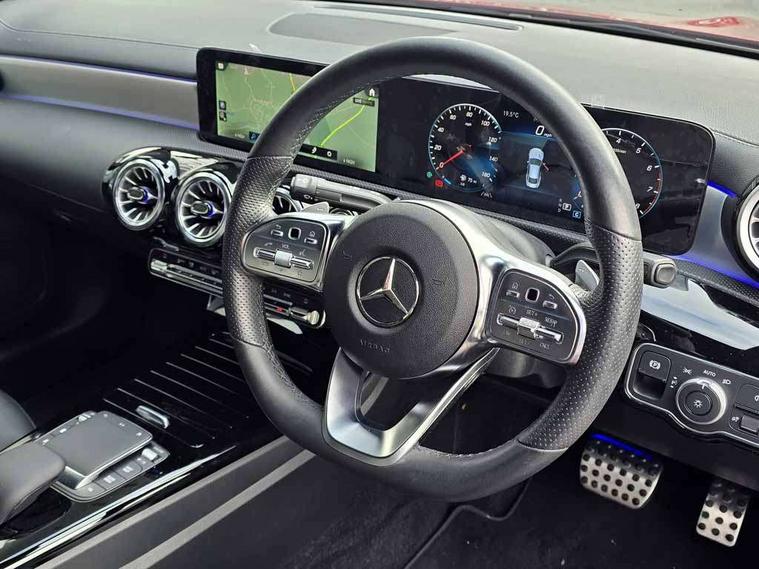 10.25 inch Instrument display with digital cockpit, 10.25 inch touchscreen central media display, Active lane keeping assist, Attention assist - Monitors steering behaviour and long journey fatigue, Bluetooth connection, Car wash mode, Cruise control with limiter, Direct steer system with speed sensitive power steering, DYNAMIC SELECT with a choice of driving modes (ECO, Comfort, Sport and Individual), ECO start/stop function, Fluid level warning indicator for fuel, oil, coolant and washer fluid, Hard-disk navigation, Hey Mercedes Voice activation, Lamp failure indicator, Mercedes me connect including emergency call system, accident recovery, breakdown and maintenance management, Mercedes me remote services, Outside temperature gauge, Owners manual and service booklet in English, Pre-installation of private car share, Preinstallation for Mercedes Benz link, Radio aerial integrated into front and rear windshields, Service indicator (ASSYST), Smartphone integration with Apple CarPlay and Android auto, Speed limit assist, Trip computer in multifunction display with current consumption indicator, Lowered comfort suspension, Rear axle multi-link, DAB digital radio tuner, MBUX multimedia system, Mercedes Benz sound system (100 W) with 6 speakers, USB (type C) ports (2) in stowage compartment and 1 in front of centre console, Adaptive brake lights, AMG body styling with AMG front apron and rear apron and visible exhaust tailpipe in chrome trim elements, AMG bodystyling side skirts, Body colour bumpers, Body colour door handles, Chrome beltline strips, Diamond radiator grille pins in chrome, Electric windows, Electrically adjustable and heated door mirrors with integrated LED indicators, Exhaust system with 2 Visible tailpipe trim elements and rear apron with trim in chrome, Headlamp assist automatic headlamp activation, Heated glass rear windscreen + timer control, High level LED third brake light, Interior mirror with black reading lamps and frameless, LED high performance headlamps with integrated LED daytime running lights, LED tail lamp, Privacy glass with dark tinting on rear side windows and rear window, Rain sensing windscreen wipers with two sensitivity settings, Rear boot, Rear fog lamp, Rear side wing doors, Variable front intermittent wipers, Window line trim strip in chrome, 3 seat bench in 2nd row, 3 spoke flattened bottom nappa leather multifunction steering wheel with perforated leather in grip area, 40:20:40 split folding rear seat backrests, Air conditioning - Two zone thermotronic luxury automatic climate control with display, Air vents with surround in silver chrome, Artico man-made leather upholstery, Automatic child seat recognition sensor, Black roof lining, Brushed stainless steel sports pedals with rubber studs, Floor mats with stitched AMG lettering, Front centre armrest with stowage, Front door sills with Mercedes Benz lettering, Galvanished gear shift paddles on steering wheel, Heated front seats, Illuminated glove compartment stowage, Interior lighting - 64 colour Ambient lighting, Luggage net on driver/front passenger seat backrest, Manually adjustable front seats, Manually height and reach adjustable steering column, Rear head restraints, Single front passenger seat, Sport seats with fixed head restraints, Stowage compartment in centre console with retractable cover, Sunvisors with illuminated vanity mirrors, Touchpad on center console, Twin front cupholders, Two outer rear seat isofix and top tether child seat fixing points, Light and sight pack - CLA, Mirror pack - CLA, Night package - CLA, Parking package - CLA, Seat comfort pack - CLA, Active bonnet pedestrain safety measure which detects an impact and raises bonnet by 65mm, Active brake assist includes forward collision warning system with autonomous braking, Adaptive brake assist with hold function and hill start assist, Anti lock braking system (ABS) with brake assist, Black seat belts, Bonnet with power domes, Brake pad wear warning indicator, Childproof locks manually operated for rear doors and electrically operated for rear power windows, Crash responsive emergency lighting, Driver and front passenger head and sidebags, Driver and front passenger windowbags, Drivers knee airbag, Dual stage driver and front passenger airbags, Electric parking brake, Electronic stability programme with acceleration skid control, ESP curve dynamic assist, Front and rear seatbelt reminder, Front passenger seat occupancy sensor, Three point rear seat belts, Tyre pressure monitoring system, Warning triangle and first aid kit, Guard 360 degree guard vehicle protection system with immobiliser and interior protection, Keyless Go starting function, Remote central locking and crash sensor with emergency opening function, Light aluminium with longitudinal grain interior trim, 18" AMG 5 twin spoke light alloy wheels painted in black with high sheen finish, Summer tyres, Tirefit tyre sealant kit,