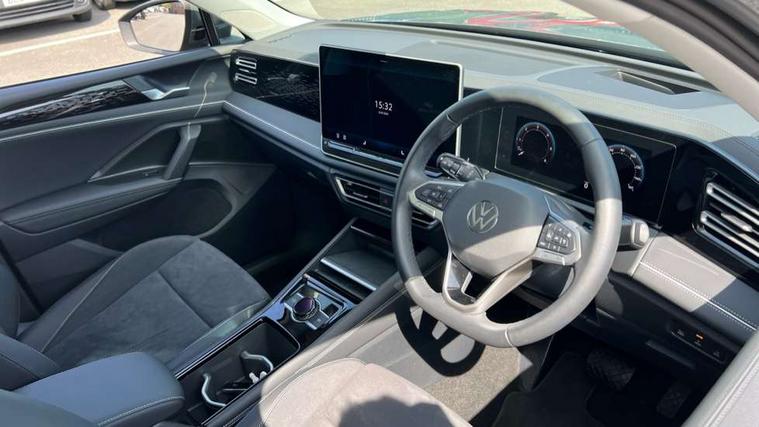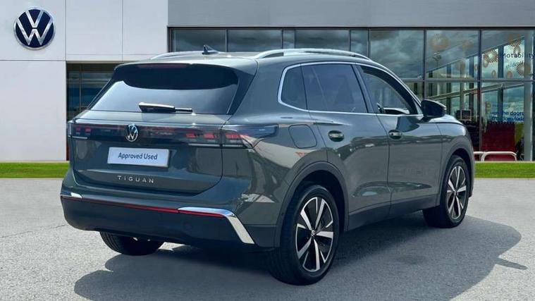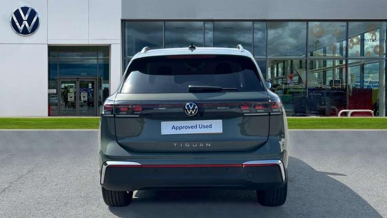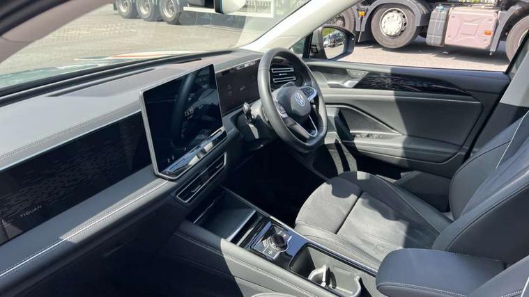 Adaptive cruise control (ACC), Advanced driver attention and drowsiness monitor, Bluetooth mobile phone interface, Car2X technology, Comfort drive travel assist, lane keeping system, lane assist and emergency assist, Digital Cockpit Pro - 10.25" high resolution dash display screen with customisable menus and information, Dynamic road sign display, E-Sim card for online connectivity, eCall emergency call service, Front Assist - Autonomous emergency braking with pedestrian and cyclist monitoring, Lane change system, Side assist, Rear traffic alert and Exit warning system, Multifunction front facing camera, Oncoming vehicle braking when turning including swerve support, Park assistance plus with front and rear parking sensors, Power assisted steering with speed sensitive, Start/stop system with regenerative braking, Warning signal and warning light for front and rear seatbelts not fastened, Wireless App-Connect, Front wheel drive, Digital radio reception (DAB), Diversity antenna for FM reception, Ambient lighting with logo projection, Auto dimming interior rear view mirror, Automatic headlight control system, Body colored bumpers in R-Line style, Body coloured door handles, Body-coloured exterior mirror housings, Chrome moldings on the side windows, Coming/leaving home lighting function, Heat insulating glass in side and rear windows, Heated rear window, Heated windscreen washer jets, High level 3rd brake light, Illuminated door handle recesses, Illuminated lightline between headlamps, Laminated safety glass from B-pillar backwards 90% tinted, Laminated safety glass windshield, Rain sensor windscreen wipers, Rear fog light on one side, reversing light on both sides, Rear side wing doors, Rear wiper, Silver roof rails, 12V outlet in center console rear and in luggage compartment, 12V socket in centre console, 3 bench rear seats in 2nd row, Air care climatronic 3 zone air conditioning system with rear air conditioning control panel, Carpet mats, front and rear, Centre console with illuminated storage compartment with sliding cover and two drinks holders, Ceramique headlining, Chrome elements on the mirror switch and power window switches and door pulls, Door and side trim panel with leatherette insert, Door sill protectors, Front centre armrest, Interior ambient lighting with 30 colour options, ISOFIX anchors for child seats on outer rear seats and front passenger seat. Compatible with i-Size, Mechanical rear seat release, Power adjustable lumbar support in front, Rear bench seat, split folding, longitudinally movable and folding with load-through hatch and centre armrest, Safety optimised front head restraints, Single front passenger seat, Sports comfort seats in front, Sun visors with illuminated vanity mirrors, Three rear head restraints, Variable luggage compartment floor, Comfort package with park assist plus and Safelock - Tiguan, Driver assistance package - Tiguan, 3 point seat belt for centre rear seats, 3 Point seat belts in front with pretensioners, 3 point seatbelts in outer rear with ECE label, Driver and front passenger airbag with front passenger airbag deactivation, Electronic parking brake with auto hold, Front and rear curtain airbags, Front and rear side airbags, Front centre airbag, Front disc brakes, Manual child proof rear door locks, Rear disc brakes, Two tone horn, Warning triangle, Anti theft wheel bolts, Decorative inserts Cross in dash and front door panels, Interior door handle in matte chrome, Soul instrument panel, Airstop tyres,