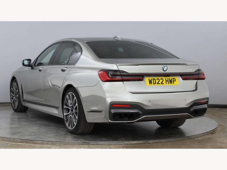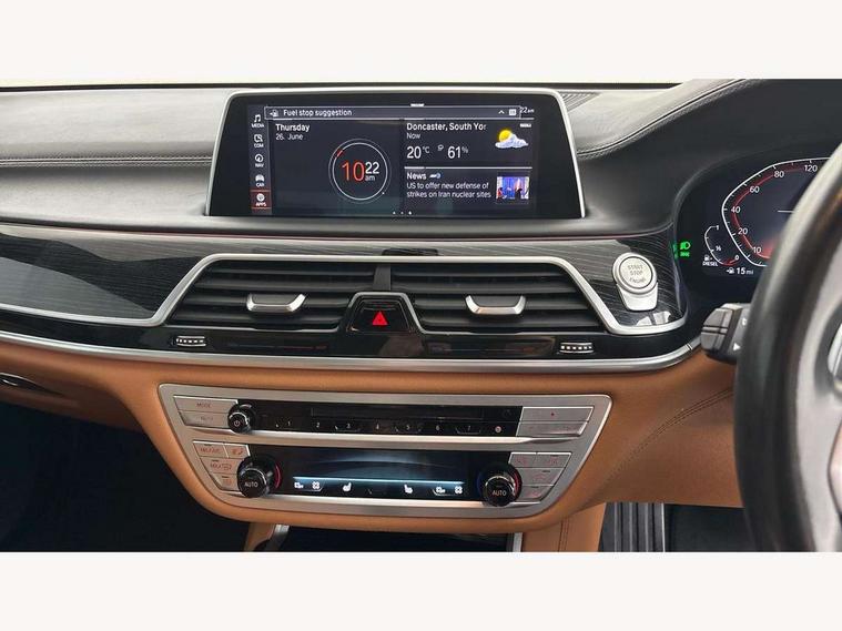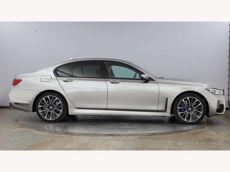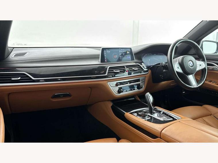 20GB hard disc drive (HDD) memory, Active Guard incl approach control warning with city brake function and person warning with city brake function, Average speed gauge, BMW apps interface, BMW ConnectedDrive - Online, BMW Drive recorder, BMW gesture control, BMW information plus, BMW legal emergency call, BMW Live Cockpit Professional with 12.3" instrument display + 12.3" high resolution centre display nav function and Intelligent Voice Assistant, BMW Teleservices, Brake force display, Brake pad wear indicator warning light, Colour information display, Comfort access system with smart opener, Condition based service, Driving experience control with adaptive mode, Electric boot lid - electrically opening/closing rear tailgate, Engine start/stop button, Enhanced bluetooth with wireless charging, Fuel consumption and range, iDrive touch controller with shortcut buttons, Integrated owner's handbook, Lights on warning, Multifunctional instrument panel, Oil sensor for level and grade, On board computer, On-board diagnosis - OBD, Outside temperature gauge, Park distance control (PDC), Personal Profile, Powered bootlid operation, Run flat indicator, Service indicator, Smartphone wireless charging plate, Speed limit display, Speed limiter, Trip computer, Wifi hotspot preparation, Anti roll bar front and rear, Diesel particulate filter, Double wishbone front axle, Dynamic Damper Control, Front and rear air suspension, Integral rear axle, Sport automatic transmission with gearshift paddles, CD player, DAB Digital radio, Favourite buttons, All round anti-corrosion system, Auto dimming rear view mirror, Automatic headlights, Automatic windscreen wipers, Body colour bumpers, Body colour door mirrors, Carbon core - innovative lightweight construction with highly rigid and light carbon elements, Chrome kidney grill struts in front and side, Dynamic brake lights, Electric front and rear windows with fingertip open/close + anti-trap all round and comfort closing function, Electric heated door mirrors, Exterior mirrors - electrically folding with anti-dazzle, Follow me home headlights, Heated windscreen washer jets, High beam assistant, High gloss shadow line exterior trim, LED daytime driving lights with front and rear active, LED front and rear fog lights, LED rear lights, Model logo, Outer door handle illumination, Rear boot, Rear decorative bumper moulding tailpipe in chrome, Rear side wing doors, Third brake light, Variable front intermittent wipers, Welcome lighting, 12V power sockets, 3 seat bench in 2nd row, Ambient interior lighting, Battery in luggage compartment, Centre console with armrest, Door sill finishers with BMW designation, Driver + front passenger electric lumbar support, Electric seat adjustment with memory, Footwell courtesy lights front and rear, Four zone automatic air conditioning, Front and rear cupholders x 2, Front and rear reading lights, Front and rear seat heating, Front comfort seats, Glove compartment, Grab handles, Isofix child seat mounting, Lashing eyelets in boot, Lockable glovebox, M specific key, Microfilter and active carbon filter, Reach and rake adjustable steering column, Rear centre console, Rear headrests, Single front passenger seat, Soft close doors, Storage options, Sun visors, Velour floormats, Connected Package Professional - 7 Series, M Aerodynamic pack - 7 Series, Non smokers pack - 7 Series, Parking Assistant Plus - 7 Series, Active front seat headrests, Active protection, Anti-lock braking system (ABS), Anti-whiplash front headrests, Automatic Stability Control (ASC), Brake assist function, Brake energy regeneration, Comfort exit stepless door brake, Cornering brake control, Crash Sensor - activates hazard/interior lighting + unlocks doors, Deformation zones - front and rear with door reinforcements and bumpers up to 2.5 mph, Driver and front passenger airbag with front passenger airbag deactivation, Driver/front passenger side airbags, DSC - Dynamic Stability Control, Dynamic brake control, Dynamic safety, Dynamic Traction Control - DTC, EBD - Electronic brakeforce distribution, Electromechanical parking brake + auto hold function, Engine drag torque control, Front and rear brake discs with interior ventilation, Front seatbelt pretensioners with force limiters, Head airbags for first and second row seats, Manual child lock in rear doors, Mechanical child proof lock on rear doors, Rear airbags, Side impact protection, Three inertia reel rear seatbelts, Three point rear seat belts, Two tone horn, Tyre pressure monitoring system, Tyre pressure sensors, Warning triangle and first aid kit, Electronic vehicle immobiliser, Locking wheel bolts, Remote central locking, Thatcham Cat.1 alarm, Ceramic finish for controls, Leather instrument panel,