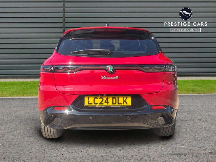 Adaptive cruise control with Stop and Go, Alfa connect box, Alfa connect services, Alfa dna with esc off (3 modes + esc off), Apple car play/Android Auto, Drowsy driver detection, e-Call (emergency call), Forward collision warning, Full tft instrument cluster - 12.3", Intelligent speed assist, Lane support system, PAS, Passive / keyless entry (front doors), Quick guide in english, Speed limiting device, Traffic sign recognition (w/navigation), Warranty handbook uk, Wireless charging pad, 10.25" radio touchscreen, usb, bluetooth audio streaming, voice controls with navigation, DAB digital audio broadcast, 4 Interior puddle lights, Auto headlamps with dusk sensor, Auto high beam, Auto wipers with rain sensor, Auto-dimming rear internal mirror, Black painted mirror caps, Body colour door handles, Body colour rear roof spoiler, Chrome finishing tonale badge, Electric exterior mirrors (heated), Electrical-folding exterior mirrors, Front and rear power windows with auto up/down and antipinch, Full LED rear lamps, Gloss black painted body kit w/ Black side and front inserts and skidplate, LED blade stop light, LED cornering projector light, LED license plate light, Matrix full led headlamps with adaptive system and fog light function, Rear side wing doors, Rear wiper, Roof, hood and exterior mirrors protection, Shark fin antenna, U shaped LED blades DRL signature and dynamic turn indicator, V front bezel black, Welcome/leaving lighting, 12v plugs in the front and in trunk, 60/40 Rear seats with ski pass, Alfa logo electrowelded on headrest, Black ceiling and pillars, Bottle storage 1l on door panel, Centre armrest with dark grey stitching, Door armrest with biscotto stitching, Dual zone air conditioning with aqs (with rear airvents), Front armrest (integrated in the central tunnel), Front headrests, Front usb plug type a + c (charge + data), Front/rear floor mats, Metallic pedals, Mono colour ambient light (included in domelamp), Overhead console with domelamp led and switches, Rear central armrest and 3 headrests, Rear usb plug type a + c (charge), Scoba shark black grain PVC centre armrest, Scoba shark black grain PVC upper door panel and armrest, Seat belt height adjustment, Single front passenger seat, Sport leather steering wheel with start button, Sunvisor mirror with light (driver and passenger), 6 airbags, ABS, Autonomous emergency braking inter-urban, Electric parking brake with autohold, Emergency braking pedestrian and vulnerable road users - interurban, ESP, Manual rear child locks, Rear seatbelt reminder alert, Three 3 point rear seatbelts, Tyre pressure monitoring system (TPMS), Capless fuel filler, Keyless Go, Vehicle theft alarm with hood protection and intrusion sensor (thatcham), Backlight film graphic dashboard insert, Biscotto stitching on dashboard, Scuba shark black grain PU dashboard, Black and white alfa romeo logo center wheel caps, Fix and go puncture repair kit, Summer tires,