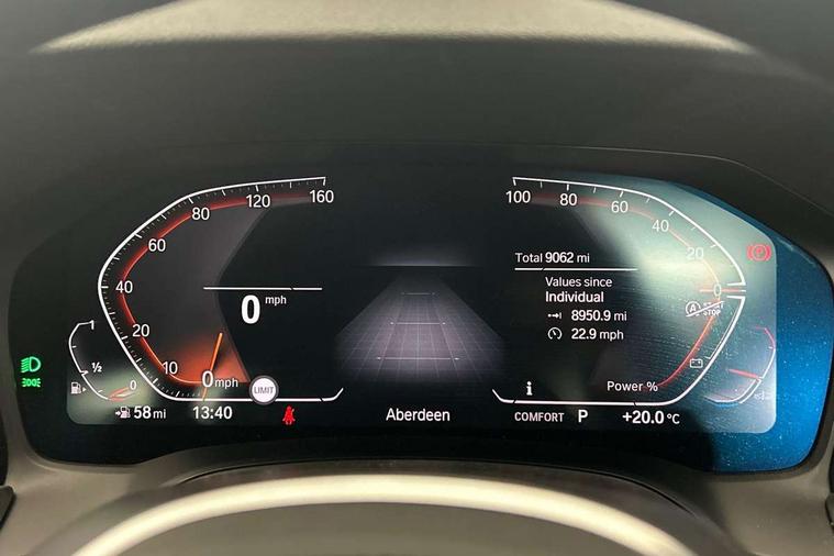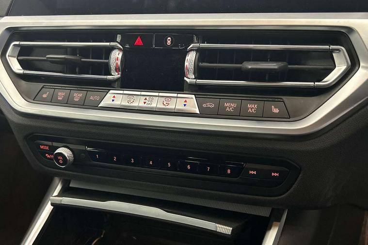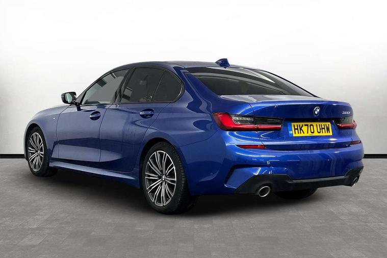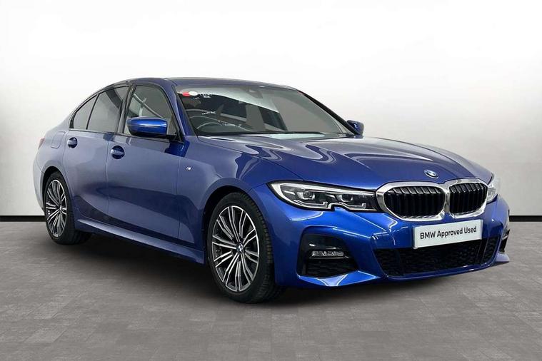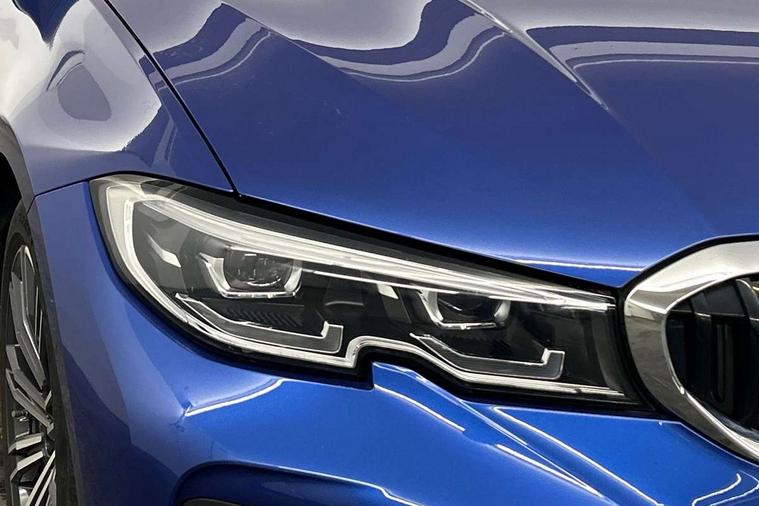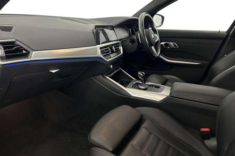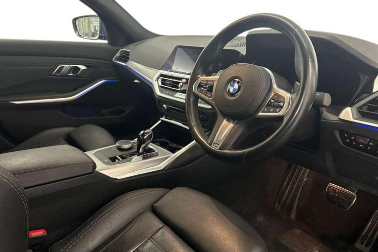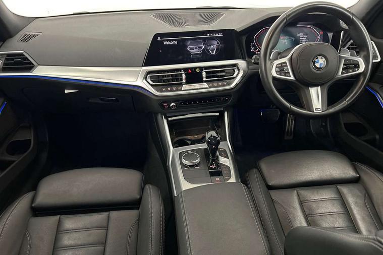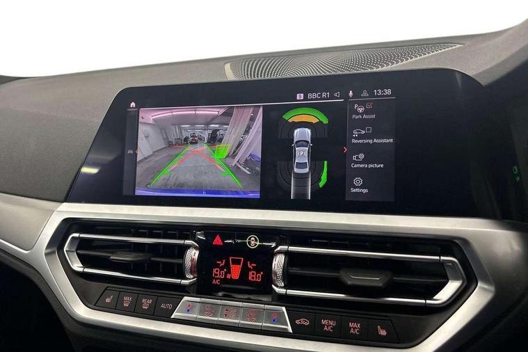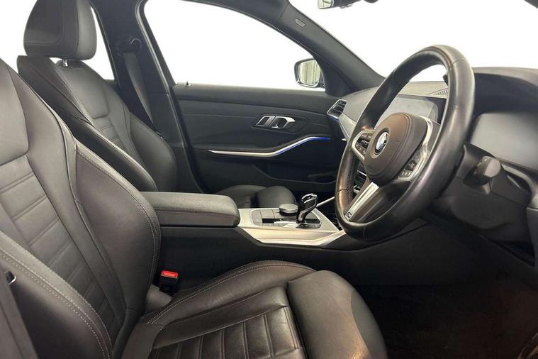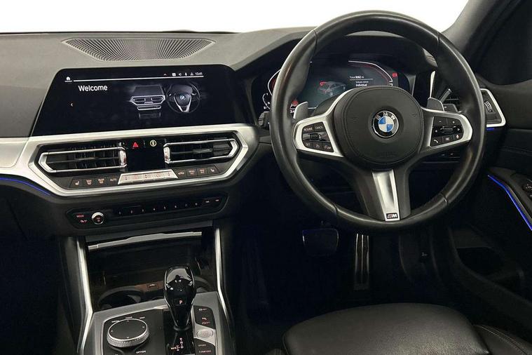 Active guard plus, Attentiveness assist, Auto start-stop, BMW iDrive controller on centre console, BMW Live Cockpit Professional Nav with 12.3" instrument display + 10.25" display, Intelligent Voice Assist, BMW OS 7, HDD, 2USB, 4G LTE connect, BMW service history, BMW Teleservices, Brake pad wear indicator in front and rear, Check Control warning system for monitoring of lights and door/luggage compartment open warning, Condition based service, Electric power steering with Servotronic steering optimised at all speed ranges, Instrument cluster with speedometer with mph readout, tachometer, fuel gauge and oil temperature gauge, Integrated owners handbook, Oil sensor for level and grade, warning by check control system, On board computer - average speed+fuel consumption, service interval, clock/date, odometer/trip meter, outside temperature display and ice warning, Optimum shift indicator, Personal Profile - automatic lock when driving away selectable, Variable sport steering, Balanced 50/50 weight distribution, Battery cut-out switch, Drive performance control - ECO PRO, comfort and sport modes, Larger capacity fuel tank, M sport suspension, Petrol Particulate Filter, Sport automatic transmission with steering-wheel mounted gearshift paddles and launch control, Stroke dependent dampers, DAB tuner, Electronic service booklet, Acoustic glazing, Automatic headlight beam throw control with load dependent regulating reaction, dynamic compensation of braking dive and acceleration squat, Black roof mouldings, Body colour door handles, Body colour fuel filler flap, Body colour mirror caps, Dynamic brake lights, Electric windows - front and rear, with open/close fingertip control, anti-trap facility and comfort closing, Exhaust tailpipe - split left and right, Exterior mirrors - electrically folding with anti-dazzle, Fading support, Front and rear bumper system with replaceable deformation elements, Front black door sill finishers with BMW designation, Green tinted heat protection glazing, High gloss shadow line exterior trim, Interior rear view electrochromatic mirror with automatic anti dazzle function, LED daytime running lights, LED front fog lights, Lightweight engineering, M designation on front side panels, left and right, Matt black exterior B pillar, Model designation on right side of tailgate, Rain sensor with automatic headlight activation, Shark fin antenna, Two part LED tailights in L-shape with components in smoked glass, brake light, LED turn indicator and rear fog light, Visible VIN plate, Welcome lights in interior and door handle area, Windscreen wipers with integrated washing jets, 12V power socket in front storage compartment, 2 front cupholder in centre console with clamping elements and matt black inlay, 3 rear seats with non folding headrests with 3 point seat belts, 3 zone automatic air conditioning, 4 pieces lashing eyelets in luggage compartment, 40:20:40 split folding rear seat with loading system, Ambient lighting with welcome carpet light, Anthracite headlining, Armrest integrated in front and rear door trim + front centre console armrest, Centred top Luggage compartment lights, Four grab handles integrated in roof lining, Front and rear door exit lighting (left / right), Front and rear door pockets, Front and rear reading lights, Front and rear velour floor mats, Front head restraints, Front sport seats, Heated driver and front passenger seats, Height adjustable mechanically and infinitely variable steering column, Illuminated armrest storage compartment, Illuminated glove compartment with separate small compartment, Interior lighting - front centre over interior mirror with soft light, rear centre and front and rear footwell lighting, M Sport multifunction leather steering wheel, Make-up mirror lights, Rear centre armrest with 2 cupholders, Rear centre console with storage compartment and ventilation grille, Sunvisors with vanity mirrors and ticket pocket, Toolkit located in luggage compartment, Connected pack professional - 3 Series Saloon/Touring, M Aerodynamics pack - 3 Series Saloon/Touring, 2 tone horn, BMW emergency call, Brake energy regeneration, Braking pre-tensioning, Child proof locking system in rear door, Child seat ISOFIX attachment rear outer seats, Coasting in idle in ECO PRO mode, Crash sensor activating of airbags, Unlocking doors, hazard warning lights, fuel cut off, interior lighting+activation of safety battery terminal clamp, Driver and front passenger side airbags, integrated in the door side seat backrest bolsters for all seat variants, Driver/Front Passenger airbags, Dry braking, Dynamic brake control, Dynamic stability control + (DSC+) - Anti-lock Braking System (ABS) with brake assist and cornering brake control + Automatic Stability Control (ASC), Dynamic Traction Control - DTC, Electric parking brake including automatic hold function and automatic release of the parking brake when driving off, Electronic differential lock control (EDLC), Front passenger manual airbag deactivation, Head airbags for all 4 outer seats, Hill start assist, Seat belt security check for driver and front passenger, Side impact protection, Three 3 point seat belts on all seats including front belt stopper, pyrotechnic belt tensioners and belt force limiters, Tyre pressure monitoring with three level warning strategy, Ventilated front and rear disc brakes, Warning triangle and first aid kit, Alarm system (Thatcham 1) with remote control and electronic engine immobiliser, Central locking switch for all doors, fuel filler cap and luggage compartment, Remote control with integrated key one button open/close vehicle and windows, sole opening of the luggage compartment lid and panic mode, Start/stop button with Comfort Go keyless engine start and auto Start/stop deactivation button, Vehicle key with M specific designation, Reduced rolling resistance tyres,