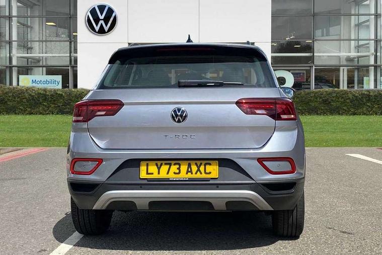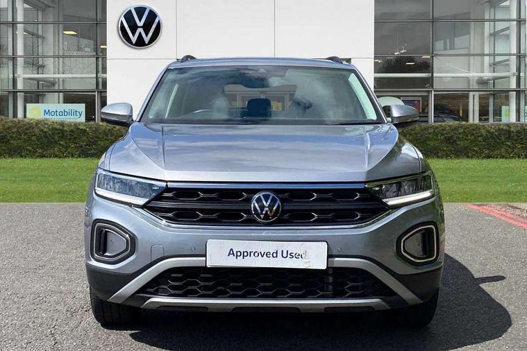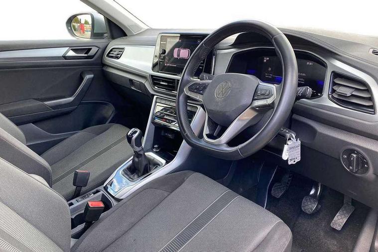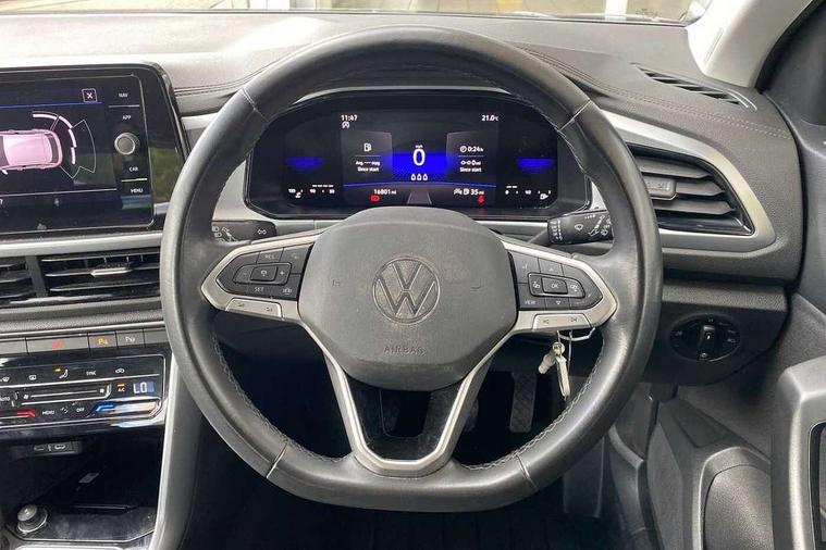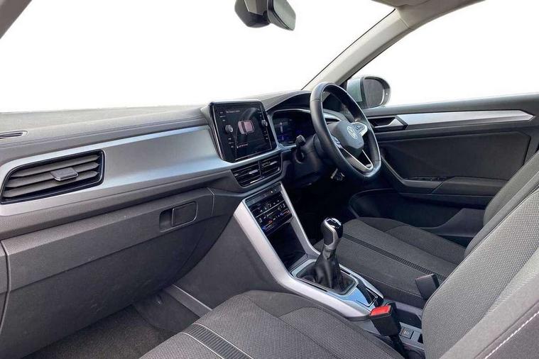 Advanced driver attention and drowsiness monitor, Bluetooth mobile phone interface, Driver tips and journey analysis, Emergency call service, Lane keeping system Lane Assist, Modified key software - reduce switch off time for key status change to Long no motion, Online services, Park assist including front and rear parking sensors, Power assisted speed sensitive steering, Service interval indicator, Tailgate/trunk lid release from outside, Think blue trainer driver tips and journey analysis, Warning sound and light for front seatbelts unfastened, Wireless app connect, Battery regeneration during braking, Front shock absorption, Rear shock absorption chassis with increased ride height, Start/stop function with battery regeneration, DAB Digital radio, Diversity antenna for FM reception, Music playback - MP3, WMA and AAC files, Premium USB cable in choice of either Apple or Android smartphone compatibility, SD card slot, Simultaneous pairing of 2 compatible mobile devices, Title and cover art display, We Connect and We Connect Plus functionality, 3rd brake light, Auto dimming interior rear view mirror, Automatic hazard lights activation under emergency braking, Automatic headlight control with LED separate daytime running lights with coming/leaving home function, Black roof rails, Body coloured bumpers and radiator grille with chrome trim and front fog lamps with chrome bezel, Body coloured exterior mirror housings and door handles, Extended roof spoiler, Exterior mirrors aspherical on driver side, convex on front passenger side, External USB type C socket and charging sockets, Front windscreen wiper with intermittent wipe and 4 position delay, Heated rear window, LED rear combination lamps, LED rear number plate lights, LED tail lamp rear comination lamps, Power windows with comfort operation and circuit breaker, Rain sensor, Rear exhaust tailpipe, Rear fog light on one side and reversing lights on both sides, Rear side wing doors, Rear wash/wipe with intermittent wipe setting, Remote electrically foldable door mirrors, puddle lights and reverse activated passenger's door mirror, 12V power socket in centre console, 3 rear head restraints, 3 seat bench in 2nd row, 4 load lashing points in luggage compartment, Air care climatronic air conditoning system with active combination filter and 2-zone temperature control, Ambient lighting with mirror logo projection, Cloth upholstery, Door and side trim panel in cloth, Drawer under drivers seat, Driver/front passenger seat height adjustment, Front centre armrest, Front comfort sports seats, Front cupholders x 2, Front reading light, Instrument lighting, white adjustable panel illumination, Interior light delay, Isofix child seat preparation, Leather gearshift handle, Load-through provision with cup holder when folded down ('Unsplit rear seat bench, split folding backrest, with centre armrest), Luggage compartment lighting, Lumbar support for driver's and front passengers seat, Non-folding front passenger seat backrest, Single front passenger seat, Storage compartment in left and right luggage area, Storage compartment in rear doors, Storage compartments in driver and front passenger doors, Sunvisors with illuminated vanity mirrors, Variable boot floor, height adjustable and removable, Driver assistance pack without proactive passenger protection - T-Roc, 3 point height adj front seatbelts + pretensioners, 3 point seatbelts in outer rear with ECE label, ABS, Child locks on rear doors, Driver and front passenger airbag with front passenger airbag deactivation, Driver and front passenger safety-optimised head restraints, Drivers seatbelt reminder, Electronic parking brake, Electronic Stability Control (ESC) inc EDL (Electronic Differential Lock) and ASR (Traction Control), Front and rear passengers curtain airbag system including front side airbags, Front assist with city emergency braking and pedestrian monitoring, Front disc brakes, Front seat side impact airbags, Hill start assist, Predictive pedestrian protection, Rear disc brakes, Two tone horn, Tyre pressure loss indicator, Volkswagen roadside assistance, Alarm with interior protection, Anti-theft alarm system with interior monitoring, backup horn, and towing protection, Remote central locking with SAFELOCK, radio remote control with 2 remote control folding keys, Pewter matt decorative inserts for intrument panel, centre console and door panels at the front, Trims for alloy wheels,