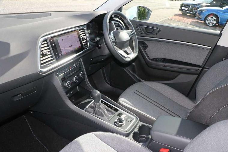 8" Digital cockpit, Colour multi-function on board computer display, Cruise control system with speed limiter, E-call, Outside temperature gauge, PAS, SEAT drive profile with driving experience button - Normal, Sport, Eco and Individual mode, gearshift, steering and throttle response, Self parking functionality (includes front and rear parking sensors), Start/stop system, Tailgate, Trip computer, wired and wireless full link smartphone integration, Wireless phone charger, Steering wheel mounted audio/phone controls, Black wheel arch surrounds, Body colour bumpers, Chrome front grille frame, Chrome roof rails, Chrome side window trim, Daytime running lights, Door mirrors with welcome light silhouette, Dynamic headlight range control with self adjusting whilst driving, Electric adjustable/heated/folding door mirrors, Front and rear electric windows, Full LED headlamps with lens and LED front fog lamps with cornering function, LED 3rd brake light, LED rear tail lights, Rear exhaust tailpipe, Rear fog lights, Rear side wing doors, Rear wash/wipe, Variable front intermittent wipers, 12v socket in front, 3 seat bench in 2nd row, 60/40 split folding rear seat, Cloth upholstery with front comfort seats, Drawer under right front seat, Dual zone climate control, Front and rear head restraints, Front centre armrest, Front seat back storage pockets, Height adjustable driver and passenger seat with lumbar adjustment, ISOFIX points in outer rear seats with top tether anchorage points, Leather sports steering wheel and gear knob, Rear armrest and easy back seat release mechanism from boot, Single front passenger seat, Steering wheel mounted gearshift paddles, Convenience pack - Ateca, Interior lighting pack - Ateca, Navigation system pack with DAB - Ateca, Safety and driving pack with attention and drowsiness assist - Ateca, 3x3 point rear seatbelts, ABS, Traction control system (TCS), Electronic stability control (ESC) and Electronic differential lock system (XDS), Airbags - Driver and front passenger airbag with deactivation, front side, two curtain and driver's knee airbags, Electric parking brake with auto hold function, Front and rear seatbelt reminder, Front assist with autonomous emergency braking, Hill hold control, Manual rear child locks, Single tone horn, Tiredness recognition system, Tyre pressure monitoring system, Alarm, Keyless entry, Locking wheel bolts, Remote central locking, Chrome interior detailing, 18" Performance machined alloy wheels 36/2 in nuclear grey,