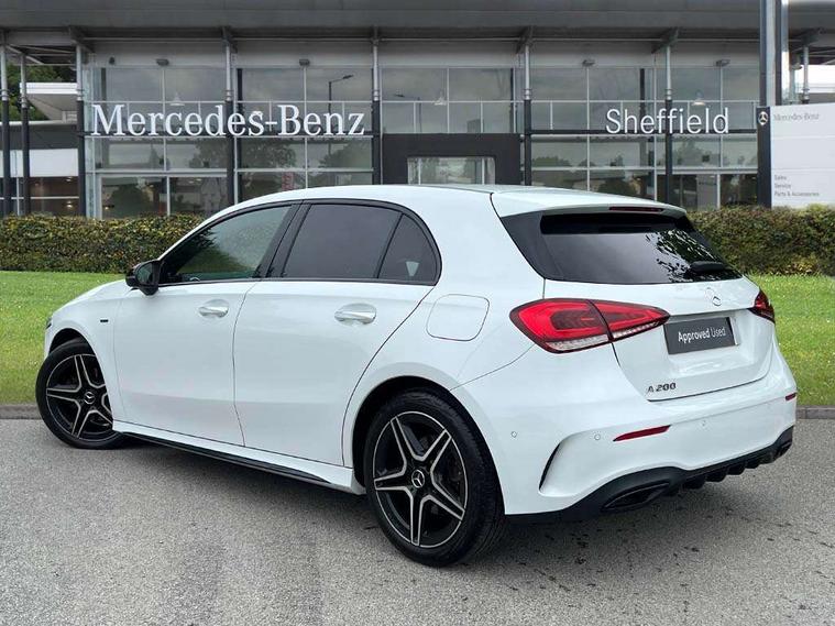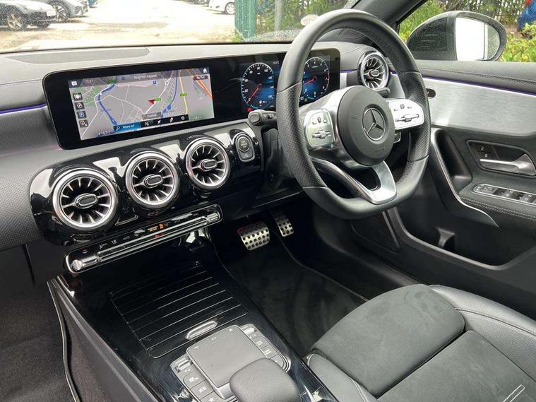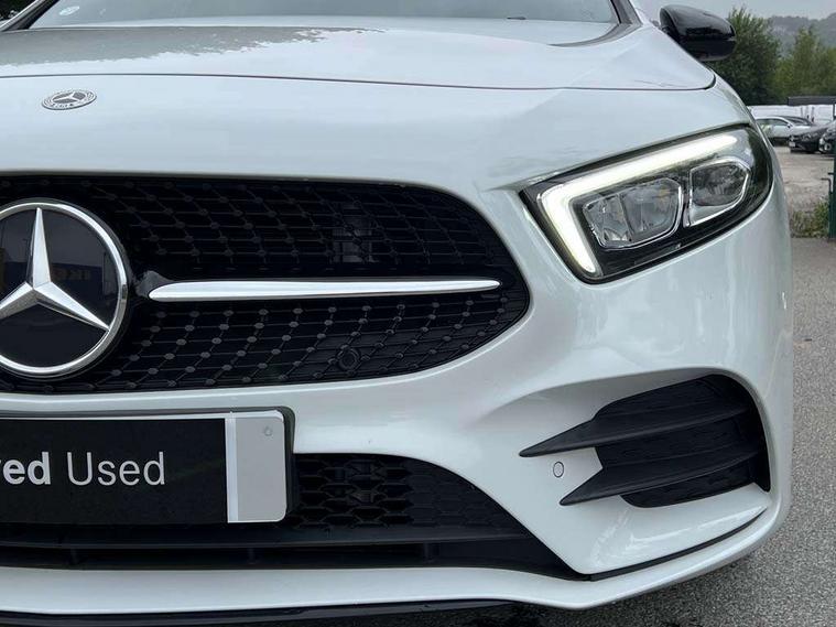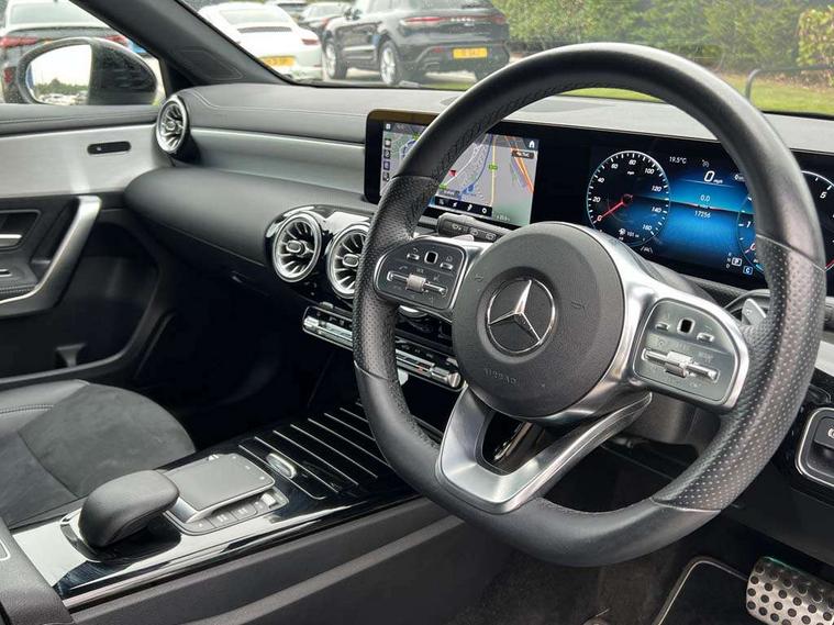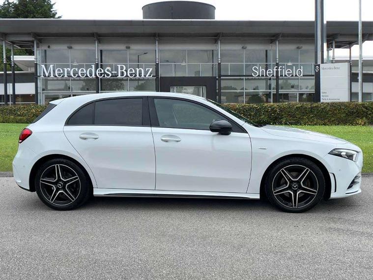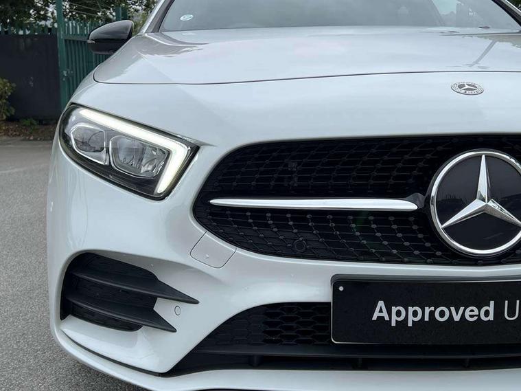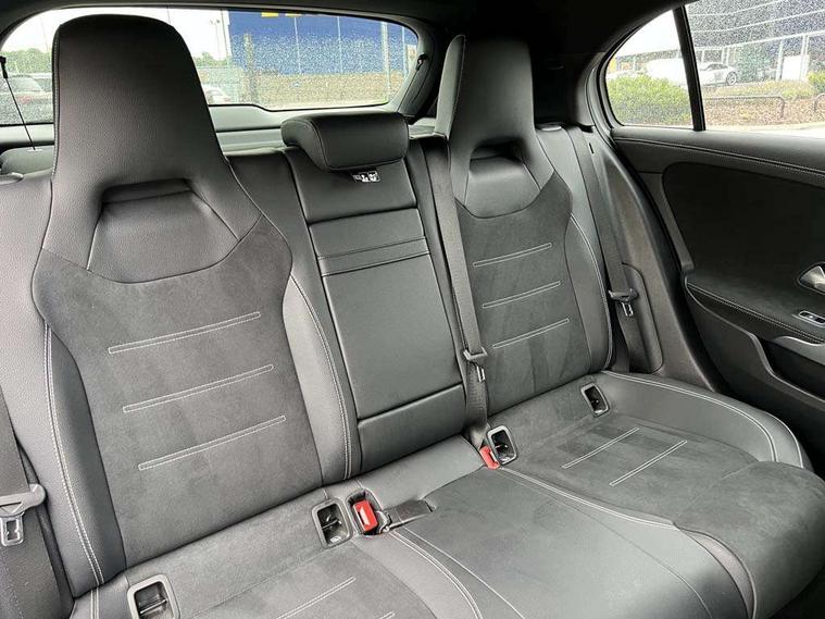 10.25" Digital instrument cluster display screen, 10.25" media display, 180 degree rear view camera with parking guidelines, Active parking assist with visual and audible warning of detected obstacles, Attention assist, Brake pad wear indicator warning light, Car wash mode, Cruise control + speed limiter, Direct steering, Dual bluetooth interfaces, DYNAMIC SELECT with a choice of driving modes (ECO, Comfort, Sport and Individual), ECO start/stop function, Fluid level warning indicator for fuel, oil, coolant and washer fluid, Hard-disk navigation, Hey Mercedes Voice activation, Lamp failure indicator, Lane keeping system, Mercedes me connect including emergency call system, accident recovery, breakdown and maintenance management, Mercedes me remote services, Outside temperature gauge, Owners manual in English, Pre-installation for private car sharing, Preinstallation for Mercedes Benz link, Service indicator (ASSYST), Smartphone integration with Apple CarPlay and Android auto, Speed sensitive power steering, Trip computer, Ultrasonic sensors positioned in the front and rear bumpers, Lowered comfort suspension, Rear axle torsion beam, 10 speakers, 2 USB ports (type C) in rear stowage compartment and one in front of center console, DAB Digital radio, MBUX multimedia system with DAB digital radio and touchpad including satellite navigation, Mercedes-Benz sound system - 100W, 4 Electric Front and Rear windows, Adaptive brake lights, AMG bodystyling - Front apron with splitter in chrome, rear apron with chrome trim and chrome visible trim elements in tailpipe, Automatic headlights, Black weather strip, Body colour bumpers, Body colour door handles, Body colour side skirt, Body coloured door mirrors, Electric adjustable and heated door mirrors with integrated LED side indicators, Exclusive diamond radiator grille, Exhaust system - Twin visible tailpipes in polished stainless steel, Headlamp assist automatic headlamp activation, Heated glass rear windscreen + timer control, High gloss black beltline, LED High level third brake light, LED high performance headlamps with integrated LED daytime running lights, LED tail lamp, Privacy glass, Radio aerial, Rain sensing windscreen wipers with two sensitivity settings, Rear fog lights, Rear side wing doors, Rear wiper, Window line trim strip in high gloss black, 3 seat bench in 2nd row, 3 Spoke flat bottom leather multi function steering wheel with perforated leather in grip area, 40:20:40 split folding rear seats, Artico man-made leather/Microfibre Dinamica upholstery with contrast stitching in light grey, Auto Mercedes-Benz child seat recognition sensor, Black air vents with surround in silver chrome, Black roof lining, Brushed stainless steel sports pedals with rubber studs, Controller on centre console with chrome surround, Floor mats with black top stitching and embroidered edition logo and piping in light grey, Front centre armrest with storage compartment, Front seat backs luggage nets, Front seat cushion length adjustment, Galvanished gear shift paddles on steering wheel, Heated front seats, Height/reach adjustable steering column, Illuminated front door sills with changeable cover, Interior lighting - 64 colour Ambient lighting, Interior mirror with reading lamps in black and frameless, Manual height adjustable front seats, Rear armrest with 2 cupholders, Rear head restraints, Seat occupancy sensor for front passenger seat, Single front passenger seat, Sports seats with integrated headrests, Stowage compartment in centre console with retractable cover, Sunvisors with illuminated vanity mirrors, Touchpad on center console, Twin front cupholders, Two zone thermotronic luxury automatic climate control, Light and sight pack - A Class, Mirror package - A Class, Night pack - A Class Saloon/Hatchback, Seat comfort pack - A Class, 3 rear 3 point seatbelts, ABS with Brake Assist, Active bonnet, Active brake assist includes forward collision warning system with autonomous braking, Adaptive brake assist with hold function and hill start assist, Black seatbelts, Childproof locks manually operated for rear doors and electrically operated for rear power windows, Crash responsive emergency lighting, Driver and passenger head and side airbags, Drivers knee airbag, Dual stage driver/passenger airbags, Electronic parking brake, ESP curve dynamic assist, ESP with ASR, Front and rear seatbelt reminder, Front brake callipers with Mercedes Benz lettering, ISOFIX and top tether child seat fixing points in two outer rear seats, Tyre pressure monitoring system, Warning triangle and first aid kit, Window airbags, Alarm system/interior protection/immobiliser, Keyless entry lock/unlock, Keyless Go, Remote central locking and crash sensor with emergency opening function, Urban guard vehicle protection system with immobiliser and interior protection, Matrix look light longitudinal grain aluminium trim element, 18" AMG 5 twin spoke light alloy wheels aerodynamically optimised painted in black with highsheen finish, Summer tyres, Tirefit sealant kit,