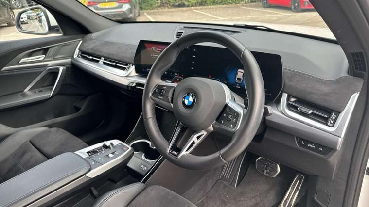 Attentiveness assist, Automatic start/stop function, BMW Live Cockpit Plus with 10.25" instrument cluster and 10.7" display, BMW Operating system 9 with BMW Maps, real-time traffic information, in-car experiences, remote services and smartphone integration, BMW Teleservices, Brake pad wear indicator, Condition based service, Connected drive services, Drive off assistant, Electrically opening/closing tailgate with opening/closing with remote control and contactless opening and closing, iDrive controller, Language version English, My modes (Personal / Efficient / Sport), Parking assistant with reversing assistant, active PDC, lateral parking aid and rear view camera, Personal Profile, Servotronic PAS, Dynamic stability control, Larger Fuel Tank, Performance Control, Petrol Particulate Filter, Steptronic transmission with double clutch and gear shift paddles, BMW Personal eSim, DAB Digital radio, BMW radiator grille with mesh grid in black high gloss, radiator grille frame in pearl chrome, Dynamic brake lights, Electric adjustable heated door mirrors, Electric windows - front and rear, with open/close fingertip control, anti-trap facility and comfort closing, Folding door handles integrated flush with surface, Front bumper cover with air inlet trims for air curtains in matt black, Front door exit lights, Heated rear window, High Gloss Black rear spoiler, Home light, Invisible exhaust tailpipe, LED 3rd brake light integrated in rear window frame, LED daytime running lights, LED number plate light, M high gloss shadowline-A/B/C pillar panel/window frame/recess finish strip/window guide bar in front door/mirror frame/cover panel in highgloss black, Matt black roof strips, Model badge X2 on left tailgate, motorisation on right, Rain sensor including auto headlights activation, Rear side wing doors, Rear wiper, Side sill trim panel in black matt grained, Trailer stabilisation logic, Welcome lighting, Windscreen washer nozzle for rear view camera, Windscreen wipers front with heated washer nozzles, 12V - Power sockets with front centre console and luggage compartment, 12V socket in right side trim panel, 2 bag hooks in luggage compartment, 2 cup holders in front centre console, 2 front reading lights, 2 x USB Type C ports for charging in front centre console + 2 x USB Type C ports for charging in rear centre console, 3 rear headrests, 3 seat bench in 2nd row, 3 upper retaining strap clips integrated into rear panels of seat backrests, 40:20:40 split folding rear seats, Ambient interior lighting, Bottle trays in all doors, Child seat ISOFIX attachment for two outer rear seats and front passenger seat with anchorage points, Driver and front passenger heated seats, Dual zone automatic air conditioning, Front and rear door pockets, Front and rear footwell lights, Front centre console storage compartment, Front/rear adjustable head restraints, Glove compartment, Interior door handle recess light on all doors, Light on right in luggage compartment, M headliner Anthracite, M sport leather steering wheel, Middle centre console storage compartment, One piece parcel shelf opens together with tailgate and removable, Rear armrest in door trim panel, Rear coat hooks, Single front passenger seat, Storage compartment lighting in centre console and storage tray in centre stack, Storage compartment net in left side trim panel, Storage compartment with folding cover under centre console armrest cushion, Storage tray in right side trim panel, Tilt adjustment incl. cargo function of 2nd row of seats, Vanity mirror lights, ABS, Automatic hold function, BMW emergency call, Braking readiness, Child lock for rear electric windows, Cornering brake control (CBC), Crash Sensor - activates hazard/interior lighting + unlocks doors, Driver/Front Passenger airbags, Driver/front passenger side airbags, Dry braking, Dynamic brake control, Electromechanical parking brake, Energy recovery system, First aid kit, Front and rear brake discs, Front centre airbag between driver and front passenger seats, Front passenger airbag deactivation, Head airbags for all 4 outer seats, Integrated brake system, Locking of doors after driving off, PC iBrake PostCrash approach control warning with light braking function, Rear door child safety locks, Three point seat belts in all seats, Tyre pressure monitor, Warning triangle, Alarm system with tilt sensor, monitoring doors, bonnet interior and tailgate, Closing system with central locking, Locking wheel bolts, Luxury instrument panel, Tyre repair kit (including Tyre sealant and 12V Compressor),