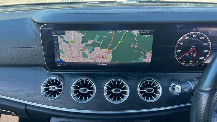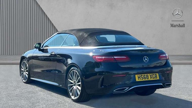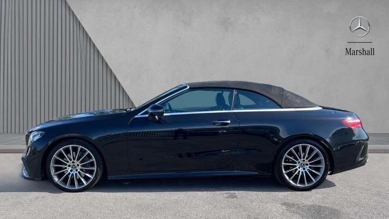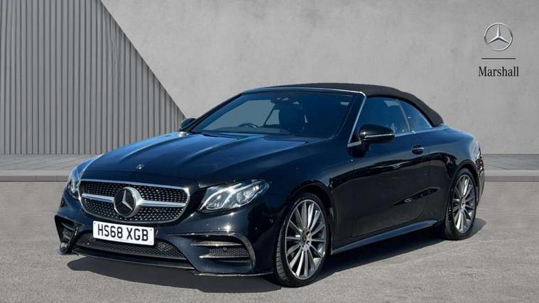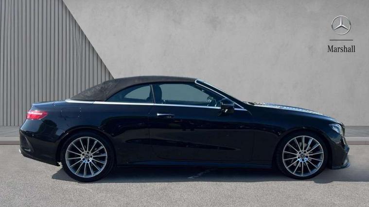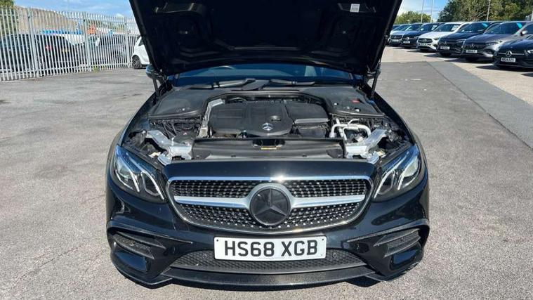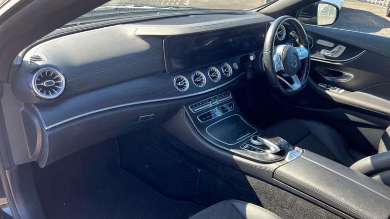 360 degree parking camera, Active parking assist including front and rear parking sensors, Analogue clock, Attention assist, Automatic boot separator, Blind spot assist, Bluetooth interface for hands free telephone, Brake wear warning display, Cockpit display 12.3" widescreen digital instrument cluster, Collision prevention assist plus, COMAND online HDD navigation with Radio/Media interface, linguatronic + smartphone integration/Apple CarPlay/Android Auto and 12.3" Cockpit display, Direct steer speed sensitive steering, Direct steering, DYNAMIC SELECT with a choice of driving modes (ECO, Comfort, Sport, Sport+ and Individual), ECO start/stop function, Engine start/stop button, Mercedes connect me, Multi function trip computer, Outside temperature display, Remote boot release, Service indicator (ASSYST), Status display for rear seat belts in instrument cluster, Touchpad with control wheel, Wireless charging, 66 litre fuel tank, 8.5 litre AdBlue tank, Diesel particulate filter, Incorrect fuelling protection, 2 USB ports in centre console, Audio 20 with USB, touchpad and control wheel with Media Interface with Bluetooth interface and hands-free function, DAB Digital radio, Acoustic soft-top with enhanced climate and noise comfort, Adaptive brake lights, AIRCAP wind deflector and draught stop, AMG bodystyling front and rear aprons, side skirts, AMG boot lid spoiler in body colour, AMG front, rear apron and side skirts, Body colour door handles, Body coloured bumpers, Electric windows with one touch opening/closing and obstruction sensors, Exterior mirrors heated and electronically adjustable, Illuminated front door sill panels with Mercedes-Benz lettering, Magic Vision Control heated windscreen wiper system, Multibeam LED Intelligent Light System with Adaptive Highbeam Assist, Rain sensing windscreen wipers, Rear LED lights, Top surround of side windows in polished aluminium, Visible twin pipe exhaust system integrated into bumper, Waistline in polished aluminium, 3-spoke flat bottom multifunction AMG steering wheel with Touch Control buttons, trimmed in black nappa leather, 4 way adjustable front head restraints and 2 way rear head restraints, 50/50 split folding rear seat, Airscarf - neck level heating, Artico man-made leather upper dashboard and beltlines with contrast stitching, Automatic child seat recognition sensor, Automatic two zone climate control, Bag hook in luggage compartment, Belt feeder driver and front passenger seat belt automatically positioned within easier reach, Black roof lining, Central stowage compartment with 12 V socket in centre console, Centre armrest and door handle illumination, Chrome door pins, Easy entry seats, Floor mats with AMG lettering, Front and rear door pockets, Front centre armrest with stowage compartment, Front footwell lights, Glasses compartment in overhead control panel, Glove compartment - lockable, air conditioned and illuminated, Heated front seats, Interior lighting - 64 colour Ambient lighting, Interior rear light/integral reading lights, Isofix rear child seat fastenings, Multi contour front sports seats, Multi function steering wheel, Rear centre armrest with 2 cupholders + storage, Seat occupancy sensor for front passenger seat, Sports pedals in brushed stainless steel with black rubber studs, Steering column manually adjustable for height and reach, Steering wheel gearshift paddles, Steering wheel touch control buttons for audio and onboard settings, Storage net in luggage compartment, Sunvisors with illuminated vanity mirrors, Twin front cupholders, Memory pack - E Class, Mirror pack - E Class, Stowage pack - E Class, Active bonnet, Active brake assist, Adaptive brake system, Adaptive driver and front passenger airbags, Anti-lock braking system (ABS), Crash sensor (auto door unlocking), Drivers knee airbag, Electric parking brake, Electronic Stability Programme, Front and rear window airbags, Front seatbelt pretensioners, Front side airbags, Head airbags, Hill hold function, Perforated front brake discs with "Mercedes-Benz" lettering, Seatbelt warning, Three point rear seat belts, Tyre pressure monitoring system, Warning triangle and first aid kit, Alarm system/interior protection/immobiliser, Central locking with interior switch, automatic locking and crash sensor with emergency opening function, Chrome surround electric key, Keyless entry go starting function, Black open pore ash wood, Open pore black ash wood centre console, Run flat tyres,