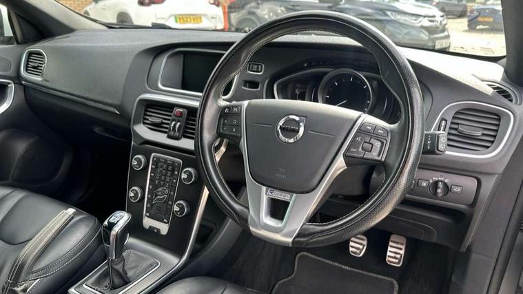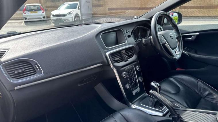 Active TFT crystal driver's instrument display, Front park assist, Information centre, Intelligent driver information system (IDIS), Rear park assist, Rear parking camera, Sensus navigation system, Service interval indicator, Speed limiter, Speed sensitive steering, Diesel particulate filter, Dynamic chassis, DAB Digital radio, Steering wheel audio controls, Active bending LED headlights, Adaptive brake lights, Auto dimming rear view mirror, Automatic folding door mirrors with ground lights, Automatic headlights, Body colour bumpers, Body colour door handles, Dark tinted rear side windows, Dual exhaust pipes, Electrically adjustable and heated door mirrors, Frameless rear view mirror, Front and rear electric windows, Headlamp levelling, Headlight cleaning system, High level LED brake light, Home safe and approach lighting, LED daytime running lights, LED Headlights, Matt silver finish door mirrors, R Design front grille, R Design lower front nose, Rain sensor windscreen wipers, Rear diffuser, Rear tailgate emblem, Rear wiper, Roof spoiler, Silk metal window trim surround, Visible VIN plate, 12V socket in front + rear tunnel console, 3 spoke leather steering wheel with chrome trim and R design logo, 5 headrests, 60/40 split folding rear seat, A-pillar parking ticket holder, Adjustable front centre armrest, Charcoal headlining, Door sill tread plates, Electronic climate control (ECC), Folding front passenger seat with height/lumbar adjust, Footwell lights, Front cupholders, Front door step lamp, Front reading lights, Front sports seats, Front storage box, Height adjustable drivers seat with lumbar support, Height/reach adjustable steering column, Illuminated driver/passenger vanity mirrors, Illuminated gear knob, Isofix attachments on outer rear seats, Load cover, Lockable glovebox, Pollen filter, R Design leather sports upholstery, Rear armrest with cupholder, Rear reading lights, Rear theatre lighting, Sports floor mats, Sports pedals, WHIPS - Whiplash Protection System, 5 x 3 point seatbelts, ABS+EBA, City safety braking system, Drivers knee airbag, DSTC-Dynamic Stability and Traction Control, Dual stage driver's airbag, Dual stage passenger airbag, Front/rear seatbelt pre-tensioners, Hill start assist, Inflatable curtain, Manual rear child locks, Passenger airbag cut-off device, Pedestrian airbag system, Side airbags, Side curtain airbags, Side impact protection, Tyre pressure monitor, Warning triangle, Anti-theft alarm including immobiliser/volume sensor + level sensor, Deadlocking system, Key integrated remote control central locking, Locking wheel nuts, Stealth aluminium trim, Tyre sealant kit,