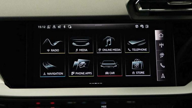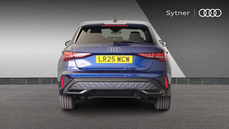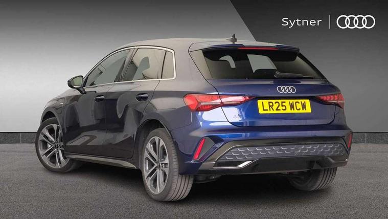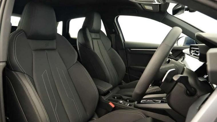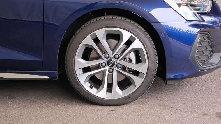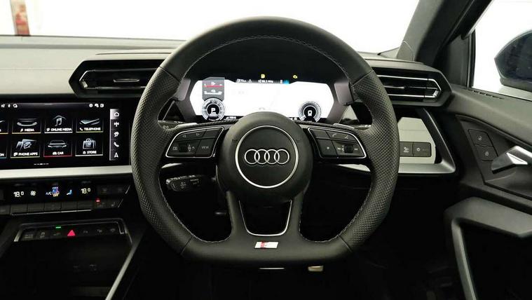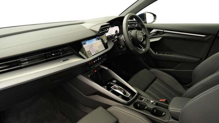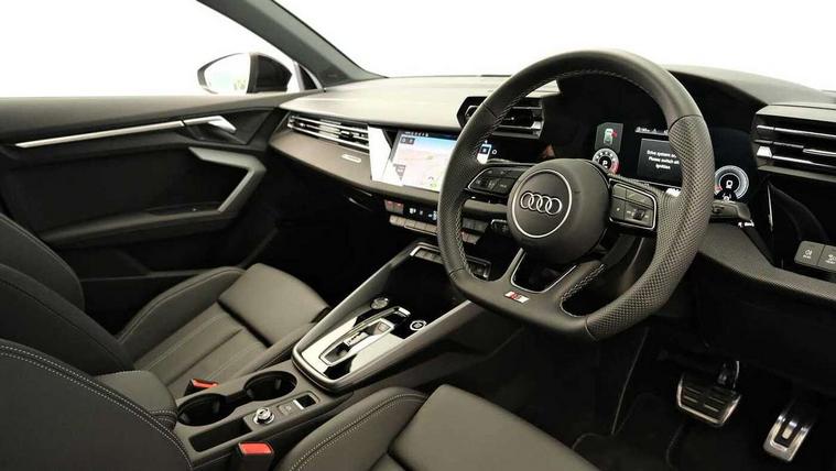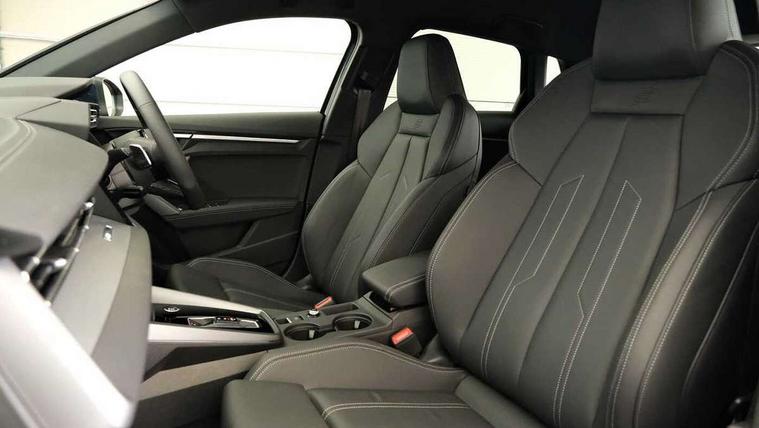 Adjustable speed limiter, Audi drive select, Audi smartphone interface with app store includes wireless Apple carplay, Android auto and Amazon alexa integration, Audi virtual cockpit plus - 12.3" full HD resolution dynamic digital instrument cluster, Automatic start/stop system with recuperation, Bluetooth interface, Camera based traffic sign recognition, Collision avoidance assistant, Cruise control, Distraction and Fatigue warning, e-Call (emergency call), Electromechanical power speed sensitive steering, Lane departure warning system, MMI Navigation Plus with high resolution 10.1" colour touch screen display, Park Assist with parking system Plus, Service indicator, Trip computer, Voice control system with natural language interaction, 3 pin 10 amp domestic charging cable, CCS socket for DC charging, Charging cable for public charging, mode 3 (type 2), up to 22 kW (AC), Compact charging system, Industrial connector CEE 32 A, 230 V, length 1.6 m, Standard suspension, Type 2 socket for AC charging, Audi Phonebox light with wireless charging, Audi sound system - 10 loudspeakers including centre loudspeaker and subwoofer, DAB Digital radio, USB ports with charging function in the rear, Acoustic glass windscreen, Aluminium window trim, Auto dimming frameless rear view mirror, Body colour exterior mirrors, Chrome exhaust tailpipes, Electrically adjustable/heated/folding/auto dimming door mirrors with integrated LED indications + kerb view function for passenger side, Exterior model badging, Front and rear side air inlets in grained matt black with dark liquid chrome frame, Front electric windows, Front radiator grill in high gloss dark chrome, Heat insulating glass windscreen, Illuminated door sills with aluminium inserts at the front with S logo, LED 3rd brake light, LED daytime running lights, LED headlights with LED rear lights and dynamic rear indicators, Light and rain sensors, Privacy glass - dark tinted rear window, rear door and side windows, Rear diffuser and grill in grained matt black with inlay in dark liquid chrome, Rear electric windows, Rear side wing doors, Rear wiper, S line bumpers, S roof spoiler, Side S line emblems on front wings, Side sill trim in dark liquid chrome, 12V socket and storage compartment in front centre console, 3 seat bench in 2nd row, 3 spoke flat bottomed leather multifunction sport steering wheel with gear shift paddles, 3-zone deluxe automatic air conditioning, 4 way electrically adjustable lumbar support for driver and front passenger, 40/20/40 split folding rear seat bench, Black cloth headlining, Convenience auxiliary air conditioning, Front and rear centre armrest in artificial leather, Front and rear centre armrest in artificial leather with contrasting stitching on armrests and instrument panel, Front and rear headrests, Front/rear floor mats, Heated front seats, Height and reach adjustable steering wheel, Manual boot compartment lid, Manually adjustable front seats, Rear cup holders, S badging on the steering wheel, Seat side bolsters, Single front passenger seat, Stainless steel pedals and front footrest in black, Twin leather upholstery with front sports seats S embossed logo, Aluminium interior elements pack - A3 Sportback, Multi-coloured LED interior lighting package - A3, 3x3 point rear seat belts, Acoustic vehicle alerting system, Driver and front passenger airbag with passenger airbag deactivation, Electronic Stabilisation Control (ESC) including ABS, ASR and EDL, First aid kit with warning triangle and 2 safety vests, Front side airbags with head airbags and interaction airbag, Hill hold assist, Pre-sense front with pedestrian and cyclist detection, Seatbelt monitoring, Tyre pressure loss indicator, Anti theft alarm, Anti-theft wheel bolts, Electronically operated child locks, Immobiliser, Remote central locking with safelock, Dash & door Inlay in dark aluminium Spectrum, Tyre repair kit,
