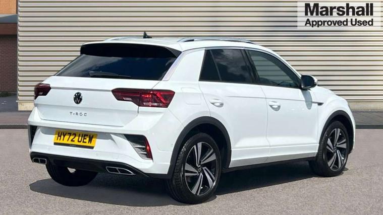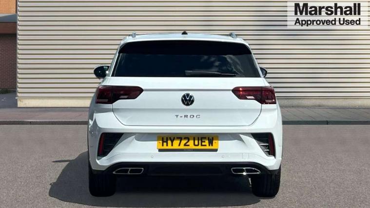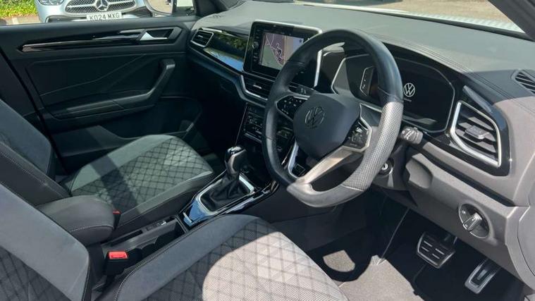 10.25" Digital cockpit pro, Bluetooth mobile phone interface, Driver alert system with fatigue detection, Driver tips and journey analysis, Emergency call service, Lane keeping system Lane Assist, Modified key software - reduce switch off time for key status change to Long no motion, Online services, Park assist including front and rear parking sensors, Service interval indicator, Tailgate/trunk lid release from outside, Think blue trainer driver tips and journey analysis, Warning sound and light for front seatbelts unfastened, Wireless app connect, Battery regeneration during braking, Start/stop function with battery regeneration, Diversity antenna for FM reception, Front and rear 6 speakers, Music playback - MP3, WMA and AAC files, Premium USB cable in choice of either Apple or Android smartphone compatibility, SD card slot, Simultaneous pairing of 2 compatible mobile devices, Title and cover art display, We Connect and We Connect Plus functionality, 3rd brake light, Auto dimming interior rear view mirror, Automatic hazard lights activation under emergency braking, Automatic headlight control with LED separate daytime running lights with coming/leaving home function, Extended roof spoiler, Exterior mirrors aspherical on driver side, convex on front passenger side, External USB type C socket and charging sockets, Front windscreen wiper with intermittent wipe and 4 position delay, Heated rear window, LED Plus headlamps, LED rear combination lamps, LED rear number plate lights, LED tail lamp rear comination lamps, Power windows with comfort operation and circuit breaker, R-Line design body coloured bumpers, Rain sensor, Rear exhaust tailpipe, Rear fog light on one side and reversing lights on both sides, Rear side wing doors, Rear wash/wipe with intermittent wipe setting, Remote electrically foldable door mirrors, puddle lights and reverse activated passenger's door mirror, 12V power socket in centre console, 3 rear head restraints, 3 seat bench in 2nd row, 4 load lashing points in luggage compartment, Air care climatronic air conditoning system with active combination filter and 2-zone temperature control, Black roof lining, Chrome plated radiator grille inserts, air vent surrounds and light switch surrounds, Door and side trim panel with leatherette insert, Drawer under drivers seat, Front + rear carpet mats, Front centre armrest, Front cupholders x 2, Front footwell illumination, Front reading light, Front scuff plates with R logo, Instrument lighting, white adjustable panel illumination, Interior ambient lighting and surround lighting, Interior light delay, Isofix child seat preparation, Leather gearshift handle, Load-through provision with cup holder when folded down ('Unsplit rear seat bench, split folding backrest, with centre armrest), Luggage compartment lighting, Single front passenger seat, Stainless steel pedals, Storage compartment in left and right luggage area, Storage compartment in rear doors, Storage compartments in driver and front passenger doors, Sunvisors with illuminated vanity mirrors, Variable boot floor, height adjustable and removable, Driver assistance pack without proactive passenger protection - T-Roc, 3 point height adj front seatbelts + pretensioners, 3 point seatbelts in outer rear with ECE label, ABS, Child locks on rear doors, Driver and front passenger airbag with front passenger airbag deactivation, Driver and front passenger safety-optimised head restraints, Drivers seatbelt reminder, Electronic parking brake, Electronic Stability Control (ESC) inc EDL (Electronic Differential Lock) and ASR (Traction Control), Front and rear passengers curtain airbag system including front side airbags, Front assist with city emergency braking and pedestrian monitoring, Front seat side impact airbags, Hill start assist, Predictive pedestrian protection, Rear disc brakes, Single tone horn, Tyre pressure loss indicator, Volkswagen roadside assistance, Alarm with interior protection, Anti-theft alarm system with interior monitoring, backup horn, and towing protection, Remote central locking with SAFELOCK, radio remote control with 2 remote control folding keys, Trims for alloy wheels,