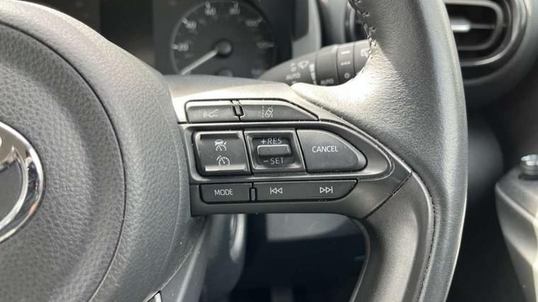 4.2" coloured TFT multi information display with analogue speedometer, Adaptive cruise control, Adjustable speed limit with speed warning, Bluetooth connectivity, E-call, Electric power steering, Hybrid energy display, Multi information display switches on steering wheel, Reversing camera, Smartphone integration with Apple CarPlay and Android auto, Tailgate, Voice recognition, Vehicle Stability Control (VSC), 4 speakers, 7" Multimedia display touch screen, Toyota Touch 2 with DAB, USB connection, Acoustic windscreen glass, Auto windscreen wipers, Automatic headlights, Body coloured door mirrors, Bulb indicators, Chequered front grille, Daytime running lights, Electric adjustable heated door mirrors, Follow me home headlights, Front auto power windows with anti jam protection, Halogen projector headlights, LED High mounted stop lamp, Manual headlight levelling, Rain sensor, Rear side wing doors, Rear spoiler, Rear wiper, Shark fin antenna, Turning signal integrated indicators in door mirrors, Variable front intermittent wipers, 3 adjustable rear headrests, 3 seat bench in 2nd row, 3 spoke leather steering wheel, 60/40 split folding rear seat, Active headrests, Adjustable boot height, Auto air conditioning, Coat hooks in rear grab handles, Cup holders (2 front & door), Data Communication Module (DCM) connected services, Fabric upholstery, Front armrest, Glovebox, Grey roof lining, Height adjustable driver's seat, Isofix seat fixing, Leather gearshift, Pollen filter, Shopping bag hooks, Single front passenger seat, Tilt/telescopic steering column, 3 point seatbelts on all rear seats, ABS+EBD+Brake assist, Electronic parking brake, Emergency brake light system (EBS), Front passenger airbag on/off switch, Front seatbelt reminder, Hill start assist control (HAC), Rear child proof door locks, Rear seat belt reminder, Supplemental Restraint System (SRS) 8 airbags: Driver & passenger's airbags, dual side curtain airbags, side impact airbags, front centre airbag, Toyota Safety Sense 2, Precollison + Night time Pedestrian & Cyclist Detection, Lane Trace Assist, Auto High Beam, Intelligent ACC & Road Sign Assist, Tyre pressure warning system, 2x Master key, Alarm/immobiliser, Remote powered central double locking doors, Soft touch instrument panel, Space saver spare wheel,