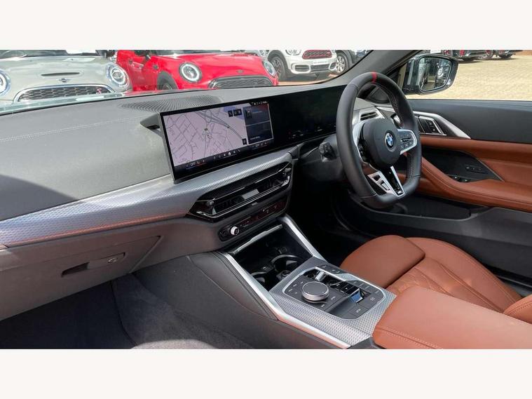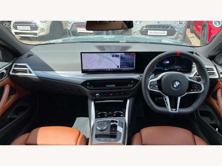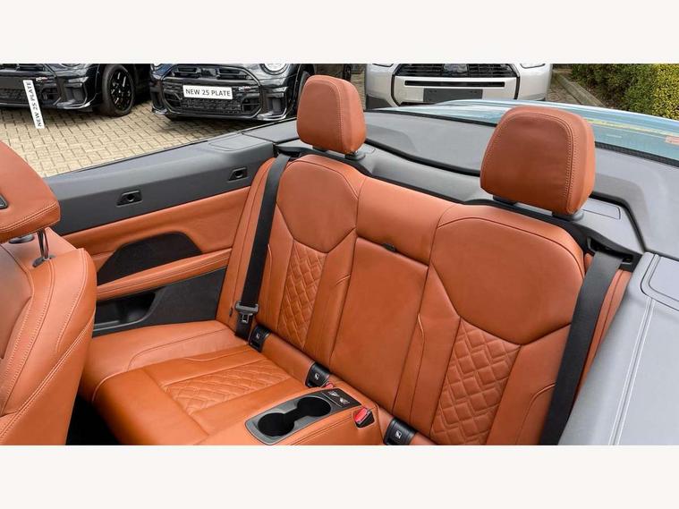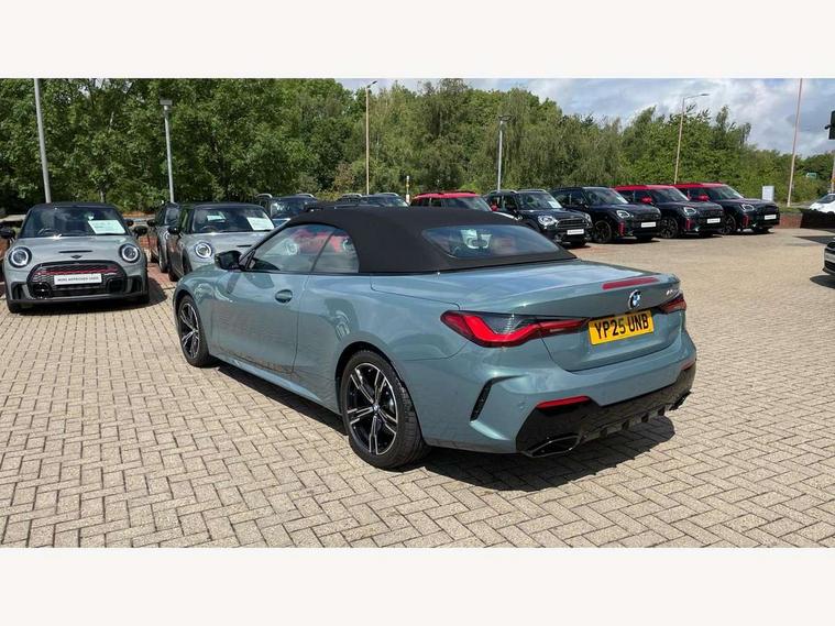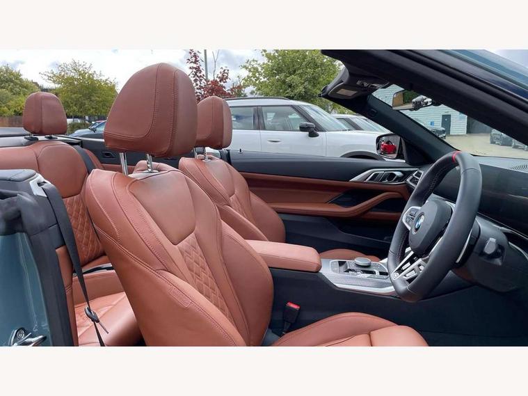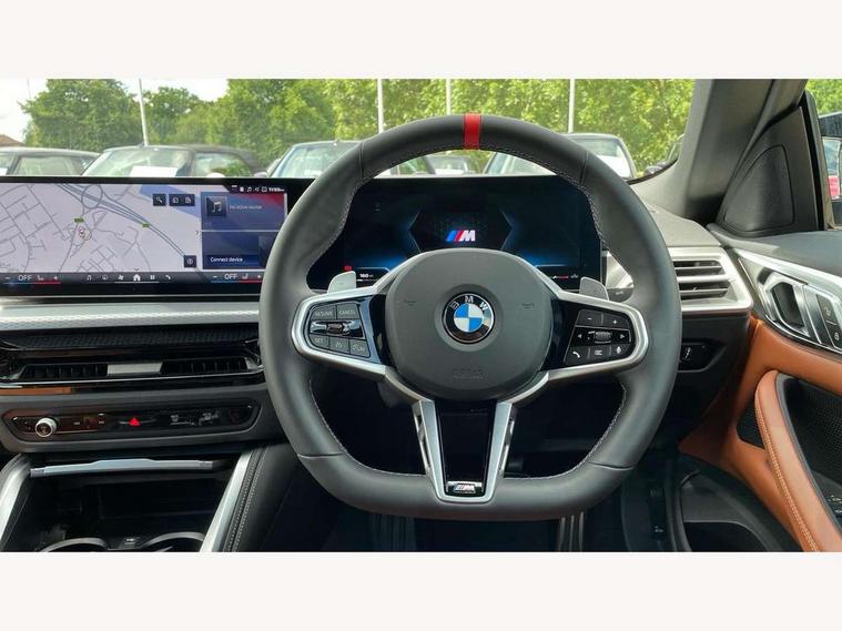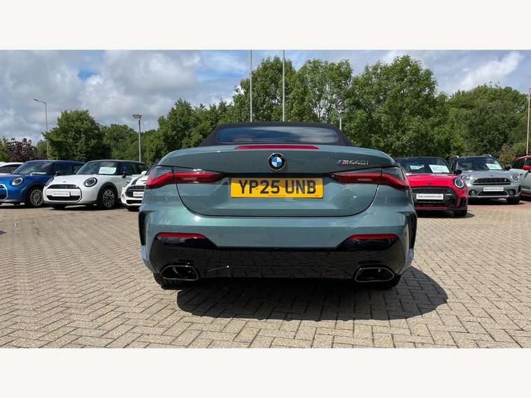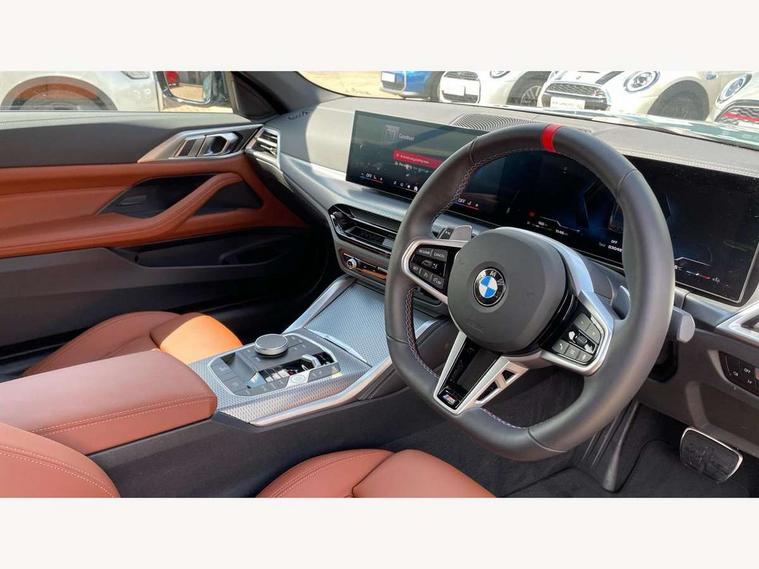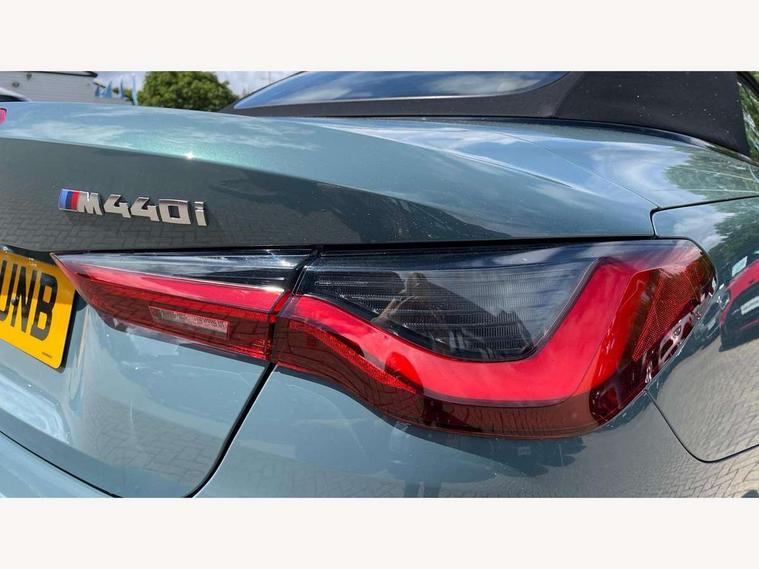 Active guard plus, Attentiveness assist, Auto start-stop, Bluetooth hands free facility with USB audio interface with audio streaming, BMW ConnectedDrive online services, BMW iDrive controller on centre console, BMW service history, BMW Teleservices, Brake pad wear indicator in front and rear, Check Control warning system for monitoring of lights and door/luggage compartment open warning, Condition based service, Electric power steering with Servotronic steering optimised at all speed ranges, Gearshift time display in manual mode, Instrument cluster with speedometer with mph readout, tachometer, fuel gauge and oil temperature gauge, Integrated owners handbook, Language version English, Oil sensor for level and grade, warning by check control system, On board computer - average speed, fuel consumption, outside temp display with acoustic warning, clock/date, service interval, odometer/trip meter, Optimum shift indicator, Run flat indicator, Shifting point display, Variable sport steering, 48V Mild hybrid technology, 8 speed automatic steptronic transmission with gearshift paddles, Active sound design, Balanced 50/50 weight distribution, Double joint spring strut front axle, Drive performance control - ECO PRO, comfort and sport modes, Low centre of gravity, M Sport differential, Petrol Particulate Filter, Sprint mode, Stroke dependent dampers, xDrive system permanent all-wheel drive variable torque distribution, 1x USB type A with data transfer and 1.5 Amp charging function in the centre console, 1x USB type C with 3 Amp charging function in the front centre armrest, DAB tuner, Electronic service booklet, Personal eSim, Acoustic glazing, Automatic headlight beam throw control with load dependent regulating reaction, dynamic compensation of braking dive and acceleration squat, Automatic windscreen wipers and automatic headlight, Automatically dimming electrochromatic rear view mirror, BMW emblem on engine compartment lid and tailgate, Body colour fuel filler flap, Body colour roof fin, Bonnet and tailgate badge, Brushed aluminium inserts in the front door sill finishers with BMW designation, Design of radiator grille ring in Black high-gloss with horizontal look and an M badge on the left side, Door sill strips, Dynamic brake lights, Electric windows - front and rear, with open/close fingertip control, anti trap facility and comfort closing function all round, Exterior mirrors - electrically folding with anti-dazzle, Fading support, Follow me home headlights, Free form tailpipe finisher and side frame trim strip in high gloss black, Front and rear bumper system, Front apron plastic in body colour, Green tinted heat protection glazing, High gloss shadow line exterior trim, Illuminated bow type door handles in body colour drivers side with door lock, Interior rear view electrochromatic mirror with automatic anti dazzle function, LED 3rd brake light, LED daytime running lights, LED front fog lights, LED front indicators, Licence plate panel integrated into front bumper and tailgate, Lightweight engineering, M designation on front side panels, left and right, Model and M badges in pearl chrome, One piece front bumper cover including towing eye cover in body colour, Rear boot, Reversing light, Two part LED tailights in L-shape with components in smoked glass, brake light, LED turn indicator and rear fog light, Visible exhaust tailpipe finisher, Visible VIN plate, Welcome lights in interior and door handle area, Widened track and increased camber values for max transverse dynamics, agility and steering precision, Wind deflector, Window recess cover black high gloss, Windscreen wipers with integrated heated washing jets, 12V power socket in front centre console, 2 2nd row folding seats, 2 front cupholder in centre console with clamping elements and matt black inlay, 2 Rear seat headrests, 2 zone automatic air conditioning, 2nd row centre armrest with built-in cupholders, 3 spoke flat bottom M sport leather multifunction steering wheel, 4 pieces lashing eyelets in luggage compartment, Anthracite headlining, Armrest integrated in front and rear door trim + front centre console armrest, Battery in luggage compartment, BMW ID, Driver seat backrest width adjustment, Electric memory seats - electrically adjustable seats with drivers seat memory, exterior mirrors memory and automatic parking function, Extended storage - Luggage compartment partition net on left side trim panel, Bag hook on both sides of the luggage compartment, Front and rear door pockets, Front and rear reading lights, Front footwell lights, Front sport seats, Heated driver and front passenger seats, Height adjustable front headrests, Height adjustable mechanically and infinitely variable steering column, Illuminated armrest storage compartment, Illuminated glove compartment with separate small compartment, Luggage compartment light, Make-up mirror lights, Single front passenger seat, Storage compartment in rear centre console, Sunvisors with illuminated vanity mirrors and ticket pocket, Toolkit located in luggage compartment, Velour front floor mats, Ambient lighting pack - 4 Series, Connected professional package - 4 Series, M sport exterior styling pack - 4 Series M440i, 2 x 3-point rear seatbelts, Battery safety cut-off, BMW emergency call, Brake energy regeneration, Braking pre-tensioning, Child seat ISOFIX attachment for the two outer rear seats, Coasting in idle in ECO PRO mode, Cornering brake control (CBC), Crash sensor activating of airbags, Unlocking doors, hazard warning lights, fuel cut off, interior lighting+activation of safety battery terminal clamp, Driver and front passenger side airbags, integrated in the door side seat backrest bolsters for all seat variants, Driver/Front Passenger airbags, Dry braking, Dynamic brake control, Dynamic stability control + (DSC+) - Anti-lock Braking System (ABS) with brake assist and cornering brake control + Automatic Stability Control (ASC), Dynamic Traction Control - DTC, Electric pa