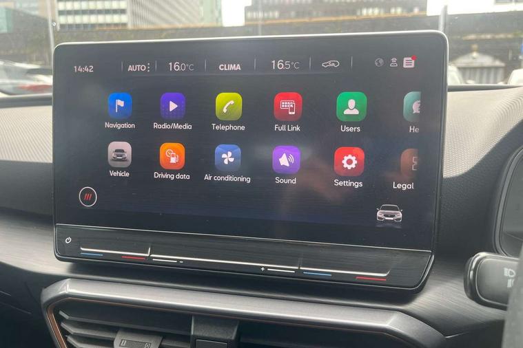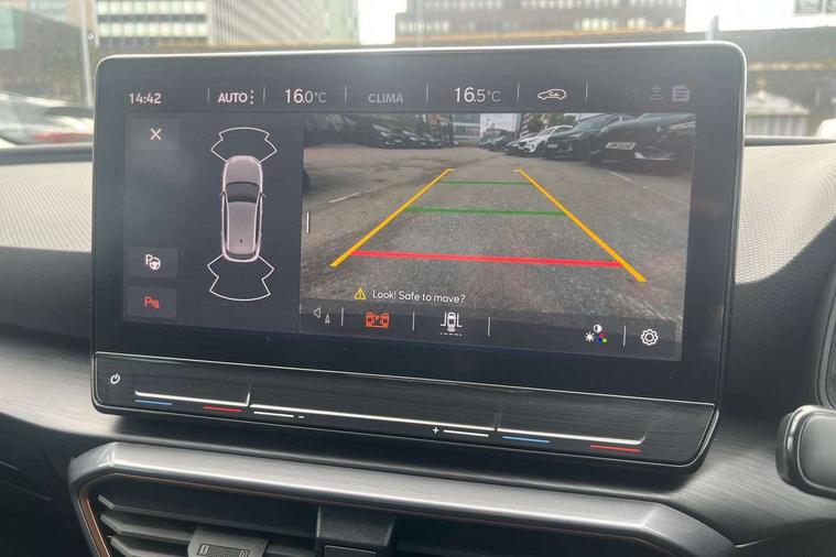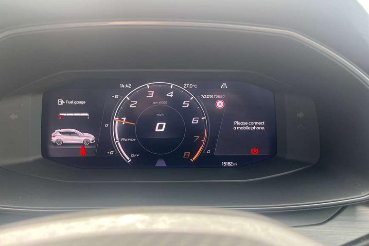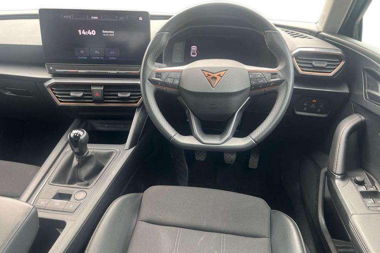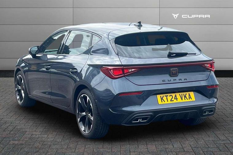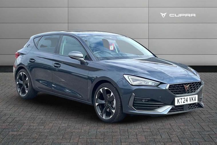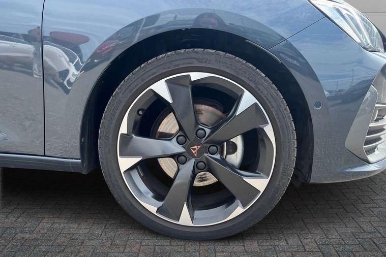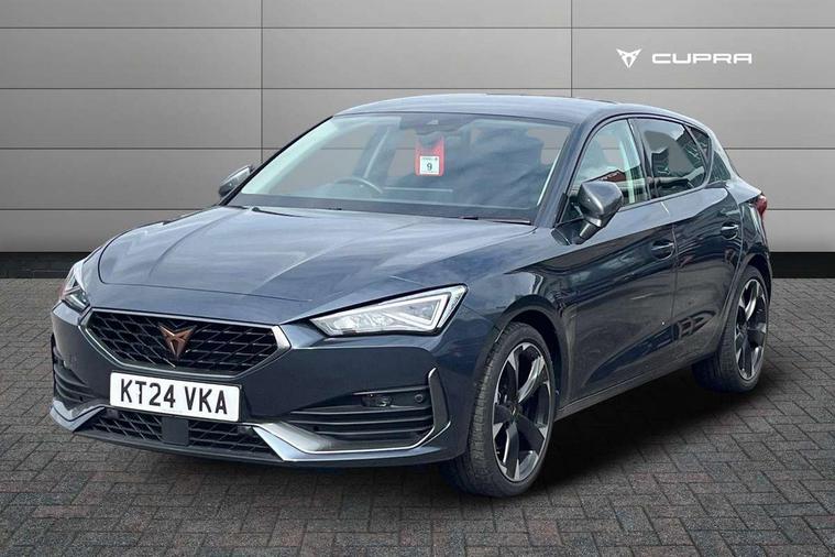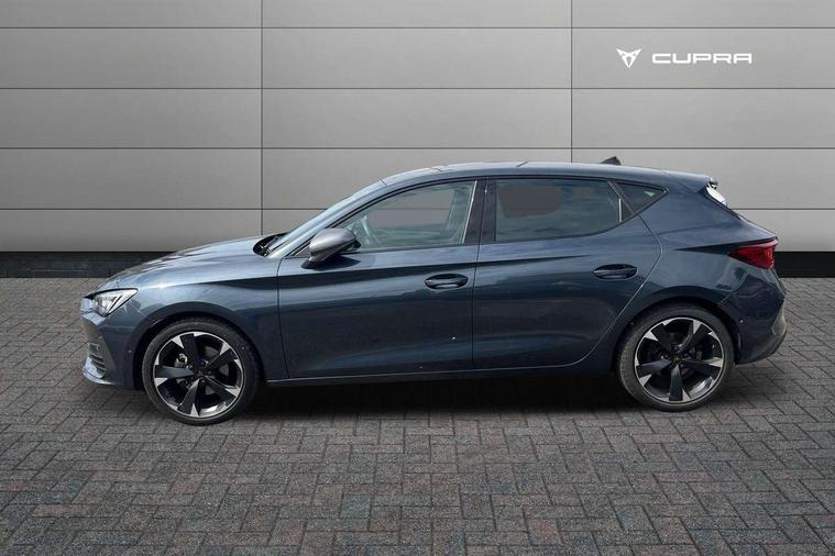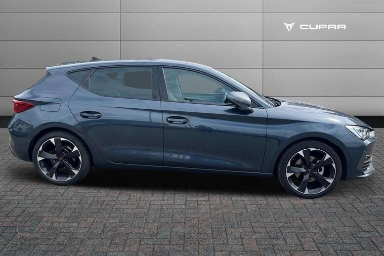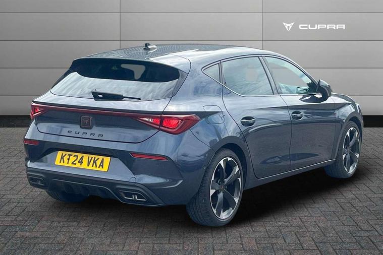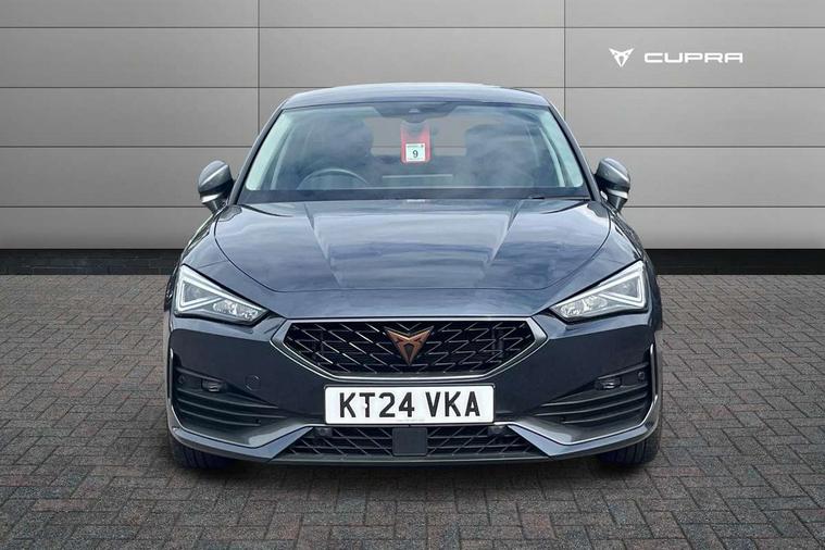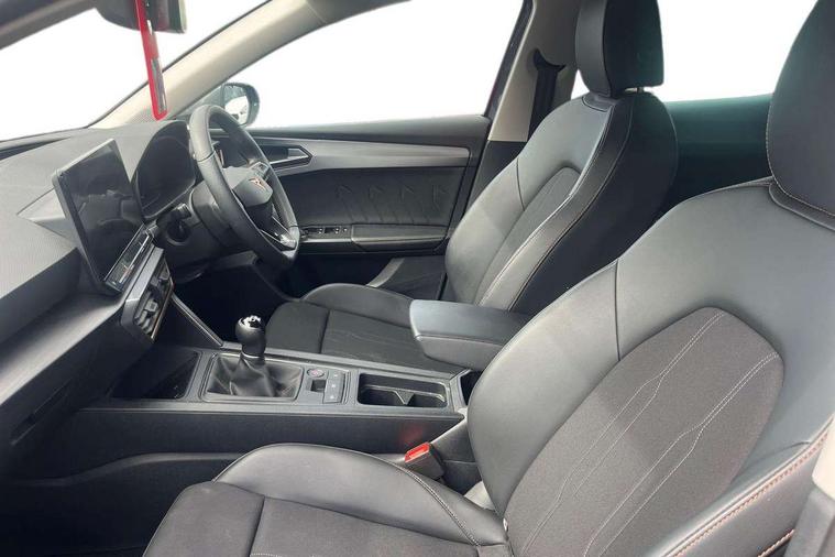CUPRA drive profile selection with (Comfort/Sport/Individual), throttle response and gearshift mode, Digital cockpit, E-call, Electro mechanical speed sensitive power steering, Four x USB Type C ports (2 in front and 2 in rear), Front assist with forward collision warning braking reaction to vehicles, pedestrians and cyclists, Full link smartphone integration with Mirror Link, wireless Apple CarPlay and wired Google Android Auto, Lane assist, Lockable tailgate, Park assist (inc front/rear parking sensors), Rear view camera, RPM, trip computer, outside temp gauge, instrument light brightness, low fuel warning light, lights on reminder, gearshift indicator, Service interval indicator, Start/stop system with regenerative braking, Wireless phone charger, Sports suspension, Auxiliary input socket, Auto dimming rear view mirror, Body colour door handles, Body coloured bumpers, Cupra sports bumpers, Dark tinted rear windows, Electric front/rear windows, Electrically adjustable, heated and folding door mirrors, LED front fog lamps with cornering function, LED headlights with dynamic turn signals, tail lights, rear fog lights with rear coast to coast lighting, Rain sensing wipers, Rear diffuser with twin exhaust pipe on each side, Rear side wing doors, Rear wash/wipe, Separate daytime running light with automatic headlight control and coming home feature, Third brake light, 12v power supply in centre console, 3 seat bench in 2nd row, 5 headrests, 60/40 split rear bench seat with armrest, Ambient lighting with glovebox, footwell and single monocolour, Cupra Leather flat bottomed, perforated steering wheel, Driver/passenger manual seat height adjustment, Folding boot cover, Front and rear reading lights X 4, Front centre armrest, Front seats manual lumbar adjustment, Grey headlining, Height/reach adjust steering wheel, Illuminated interior front door sills, ISOFIX points in outer rear seats with top tether anchorage points, Jack and tool kit, PVC/Cloth upholstery with copper stitching, Single front passenger seat, Sports seats, Sunvisors with illuminated mirror, Three zone climate control, Media system plus with navigation pack - Leon Cupra, Safety and driving pack (M) - Cupra leon, 3 point seatbelts on all rear seats, ABS, Brake control system - ESC and brake booster, Child proof door locks, Cupra black brake calipers, Driver and front passenger airbags with front passenger airbag de-activation, front side and curtain airbags, Electronic parking brake, Extended safety system - seat belt tensioner, window closure and hazard lights, Hill hold control, Rear disc brakes, Seat belt reminder for front and rear seats, Tiredness recognition system, Tyre pressure monitoring system, Anti theft alarm system with interior monitoring in cab, backup horn and towing protection, KESSY Advanced - Keyless start, keyless entry, Locking wheel bolts, Chrome and copper interior detailing, 18" Machined sport black and silver alloy wheels with 92Y tyres,