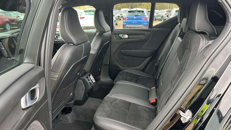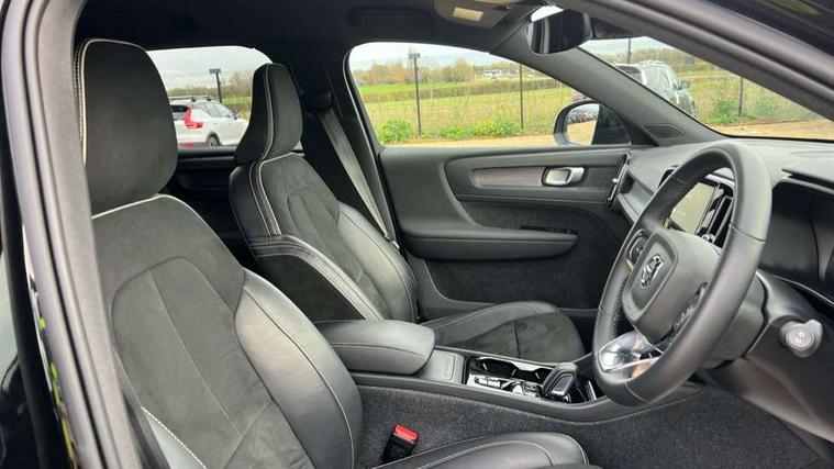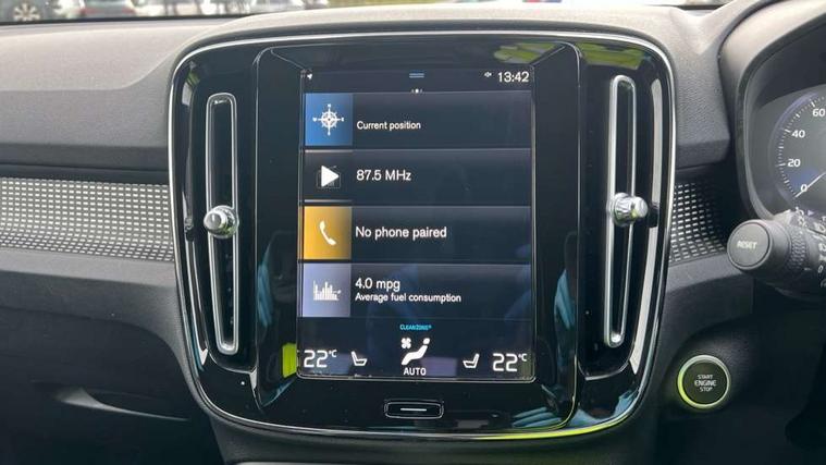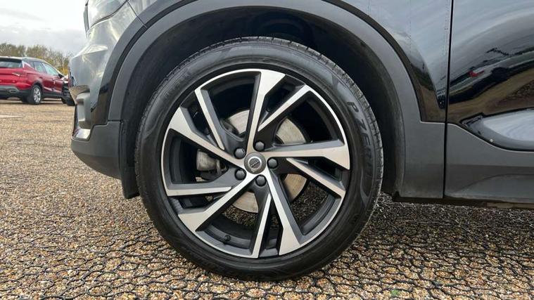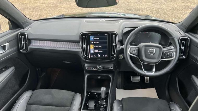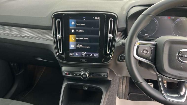 12.3" Active TFT crystal driver's instrument display, 9" centre console portrait touch screen, Adjustable steering wheel force, Bluetooth hands free telephone kit, Drive mode selector, E-call, Lane keep assist with driver alert control, Oncoming Lane Mitigation, Power operated tailgate, Sensus navigation with European mapping and traffic information, Speed limiter, Speed sensitive steering, Voice activated control for key functions, Volvo on call, Sports chassis, DAB Digital radio, Steering wheel mounted remote controls, Adaptive brake lights with high level LED brake lights, Auto dimming interior mirror, Automatic headlamp levelling, Dark tinted windows for rear door side windows and cargo compartment, Dual integrated exhaust pipes with high gloss black surround, Electric adjustable/heated/auto folding door mirrors, Front aluminium tread plates, Front and rear electric windows, Heated front windscreen, High gloss black front and rear skid plate, High gloss black lower front bumper, High gloss black mesh front grille with high gloss black surround, High gloss black sensus surround deco, High gloss black window trim, Home safe and approach lighting, Integrated roof rails in high gloss black, LED Headlights + Active high beam incorporating daytime running lights, Rain sensor with automatic windscreen wiper activation, Rear side wing doors, Rear wiper, Roof antenna, Roof spoiler, Visible VIN plate, 12V socket in front tunnel console and luggage compartment, 2 zone electronic climate control and rear air vent, 3 seat bench in 2nd row, 60/40 versatile split folding rear seat, A-pillar parking ticket holder, Bright metal luggage threshold, Centre console cupholders and storage, Charcoal headlining, Front footwell illumination, Front headrests, Front reading light and theatre lighting, Front seat cushion extensions, Front tunnel net pocket and integrated waste bin, Glovebox bag hook, Heated front seats, Height/reach adjustable steering column, Height/tilt adjustable driver's seat, High gloss centre tunnel deco, Illuminated glovebox, Illuminated luggage compartment, Illuminated vanity mirrors, Isofix attachments on outer rear seats, Leather gearknob, Load protection net, Multi directional lumbar support, Power driver seat with memory + exterior mirrors memory, Rear armrest / integral cup holders / storage tray, Rear coat hook, Single front passenger seat, Sports floor mats, Sports pedals, Sports tailored steering wheel, Underfloor cargo storage, Vanity mirror with ticket holder, Lighting pack - XC40, 3x3 point rear seatbelts, City safety includes pedestrian, cyclist and large animal detection and front collision warning with full auto brake, Drivers knee airbag, Dual stage driver/passenger airbags, Electronic parking brake with auto hold, First aid kit, Front and outer rear seatbelt reminder and pretensioners, Front seats SIPS airbags, Hill descent control, Hill start assist, Inflatable curtain, Passenger airbag cut-off device, Road sign information display, Run off Road Mitigation, Run off Road Protection, SIPS (Side Impact Protection System), Slippery road and hazard light alert, Stability and Traction Control with Spin control, Engine Drag Control and Corner Traction Control, Tyre pressure monitoring system, Vehicle deceleration control with Anti-lock Brake System, Electronic Brake Distribution and Emergency Brake Assist, Warning triangle, WHIPS whiplash protection system - front, Anti-theft alarm including immobiliser/volume sensor + level sensor, Care key with user defined top speed, Key integrated remote control central locking + fuel flap with deadlocking system and auto open/close power windows, Locking wheel nuts, Private locking for tailgate, Cutting edge aluminium inlay, Lower dashboard, tunnel console and door panel in charcoal,