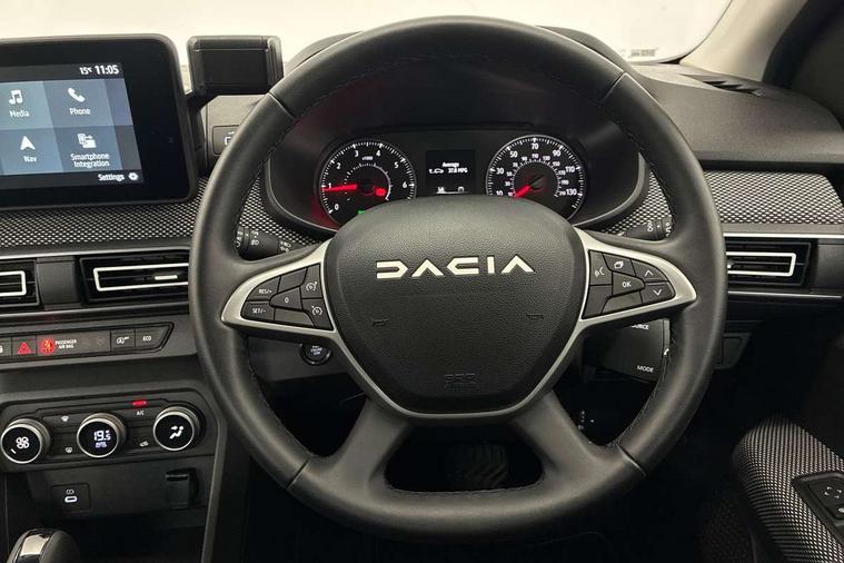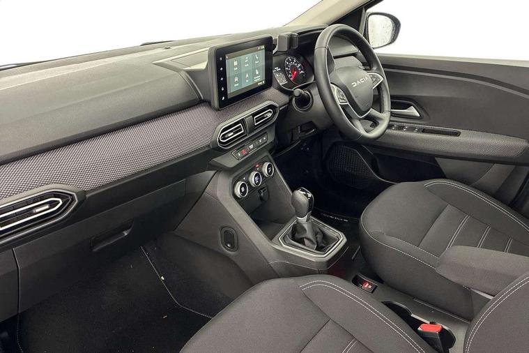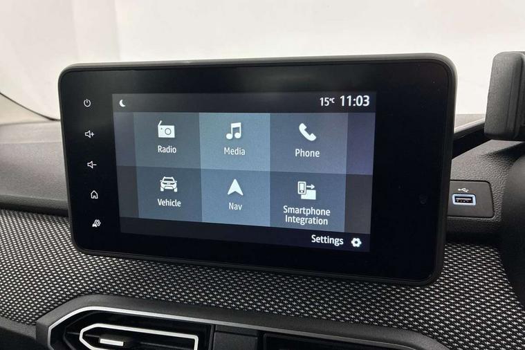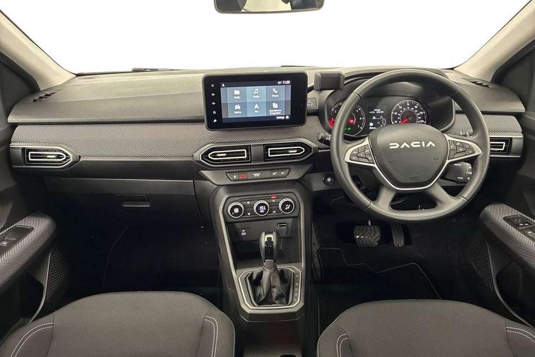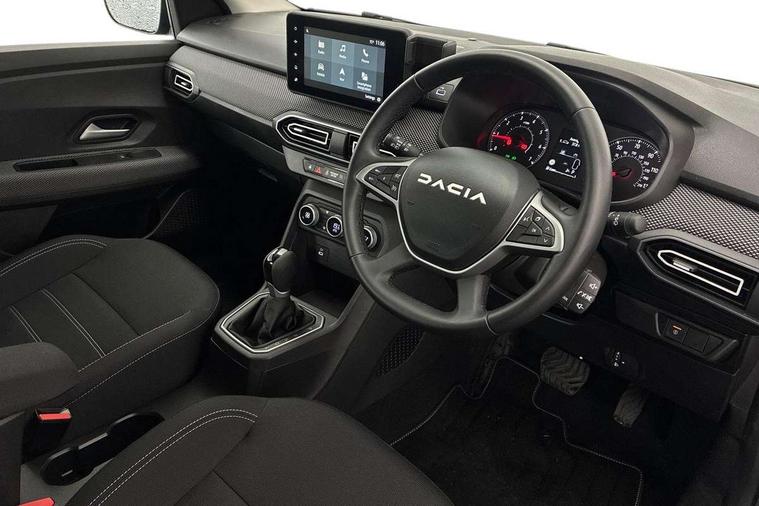 3.5" TFT instrument panel with on-board computer, Blind spot warning, Cruise control with speed limiter, Driver attention warning, eCall emergency call system, Eco mode, Electric power assisted steering, Emergency Stop Signal (ESS), Event data recoder, Front parking sensors, Lane departure warning, Lane keep assist, Rear parking sensors, Rescue code, Rev counter, Reversing camera, Speed limiter with audibe warning, Stop/start system, Traffic sign recognition with speed alert/Intelligent speed assist (ISA), 8" MediaNav - DAB Radio, smartphone replication, bluetooth, 6 Speakers, Apple CarPlay and Android Auto, Pre-wiring for radio and speakers, USB connection for data transfer and charging, USB socket, USB-C plug, USB-C plug rear, 3 speed windscreen wipers, Auto lighting, Automatic wipers, Black painted door mirrors, Black radiator grille, Body colour door handles, Door sill protection, Drivers one touch electric windows, Electrically adjustable and heated door mirrors, Front and rear body coloured bumpers, Front electric windows, Front fog lights, Heated rear window, High level third brake light, LED automatic daytime running lights, LED Y shape Dacia signature lighting, Rear electric windows, Rear side wing doors, Rear wash/wipe, Shark antenna, Tinted windows, 1/3 to 2/3 split folding rear seats, 12 volt front socket, 12 volt rear socket, 3 height adjustable rear headrests, 3 seat rear bench, Automatic air conditioning, Black titane door panels, Driver and passenger vanity mirror with cover, Fabric upholstery, Fixed smartphone holder on dashboard, Flexible trunk floor, Fog grey air vents, Fog grey interior door handles, Front ceiling light, Height adjustable drivers seat with armrest, Height adjustable front headrests, Height/depth adjustable steering wheel, High central armrest with console storage, Isofix points for child seats in both outer rear seats, Journey carpets mats, Removable phone support, Single front passenger seat, Soft feel steering wheel, Steering wheel controls, 3x3 point rear seatbelts, 6 airbags - Driver, front passenger, curtain and side airbags, ABS and Emergency brake assist, Advanced emergency braking system, Alcohol imoboliser predisposal, Automatic emergency braking system, Child locks on rear doors, Door open visual and audible warning, EBD - Electronic brakeforce distribution, Electronic parking brake, ESC (Electronic Stability Control), ESP (Electronic Stability Program) + Hill Start Assist, Front seatbelt pretensioners, Height adjustable front seatbelts, Seatbelt reminder for driver and front passenger, Side impact protection, Tyre pressure monitor, Automatic central locking, Engine immobiliser, Keyless entry, Remote central locking, Decopart on instrument panel and door with textile, 16" Alloy wheels Randia,