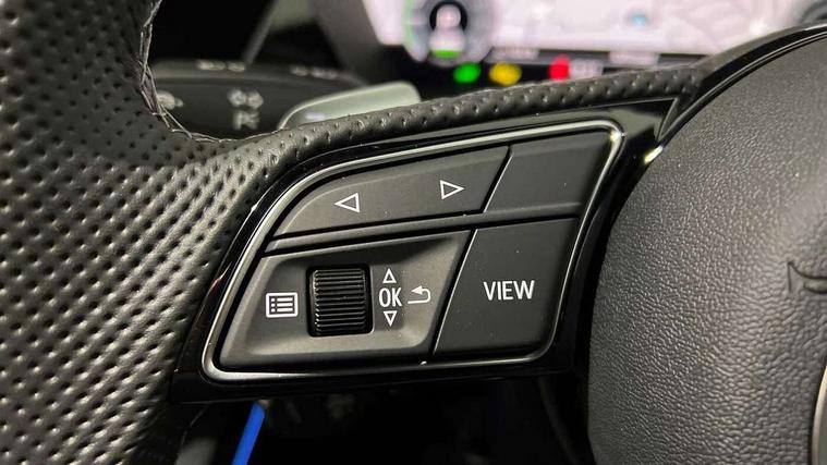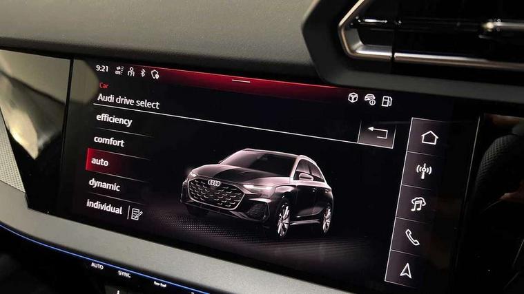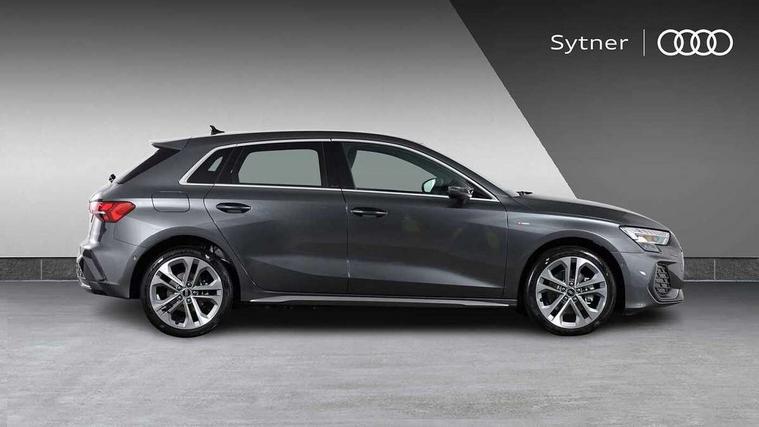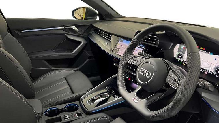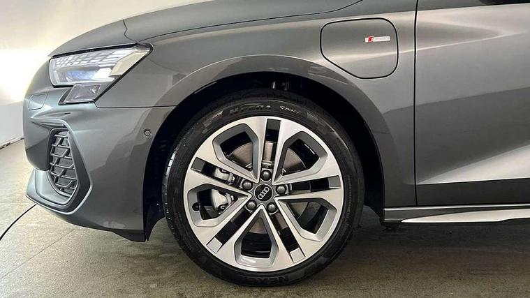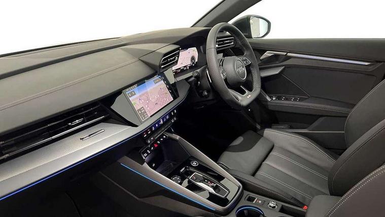Adjustable speed limiter, Audi drive select, Audi smartphone interface with app store includes wireless Apple carplay, Android auto and Amazon alexa integration, Audi virtual cockpit plus - 12.3" full HD resolution dynamic digital instrument cluster, Automatic start/stop system with recuperation, Bluetooth interface, Camera based traffic sign recognition, Collision avoidance assistant, Cruise control, Distraction and Fatigue warning, e-Call (emergency call), Electromechanical power speed sensitive steering, Emergency assist, Lane departure warning system, MMI Navigation Plus with high resolution 10.1" colour touch screen display, Park Assist with parking system Plus, Service indicator, Trip computer, Voice control system with natural language interaction, 3 pin 10 amp domestic charging cable, CCS socket for DC charging, Charging cable for public charging, mode 3 (type 2), 32 A, Compact charging system, Industrial connector CEE 32 A, 230 V, length 1.6 m, Standard suspension, Type 2 socket for AC charging, Audi Phonebox light with wireless charging, Audi sound system - 10 loudspeakers including centre loudspeaker and subwoofer, DAB Digital radio, USB ports with charging function in the rear, Acoustic glass windscreen, All weather light, Aluminium window trim, Auto dimming frameless rear view mirror, Automatic dynamic range control, Body colour exterior mirrors, Chrome exhaust tailpipes, Dipped beam, main beam, position light and turning light, Electrically adjustable/heated/folding/auto dimming door mirrors with integrated LED indications + kerb view function for passenger side, Exterior model badging, Front and rear side air inlets in grained matt black with dark liquid chrome frame, Front electric windows, Front radiator grill in high gloss dark chrome, Heat insulating glass windscreen, Illuminated door sills with aluminium inserts at the front with S logo, Intersection light, LED 3rd brake light, LED brake lights, LED daytime running x3, LED headlights with LED rear lights and dynamic rear indicators, LED rear number plate lights, LED reverse light, LED tail lights, Light and rain sensors, Manoeuvring light, Motorway light, Privacy glass - dark tinted rear window, rear door and side windows, Rear diffuser and grill in grained matt black with inlay in dark liquid chrome, Rear electric windows, Rear side wing doors, Rear wiper, S line bumpers, S roof spoiler, Side S line emblems on front wings, Side sill trim in dark liquid chrome, Static Cornering lights, 12V socket and storage compartment in front centre console, 3 seat bench in 2nd row, 3 spoke flat bottomed leather multifunction sport steering wheel with gear shift paddles, 3-zone deluxe automatic air conditioning, 4 way electrically adjustable lumbar support for driver and front passenger, 40/20/40 split folding rear seat bench, Black cloth headlining, Black front and rear floor mats, Convenience auxiliary air conditioning, Front and rear centre armrest in artificial leather with contrasting stitching on armrests and instrument panel, Front and rear headrests, Heated front seats, Height and reach adjustable steering wheel, Manual boot compartment lid, Manually adjustable front seats, Rear centre armrest with cupholder, S badging on the steering wheel, Seat side bolsters, Single front passenger seat, Stainless steel pedals and front footrest in black, Twin leather upholstery with front sports seats S embossed logo, Aluminium interior elements pack - A3, Multi-coloured LED interior lighting package with Multi-coloured contour lighting of instrument panel - A3, 3x3 point rear seat belts, Acoustic vehicle alerting system, Driver and front passenger airbag with passenger airbag deactivation, Electronic Stabilisation Control (ESC) including ABS, ASR and EDL, First aid kit with warning triangle and 2 safety vests, Front side airbags with head airbags and interaction airbag, Hill hold assist, Pre-sense front with pedestrian and cyclist detection, Seatbelt monitoring, Tyre pressure loss indicator, Anti theft alarm, Anti-theft wheel bolts, Electronically operated child locks, Immobiliser, Remote central locking with safelock, Black dashboard, Inlay in dark aluminium spectrum, Tyre repair kit,