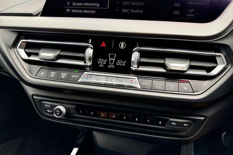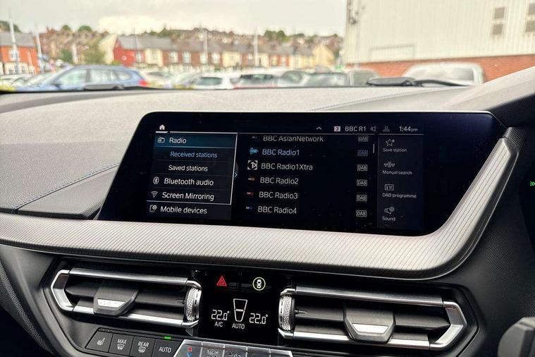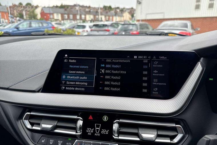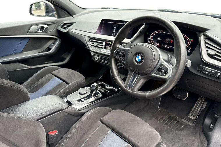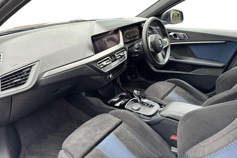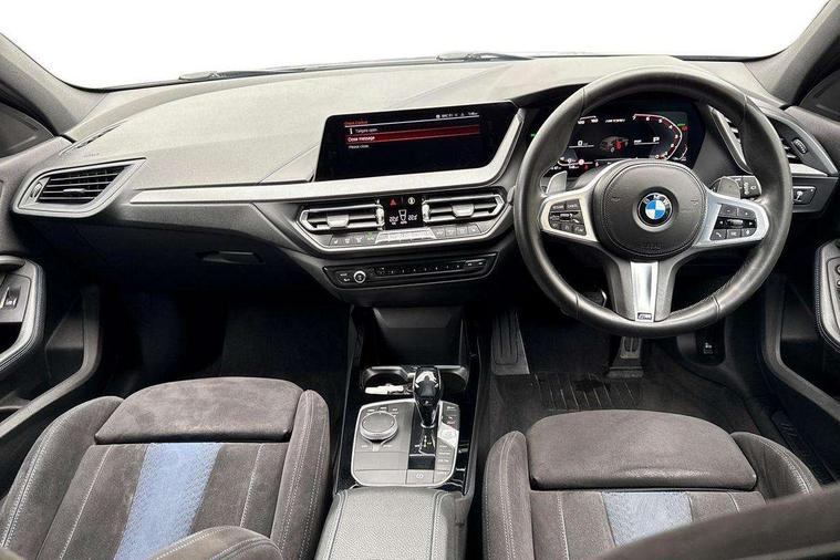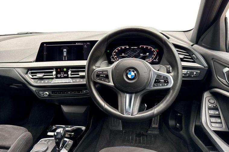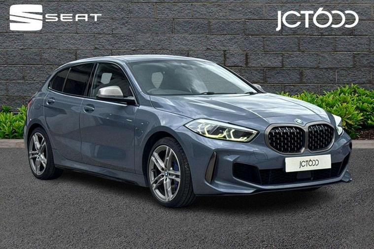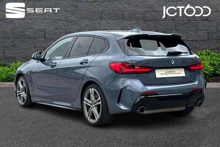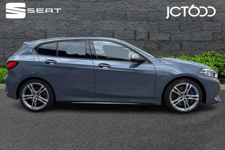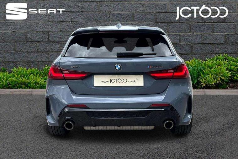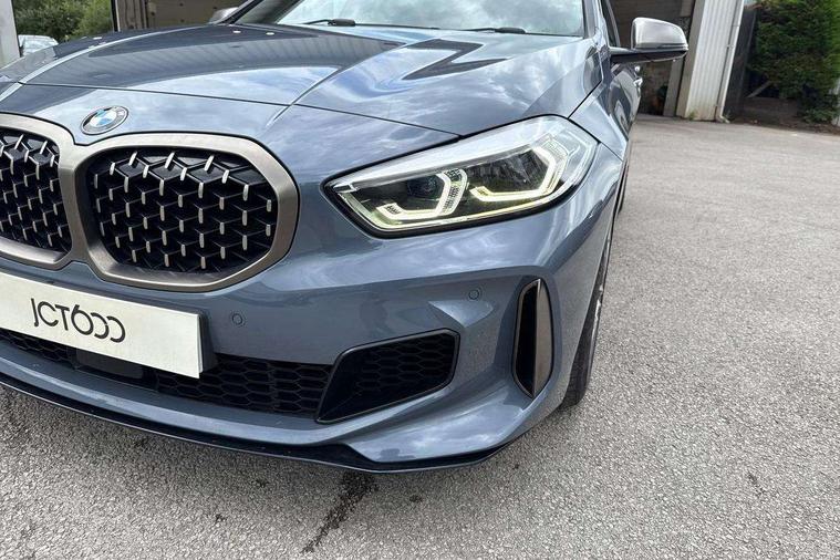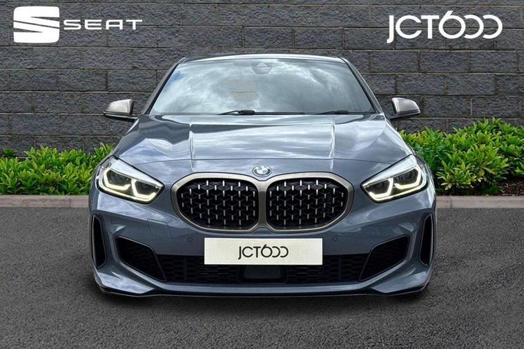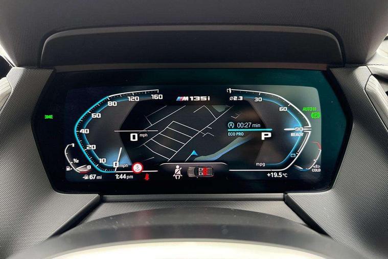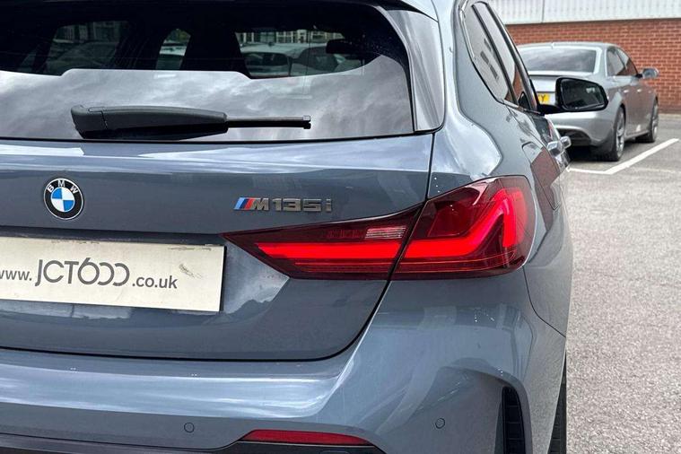 Active guard plus, Attentiveness assist, BMW Live Cockpit Professional sat nav system including 10.25" high resolution display and Intelligent Voice Assistant, BMW Online services, BMW Teleservices, Check Control warning system for monitoring of lights and door/luggage compartment open warning, Eco pro mode, Gearshift time display in manual mode, Integrated owners handbook, M Sports steering, Oil sensor for level and grade, On board computer, Optimum shift indicator, Personal Profile, Pull away assistant, Speed limiter, Sporty fast gear shifting in sport mode, Aluminium lightweight construction, Anti roll bar front and rear, Balancer shaft, Double VANOS, Drive Performance Control, Eight speed sport automatic transmission with electronic selector lever, Electronic differential lock, Engine cover with M performance designation, High precision injection, Larger fuel tank capacity (50 litres), Launch control, Petrol Particulate Filter, VALVETRONIC engine management, Bluetooth audio streaming, DAB Digital radio, Auto dimming rear view mirror, Automatic headlight beam throw control, Body colour door handles, Cerium grey exterior mirror caps, Direction indicator side lights in exterior mirrors, Electric folding and anti dazzle exterior mirrors, Fading support, Follow me home headlights, Front and rear electric windows with open and close fingertip control, anti trap facility and comfort closing, Front door sill finishers with M135i designation, Green tinted heat protection glazing, Heated, electrically adjustable exterior mirror aspheric on driver side, convex on passenger side, High gloss shadow line exterior trim, High gloss shadowline window frame, Recess cover mirror frames and B/C pillar embelisher trim, High level third brake light, Kidney grille frame in Cerium Grey with Mesh design, LED daytime running lights, LED eyebrow turn indicators, Lightweight engineering, M logo designation side in cerium grey, M performance exhaust system, M rear spoiler, Matt black air guide grilles, Model designation on right side of tailgate, Nearside reverse light in rear light cluster, Rain sensor including auto headlights activation, Rear fog lights, Rear window wiper, Round exhaust system with twin cerium grey tailpipes in left and right split, Shark fin antenna, Visible VIN plate, Welcome lighting, Windscreen wipers with integrated washing jets, 12V power socket in centre console, 2 cupholders in front centre console, 3 rear seat head restraints, 3 spoke M sports design leather steering wheel finished in nappa leather with specific M badge, Anthracite headlining, Anthracite Velour floor mats, Child seat ISOFIX attachment for two outer rear seats and front passenger seat with anchorage points, Conditioned based service, Driver and front passenger seat heating, Driver side folding compartment in instrument panel, Folding rear clothes hook, Folding rear seats, Four grab handles integrated in roof lining, Front and rear door pockets, Front and rear side armrest integrated into door trim, Front armrest foldable with integrated storage compartment, Front M seats, Glove compartment, Height adjustable front head restraints, Manual adjust steering wheel, Multi-function controls for steering wheel, Rear seat backrest with manual 60:40 split folding with 3 top tether clips integrated on rear of seat panels, Storage compartment in centre console, Sun visors with vanity mirrors and insert tab, Two zone automatic air conditioning, Connected pack professional - 1 Series, Extended Lighting pack - 1 Series M135i, Extended storage pack - 1 Series, Interior lights pack - 1 Series, Luggage compartment pack - 1 Series, M Sport exterior styling aerodynamics pack - 1 Series 135i, 2 tone horn, 3 point seatbelts on all seats, front pyrotechnic belt tensioners, stopper and belt force limiters, rear coded belt buckles, Airbags - Front driver and passenger, front and rear head, front side, curtain head protection, Anti lock braking system (ABS) with brake assist, BMW emergency call, Brake drying, Braking readiness, Crash sensor activating central locking release, hazard warning lights, fuel cut off, interior lighting + activation of safety battery terminal clamp, Driver and front passenger seat belt security check, Dynamic stability control + (DSC+), Dynamic Traction Control - DTC, Electrically operated hand brake, Front and rear disc brakes, Front passenger manual airbag deactivation, M Sport braking system, M sport seatbelt, Rear child proof door locks, Seatbelt warning, Side impact protection, Torsen mechanical limited slip differential, Tyre pressure monitoring system, Warning triangle and first aid kit, Automatic drive away locking facility, Central locking switch for all doors, fuel filler cap and luggage compartment, Deadlocking function system to all doors, Locking wheel bolts, Remote control with integrated key with High-gloss Black inlay and M designation and 1 button for open/ close lock, window, open luggage compartment, Start/stop button with comfort go keyless engine start and auto start stop deactivation button, Thatcham Cat.1 alarm and immobiliser, Contrast stitching on instrument panel, 18" Burnished M double spoke Bi-colour alloy wheels finished in Cerium grey matt - style 556M, BMW mobility system, Reduced rolling resistance tyres,