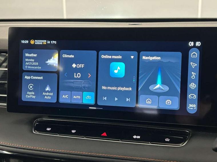 Driver attention alert, 12.3" colour touchscreen, 12.3" Virtual driver information display, 360 degree parking camera, Adaptive cruise control, Android Auto, Apple CarPlay, Blind spot detection, Bluetooth connectivity, Driver memory function, Emergency call service, Forward collision warning, Front parking sensors, Intelligent speed limit assist, iSmart, Lane change assist, Lane keep assist system (LAS) with Lane departure warning system (LDWS), Live services, PAS, Power tailgate, Rear cross traffic alert, Rear parking sensors, Satellite navigation system, Traffic jam assist, Trip computer, Wireless charging, 4 USB ports 2 front and 2 rear, 8 Speaker audio system, DAB audio, Auto dimming rear view mirror, Automatic headlights, Electric adjustable/heated/folding door mirrors with memory, Follow me home headlights, Front and rear aero wiper, Front and rear electric windows with one-touch up/down, Front fog lights, Intelligent high beam, LED 3rd brake light, LED daytime running lights, LED Headlights, LED rear lights, Rain sensing wipers, Rear privacy glass, Rear side wing doors, Silver roof rails, Vehicle to Load, 12V power sockets, 2nd row 60/40 split fold seat, 3 rear headrests, 3 seat bench in 2nd row, 3 stage heated front seats, 4 way electric adjustable passenger seat, 6 way electric adjustable drivers seat + lumbar support, Dual zone automatic air conditioning, Front and rear reading lights, Front centre sliding armrest with storage compartment, Front headrests, Height and reach adjustable steering wheel, ISOFIX restraints on outer rear seats x2, Multi function steering wheel, Single passenger seat, 3x3 point rear seatbelts, ABS/EBD, Active emergency braking with pedestrian/Bicycle detection, Anti rolling protection, Door open warning, Drivers seatbelt reminder, Dual front airbags, Electric parking brake with auto hold function, ESP, Front and rear passenger seat belt reminder, Front centre airbag, Front passenger airbag deactivation switch, Front seat belt height adjuster, Front seatbelts (3-point + pretensioner + load limiter), Front side airbags, Hill descent control, Hill launch assist, Manual rear child locks, Rear outer seatbelt pretensioner and load limiter, Side curtain airbags, Tyre pressure monitoring system, Alarm system and engine immobiliser, Keyless entry and push button start system, Remote central locking, Speed sensing door locks, 19" Blade diamond cut alloy wheels, Tyre repair kit,