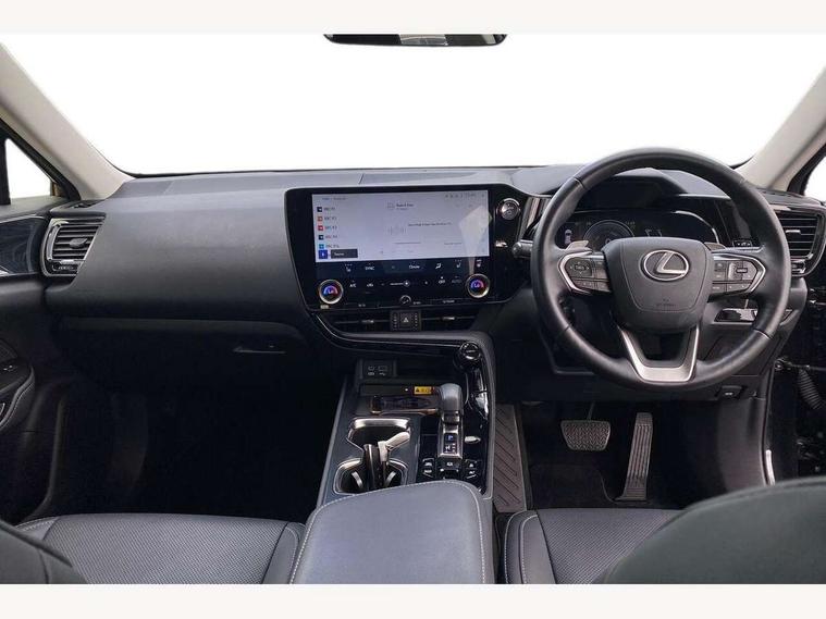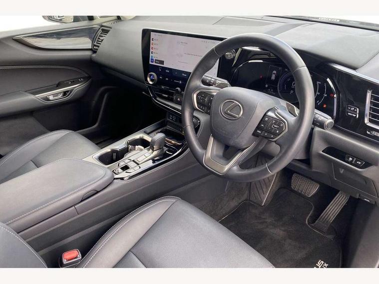 4 driving modes EV/Eco/Normal/Sport, 7" display in instrument binnacle, Blind spot monitoring with rear cross traffic alert, Bluetooth telephone connectivity, eCall emergency system, Electric speed sensitive power steering, Intelligent parking sensors - 4 front and 4 rear, Lane change flasher function, Lexus link connect - Cloud based navigation, cloud based voice assistant, always online and 9.8" VGA touchscreen, Push button starter, Reversing camera with back guidelines, Service interval indicator, Tailgate, Wireless Apple CarPlay and wired Android Auto, Wireless Smartphone charger, 6.6 kW onboard charger, All Wheel Drive (AWD), Hybrid automatic transmission, Vehicle Dynamics Integrated Management (VDIM), Vehicle Stability Control (VSC), 10 speakers, 4 USB ports - 2 front, one USB C, 2 rear USB C, DAB Digital radio, Auto dimming interior rear view mirror, Automatic headlights, Bi LED headlights, Double hidden exhaust pipes, Front and rear one touch power windows, with anti-jam protection, Heated, auto-folding, auto-dimming outside mirrors with reverse tilt function and turn indicators, Illuminated door handles with puddle light, LED brake lights and rear lights with emergency brake signal, LED cornering lights, LED daytime running lights, LED front fog lights, LED Indicators, Power back door with kick sensor, Privacy glass, rear doors and tailgate, Rain sensor windscreen wipers, Rear side wing doors, Rear wiper, Roof rails, 12V accessory port centre console and luggage compartment, 2 cupholders in front centre console, 2 way electrical lumbar adjustment for driver, 2 x fixed shopping bag hooks in boot, 2 x sun visors with vanity mirror and lamp, 3 seat bench in 2nd row, 4 x tie down hooks in the boot, 60/40 split folding rear seat, 8 way driver/passenger electrically adjustable front seats, Adjustable rear seat backrest, Card holder installed in driver and passengers sun visors, Centre armrest with storage box, Dual climate control air conditioning system, Front and rear head restraints, Front and rear textile carpet mats, Front passenger seat, Heated front seats, Heated steering wheel, Leather gear lever, LED interior illumination, Power adjustable leather steering wheel with paddle shifts, Premium Tahara leather upholstery, Rear centre armrest with 2 cupholders, Whiplash Injury Lessening (WIL) feature (active headrest) for seats, 2 x Isofix child rear seat restraints, 3 point ELR front seatbelts with pretensioners, 3x3 point rear seat belts, ABS, Adjustable seat belt anchor points, Driver and front passenger 2 stage airbag, Driver/front passenger side airbags, Drivers knee airbag, E-Latch with safe exit assist, EBD + Brake Assist, ECB (Electronically Controlled Brake System), Electronic parking brake, Front and rear curtain shield airbags, Front center airbag, Front passenger seat cushion airbag, Hill assist control, Lexus safety system - dynamic radar cruise control, pre collision system day and night, lane tracing assist, road sign, automatic high beam, OTA, Manual rear child locks, Passenger airbag cut-off device, Traction control, Tyre pressure warning, Anti-theft system with alarm, intrusion sensor, glass breakage sensor, tilt sensor and engine immobiliser, Locking wheel nuts, Smart keyless entry, Speed sensitive auto door locking, Two motion door lock with double lock, Ultra Wide Band (UWB) Anti-theft system, VIN Window etching, 3D prism black Inlay, Organic inlay, Tyre repair kit,