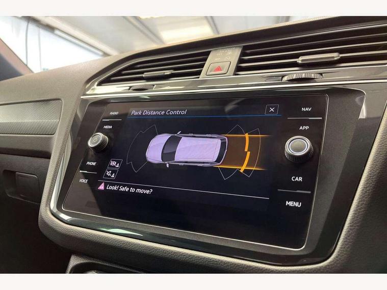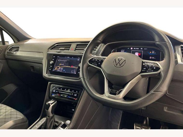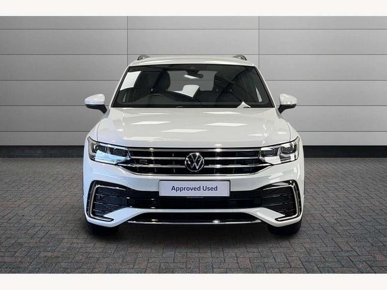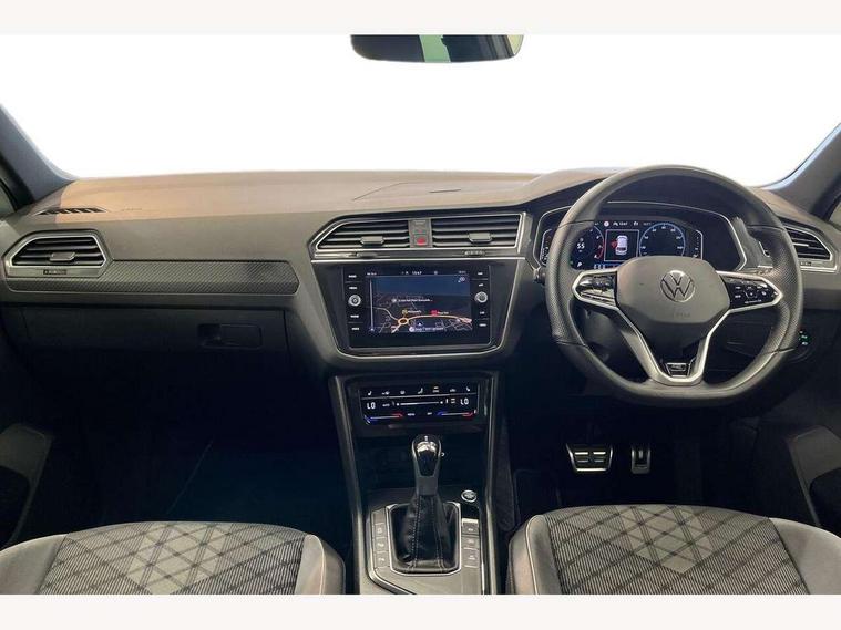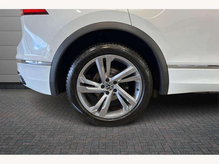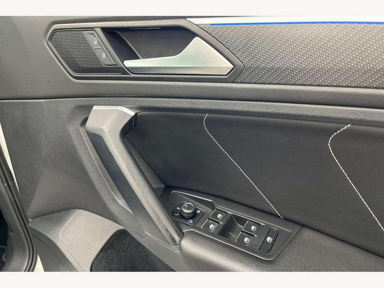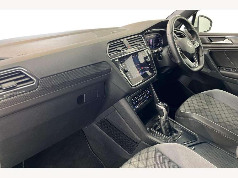 Adaptive cruise control ACC stop and go including speed limiter, App-Connect incl. App-Connect Wireless for Apple CarPlay and Android Auto, Bluetooth phone integration system, Comfort drive travel assist, Digital cockpit pro, Driver alert system, Driver profile selection, Dynamic road sign display, eCall emergency call system, Electromechanical speed sensitive power steering, Emergency assist, Front and rear parking distance sensors, Instrument cluster mph speedometer Great Britain, Lane keeping system Lane Assist, Lights on warning, Multifunction front facing camera, Outside temperature display, Premium multifunction display with multi colour display, Preparation for subsequent activation Navigation feature Discover Media includes Streaming and Internet, Remote control boot opening, Rev counter, Service interval indicator, Speed limit display, Start/stop system with regenerative braking, Tailgate/trunk lid unlocking from outside, Trip computer, Warning sound and light for doors and tailgate open, Battery regeneration during braking, Sports suspension, 8 Speakers, Digital radio reception DAB+, Diversity antenna for FM reception, Radio, Auto dimming interior rear view mirror, Automatic headlight control system, Body colored bumpers in R-Line style, Body colored exterior mirror housings, Body colour door handles, Chrome moldings on the side windows, Coming/leaving home lighting function, Dynamic headlight range control, Front and rear electric windows, Heated rear window, High level 3rd brake light, Laminated safety glass windshield, heat and sound insulating, LED headlamps with LED separate daytime running light and dynamic cornering light, LED rear combination lamps, LED rear number plate lights, License plate carrier in front and rear, Poor weather light and cornering light, Power adjustable, folding and heated door mirrors with surround lighting, front passenger exterior mirror lowering function, Privacy glass for rear side windows and rear window, R Line body kit, R Line side sills, Rain sensor, Rear exhaust tailpipe, Rear fog lamp, Rear side wing doors, Rear spoiler in R style, Rear windscreen washer and wiper with interval delay, Side and rear windows in heat insulating glass, Trailer Stability Programme, Unique R Line badging, Windscreen wipers/ intermittent wipe + 4 position delay, 12V outlet in center console rear and in luggage compartment, 12V outlet in front and tray, 2 LED front reading lights, 2 LED rear reading lights, 3 bench rear seats in 2nd row, 3 rear headrests, Air Care Climatronic 3 zone automatic climate control with enhanced air filter and controls in the rear, Art Velours greyson sports cloth upholstery, Backrest release for left front seat, Black headlining, Brushed stainless steel pedals and footrest, Carpet mats in front and rear with decorative stitching in Gray, Climate control unit rear with touch function, Door and side trim panel in foam film, insert in leatherette, Driver + front passenger lumbar support, Front footwell illumination, Front scuff plates in aluminum with R-Line logo, Front seats head restraints (x-adjustment), Height adjustable front seats, Height/reach adjust steering wheel, Isofix Preparation 2 Rear child seats, Leather gear knob, Rear bench seat asymetrically split folding, longitudinally movable and folding with load-through hatch and center armrest, Remote unlocking for rear seat backrest, Single front passenger seat, Sun visors with illuminated vanity mirrors, Top front comfort seats, Winter pack - Tiguan, 3 point seat belt for centre rear seats, 3 point seat belts with seat belt pretensioners for the outer rear seats, Curtain airbags for front and rear passengers, Driver/Front Passenger airbags, Drivers knee airbag, Electronic parking brake with auto hold, Electronic Stability Control with driver steering recommendation, ABS, ASR, EDL, EDTC and trailer stabilization, Front assist with autonomous emergency braking (for Adaptive Cruise Control ACC up to 130 mph), Front disc brakes, Front passenger airbag deactivation, Front side airbags, Height adjustable front 3 point seatbelts + pretensioners, Manual child proof rear door locks, Pedestrian monitoring system, Proactive passenger protection system in combination with front assist, Rear disc brakes, Two tone horn, Tyre pressure loss indicator, Warning sound and light for front seat belts if unfastened, Warning triangle, Anti theft alarm system with interior monitoring, backup horn and towing protection, Anti theft wheel bolts, Electronic engine immobiliser, Keyless locking and starting system keyless access with safelock, Chrome elements on the mirror switch power window switches and door pulls, Decorative inserts Carbon Gray for dashboard and front door trim panels, Interior door handle in matte chrome, 19" Valencia alloy wheels with AirStop tyres, Tool kit, Tyre mobility kit Includes 12V compressor and tyre sealant,