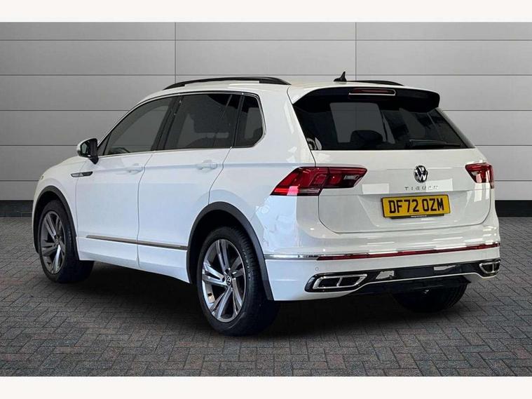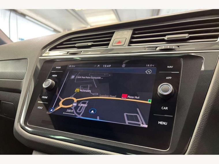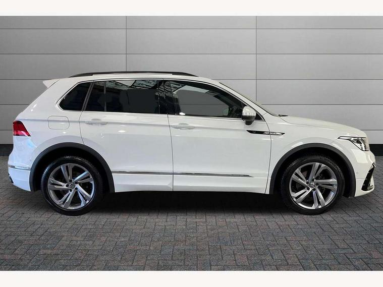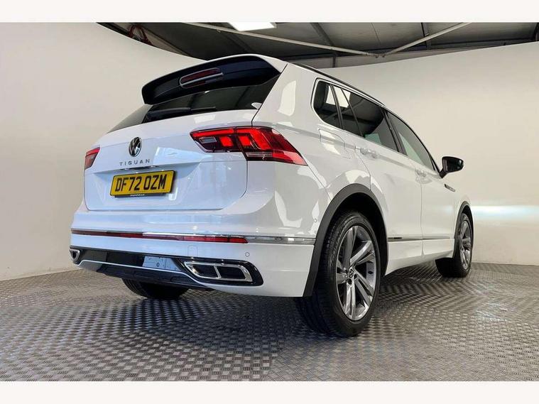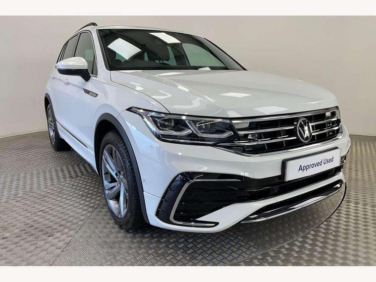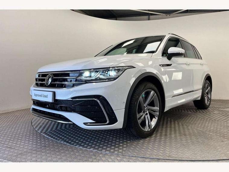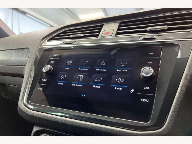 Adaptive cruise control ACC stop and go including speed limiter, App-Connect incl. App-Connect Wireless for Apple CarPlay and Android Auto, Bluetooth phone integration system, Comfort drive travel assist, Digital cockpit pro, Driver alert system, Driver profile selection, Dynamic road sign display, eCall emergency call system, Electromechanical speed sensitive power steering, Emergency assist, Front and rear parking distance sensors, Instrument cluster mph speedometer Great Britain, Lane keeping system Lane Assist, Lights on warning, Multifunction front facing camera, Outside temperature display, Premium multifunction display with multi colour display, Preparation for subsequent activation Navigation feature Discover Media includes Streaming and Internet, Remote control boot opening, Rev counter, Service interval indicator, Speed limit display, Start/stop system with regenerative braking, Tailgate/trunk lid unlocking from outside, Trip computer, Warning sound and light for doors and tailgate open, Battery regeneration during braking, Sports suspension, 8 Speakers, Digital radio reception DAB+, Diversity antenna for FM reception, Radio, Auto dimming interior rear view mirror, Automatic headlight control system, Body colored bumpers in R-Line style, Body colored exterior mirror housings, Body colour door handles, Chrome moldings on the side windows, Coming/leaving home lighting function, Dynamic headlight range control, Front and rear electric windows, Heated rear window, High level 3rd brake light, Laminated safety glass windshield, heat and sound insulating, LED headlamps with LED separate daytime running light and dynamic cornering light, LED rear combination lamps, LED rear number plate lights, License plate carrier in front and rear, Poor weather light and cornering light, Power adjustable, folding and heated door mirrors with surround lighting, front passenger exterior mirror lowering function, Privacy glass for rear side windows and rear window, R Line body kit, R Line side sills, Rain sensor, Rear exhaust tailpipe, Rear fog lamp, Rear side wing doors, Rear spoiler in R style, Rear windscreen washer and wiper with interval delay, Side and rear windows in heat insulating glass, Trailer Stability Programme, Unique R Line badging, Windscreen wipers/ intermittent wipe + 4 position delay, 12V outlet in center console rear and in luggage compartment, 12V outlet in front and tray, 2 LED front reading lights, 2 LED rear reading lights, 3 bench rear seats in 2nd row, 3 rear headrests, Air Care Climatronic 3 zone automatic climate control with enhanced air filter and controls in the rear, Art Velours greyson sports cloth upholstery, Backrest release for left front seat, Black headlining, Brushed stainless steel pedals and footrest, Carpet mats in front and rear with decorative stitching in Gray, Climate control unit rear with touch function, Door and side trim panel in foam film, insert in leatherette, Driver + front passenger lumbar support, Front footwell illumination, Front scuff plates in aluminum with R-Line logo, Front seats head restraints (x-adjustment), Height adjustable front seats, Height/reach adjust steering wheel, Isofix Preparation 2 Rear child seats, Leather gear knob, Rear bench seat asymetrically split folding, longitudinally movable and folding with load-through hatch and center armrest, Remote unlocking for rear seat backrest, Single front passenger seat, Sun visors with illuminated vanity mirrors, Top front comfort seats, Winter pack - Tiguan, 3 point seat belt for centre rear seats, 3 point seat belts with seat belt pretensioners for the outer rear seats, Curtain airbags for front and rear passengers, Driver/Front Passenger airbags, Drivers knee airbag, Electronic parking brake with auto hold, Electronic Stability Control with driver steering recommendation, ABS, ASR, EDL, EDTC and trailer stabilization, Front assist with autonomous emergency braking (for Adaptive Cruise Control ACC up to 130 mph), Front disc brakes, Front passenger airbag deactivation, Front side airbags, Height adjustable front 3 point seatbelts + pretensioners, Manual child proof rear door locks, Pedestrian monitoring system, Proactive passenger protection system in combination with front assist, Rear disc brakes, Two tone horn, Tyre pressure loss indicator, Warning sound and light for front seat belts if unfastened, Warning triangle, Anti theft alarm system with interior monitoring, backup horn and towing protection, Anti theft wheel bolts, Electronic engine immobiliser, Keyless locking and starting system keyless access with safelock, Chrome elements on the mirror switch power window switches and door pulls, Decorative inserts Carbon Gray for dashboard and front door trim panels, Interior door handle in matte chrome, 19" Valencia alloy wheels with AirStop tyres, Tool kit, Tyre mobility kit Includes 12V compressor and tyre sealant,