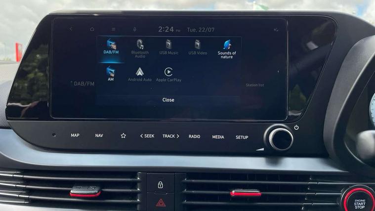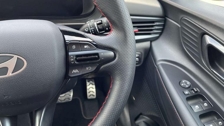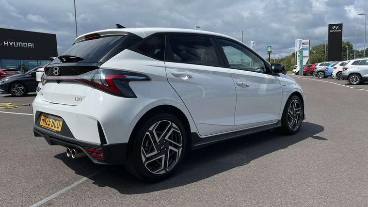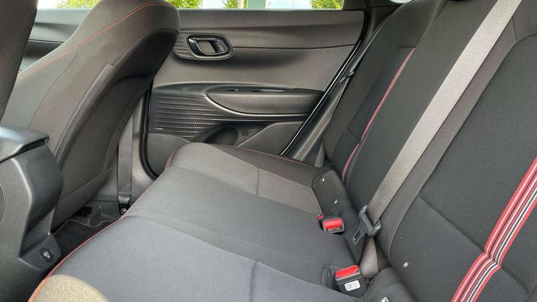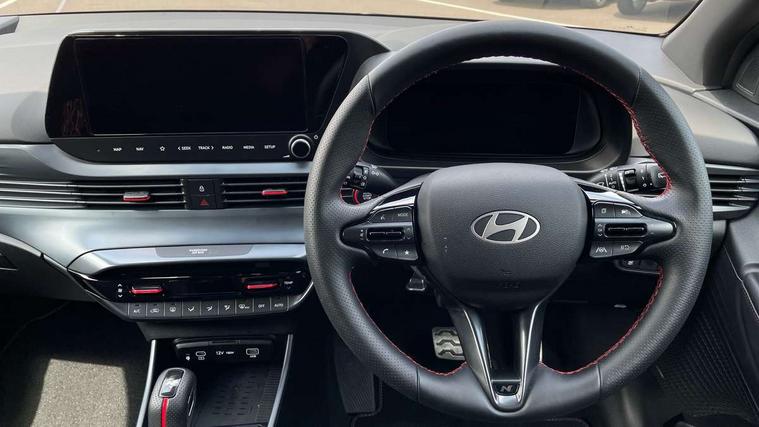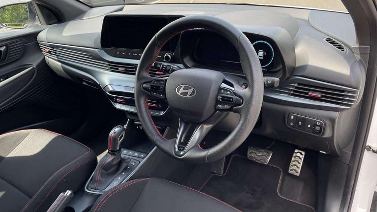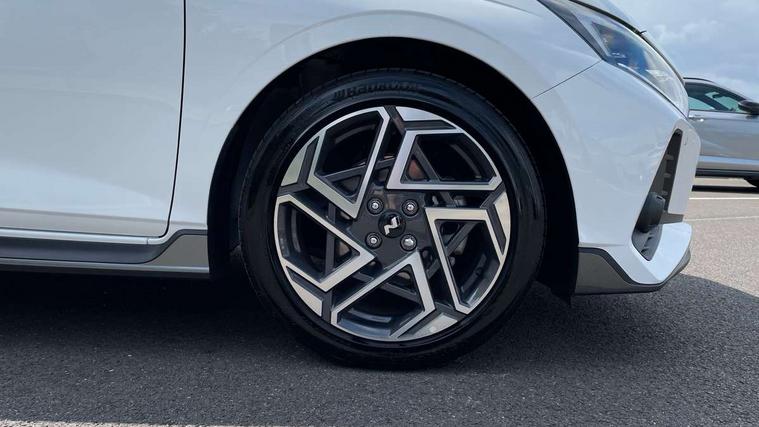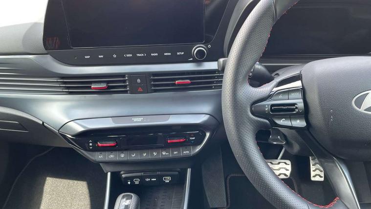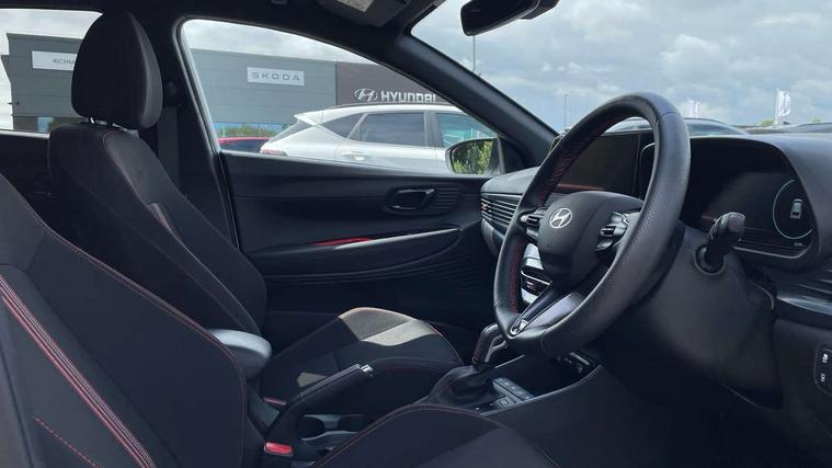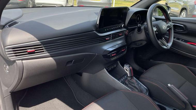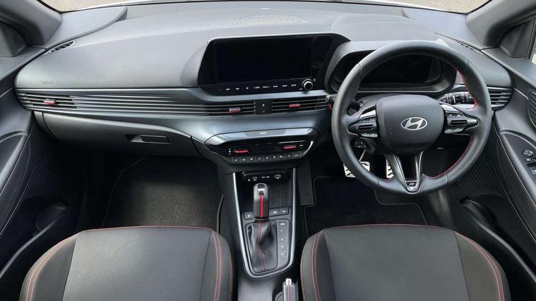 10.25" Touchscreen satellite navigation including mapcare and live services, 2nd Gen eCall, 8" Touchscreen DAB Radio with android auto and apple carplay, Apple car play/Android Auto, Driver's supervision instrument cluster with 10.25" LCD display, E-call, Forward collision assist with car, pedestrian and cycle detection, Front parking sensor, Intelligent speed assist, Lane follow assist, Lane keep assist, MAP OTA updates, PAS, Rear parking sensor, Rear view camera with dynamic guidelines, Wireless charging pad, Bose premium sound system, USB C and USB A ports in front, USB C Port in rear, Automatic defog system for front windscreen, Automatic dimming rear view mirror, Automatic headlights with dusk sensor, Automatic windscreen wipers, Body colour door handles, Electric front and rear windows, Front fog lights, Heated door mirrors with electric adjustment and power folding function, High beam assist, LED daytime running lights, LED Headlights, LED positioning lights, LED taillights, Privacy glass - Rear windows and tailgate, Rain sensor, Rear roof spoiler with integrated LED brake light, Rear side wing doors, Rear wiper, Repositioned flat metal hyundai emblem, Shark fin antenna, Windscreen with acoustic film, 3 seat bench in 2nd row, Adjustable head restraints, Air conditioning climate control, Automatic de-fog system for front windscreen, Cloth upholstery, Driver and passenger illuminated vanity mirrors with driver ticket holder, Floor mats, Front cup holder, Heated front seats, Heated steering wheel, Height adjustable driver's seat, Isofix, Leather wrapped steering wheel and gear knob, Luggage hooks, Multi colour ambient lighting, Rear Seats - Split Folding (60/40), Single front passenger seat, Sport metal pedals, Steering wheel remote controls, Tilt and telescopic steering wheel adjustment, 3x3 point rear seatbelts, Anti-lock brake system (ABS), Autonomous emergency braking, Child locks on rear doors, Driver and front passenger airbags, Rear seat alert, Side and Curtain airbags, Tyre pressure monitoring system, Immobiliser, Smart key with keyless entry and engine start/stop button, 17" N Line black alloy wheels, Tyre repair kit,