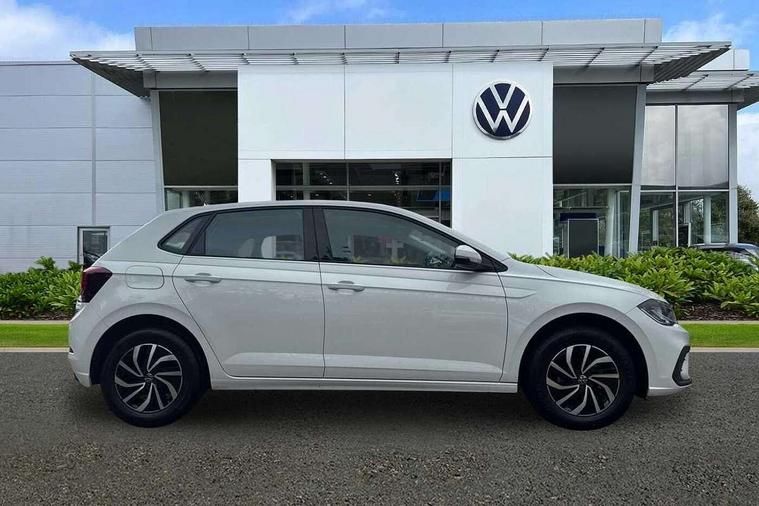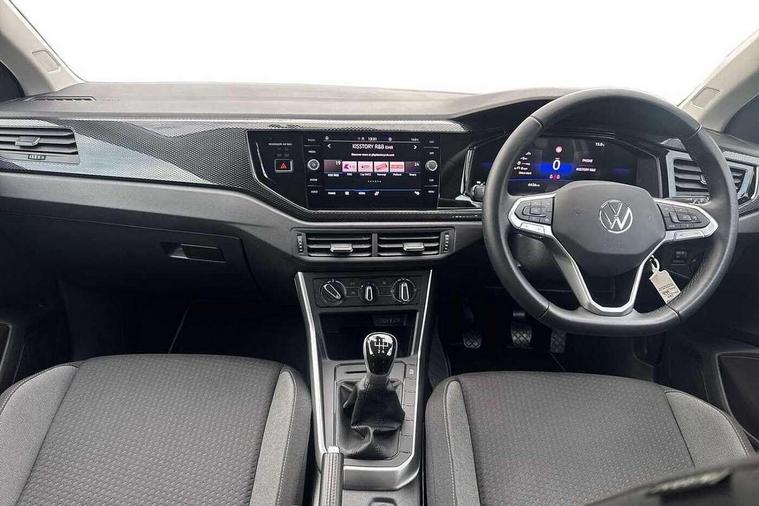 Advanced driver attention and drowsiness monitor, Bluetooth mobile phone interface, Cruise control + speed limiter, Dynamic road sign display, Emergency call service, Lane keeping system Lane Assist, Multifunction camera, Power assisted speed sensitive steering, Preparation for navigation system with media and internet package, Preparation for We connect and We connect plus, Speedo and rev counter, electronic odometer, trip, service interval display and exterior temperature gauge, Standard rear axle, Trip computer, Warning signal and warning light for front and rear seatbelts not fastened, Washer fluid level indicator, Wireless app connect, Front wheel drive, Rear shock absorpion, Start-stop system with battery regeneration (recuperation - energy recovery during braking), DAB Digital radio, Diversity antenna for FM reception, Front and rear 6 speakers, Automatic dimming interior rear view mirror, Automatic headlight control with LED separate daytime running lights with coming/leaving home function, Body colour bumpers with chrome inserts, Body colour door handles, Body colour door mirrors, Electric front windows, Engine badge deletion, Headlight range adjustment, Heat insulating and laminated safety glass windshield, LED Headlights, LED rear combination lamps, Power folding adjustable/heated exterior mirrors and front passenger exterior mirror lowering function, Rain sensor, Rear electric windows, Rear fog light, Rear side wing doors, Rear windscreen washer and wiper with interval delay, Third brake light, 12V power socket in centre console, 2 front and 2 rear reading lights with switch off delay and dimmer, 2 USB-C ports in the front, 2 USB-C charging sockets on the center console in the rear, 3 rear head restraints, 60/40 split folding rear seat and rear seat bench not split, Ceramique roof lining, Chrome plated radiator grille inserts, air vent surrounds and light switch surrounds, Door and side trim panel, Driver and front passenger seat height adjustment, Driver/passenger sunvisors with illuminated vanity mirrors, Front centre armrest, Front seat backrest storage pockets, Front standard seats, Handbrake lever handle in leather, Hartley/Thomas cloth upholstery, Headliner in recycled material, Isofix child seat preparation easy-fit (for two outer rear seats, and front passenger seat) compatible with I-size, Leather trimmed gear knob, Luggage compartment cover, Luggage compartment lighting, Removable luggage compartment floor, Single front passenger seat, Standard climatic zones, Standard pedal cluster, Three spoke leather wrapped multifunction steering wheel, Light and vision pack - Polo, 3 point height adj front seatbelts + pretensioners, 3x3 point rear seatbelts, ABS, Driver and front passenger airbag with front passenger airbag deactivation, Drivers and front passengers safety optimised head restraints, ESC (Electronic stability control) + EDL (Electronic Differntial lock) and ASR (Traction control), Extended and predictive pedestrian/ cyclist protection, Front assist with autonomous emergency braking (for Adaptive Cruise Control ACC up to 130 mph), Front curtain and side airbags with center airbag, Front disc brakes, Hill hold control, Manual child lock in rear doors, Rear drum brakes, Single tone horn, Tyre pressure loss indicator, Alarm with interior protection, Anti-theft alarm system with interior monitoring, backup horn, and towing protection, Anti-theft wheel bolts, Electronic engine immobiliser, Lava stone black gloss/matt decorative inserts in dash and front door panels, Low rolling resistance tyres,