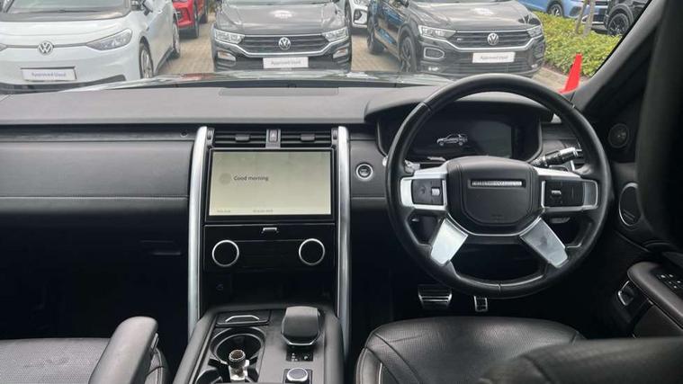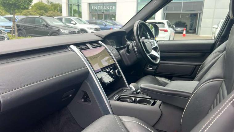 11.4" touchscreen, 3D surround camera, Adaptive cruise control, Android Auto, Apple car play, Blind spot assist, Clear exit monitor, Click and go integrated base unit, Driver condition monitor, Electric power assisted steering (EPAS), Front and rear parking aid, Interactive driver display, Lane keep assist, Power inner tailgate, Powered gesture tailgate/boot lid, Push button start, Rear collision monitor, Rear traffic monitor, Remote, Remote boot release, Service interval indicator, Speed proportional steering, Sportshift selector, Stop/start system, Traffic sign recognition with adaptive speed limiter, Trip computer, Wade Sensing, Adaptive dynamics, Dynamic stability control, Electronic air suspension, Front axle open differential, Twin speed transfer box, Digital Audio Broadcast radio-DAB, Dynamic volume control, Meridian surround sound system - 14 speaker + subwoofer, 18 channel amplifier, 700W, Pivi pro connected, USB/aux input socket, Acoustic laminated windscreen, Animated directional indicators, Auto dimming interior rear view mirror, Automatic headlight levelling, Automatic headlights, Body colour bumpers, Body colour door handles, Centre high mounted stop light, Electric windows with one touch open/close and anti-trap, Front fog lights, Headlight power wash, Heated rear window, Heated windscreen, LED desaturated signature tail lights, Matrix LED headlights with signature DRL, Metal treadplates with R-Dynamic branding, Narvik black Discovery script, P360 badge, Power fold, auto-dimming, heated door mirrors with memory and approach lights, Puddle lights, Rain sensing windscreen wipers, Rear fog lights, Rear wash/wipe, Sliding front sunroof and fixed rear panoramic roof, Trailer stability assist, Variable intermittent wiper, 12V power sockets, 12V USB charging socket in loadspace, Central hinged twin lidded storage, Ebony morzine headlining, Electric adjustable steering column, First and second row door bins, Footwell lights, Front and rear 12V with front USB, Front passenger seat isofix location point, In-facia storage, Loadspace cover, Loadspace Hook, Loadspace light, Lockable glovebox, Lower centre console storage, Luggage tie downs in loadspace, Multi function steering wheel, Overhead lighting console, Premium cabin lighting, Premium carpet mats, Rear ISOFIX, Shopping bag hook, Storage glovebox, Sunvisors with illuminated vanity mirrors, Third row storage, Twin front cupholders with cover, USB with 12V socket in centre console, Online pack with data plan - Discovery, R-Dynamic black exterior pack - Discovery, 3x3 point rear seatbelts, Anti-lock braking system (ABS), Brake pre-fill technology, Cornering brake control, Curtain airbags, Customer configurable autolock, Driver and passenger airbags, EBD - Electronic brakeforce distribution, Electronic traction control, Emergency brake assist, Emergency braking, ESP, Front side airbags, Gradient acceleration control, Hill descent control, Hill launch assist, Power operated child locks, Rear airbags, Roll stability control, Seat belt reminder, Torque vectoring brake, Tyre pressure monitoring system, Immobiliser, Intrusion sensor, Keyless entry, Locking wheel nuts, Remote central locking, All terrain tyres,